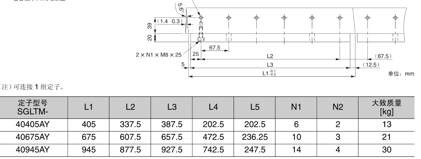 FX安川伺服电机 带基座的定子;SGLTM-40口口口AY,直线伺服电机SGLT型【带芯T型】