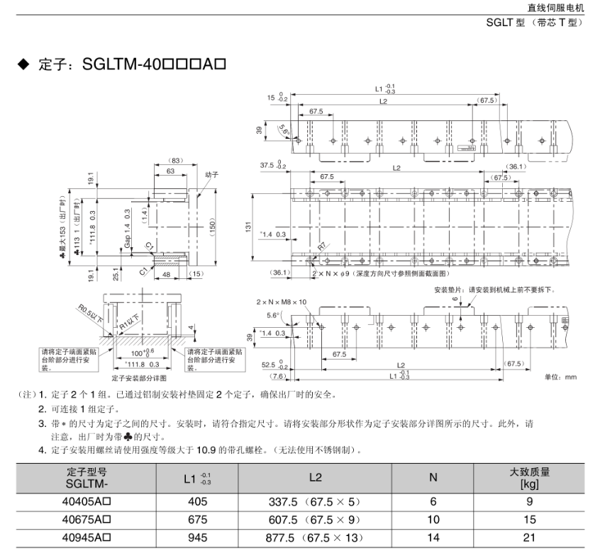 FX安川伺服电机 定子;SGLTM-40口口口A口,直线伺服电机SGLT型【带芯T型】