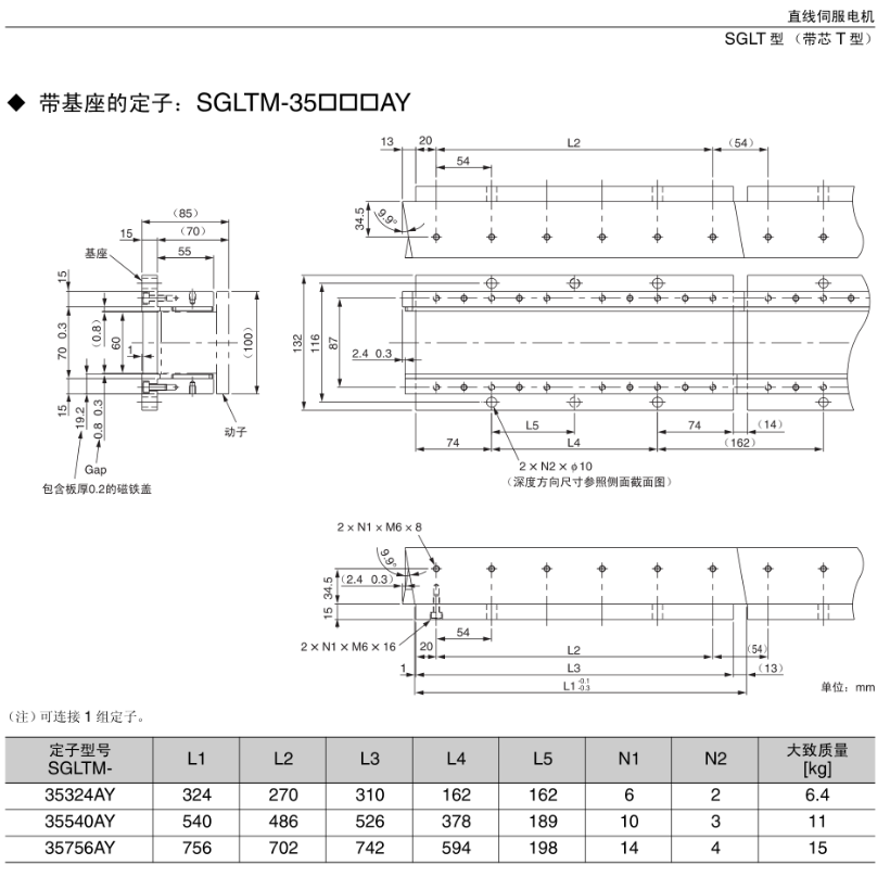FX安川伺服电机 带基座的定子;SGLTM-35口口口AY,直线伺服电机SGLT型【带芯T型】