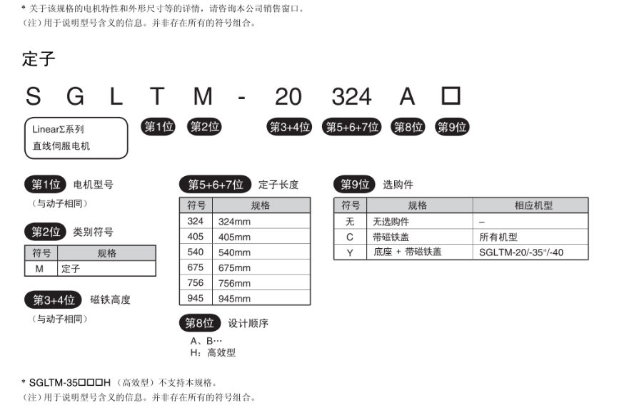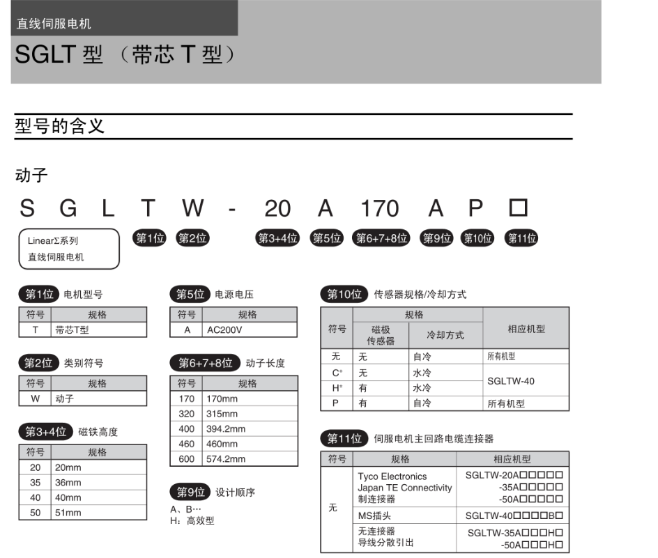 FX安川伺服电机 型号的含义,动子,定子,直线伺服电机SGLT型【带芯T型】