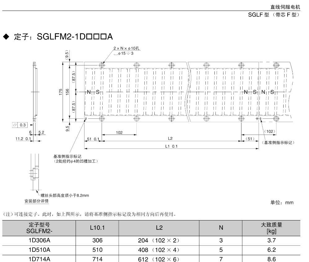 FX安川伺服电机 定子;SGLFM2-1D口口口A,直线伺服电机SGLF型【带芯F型】