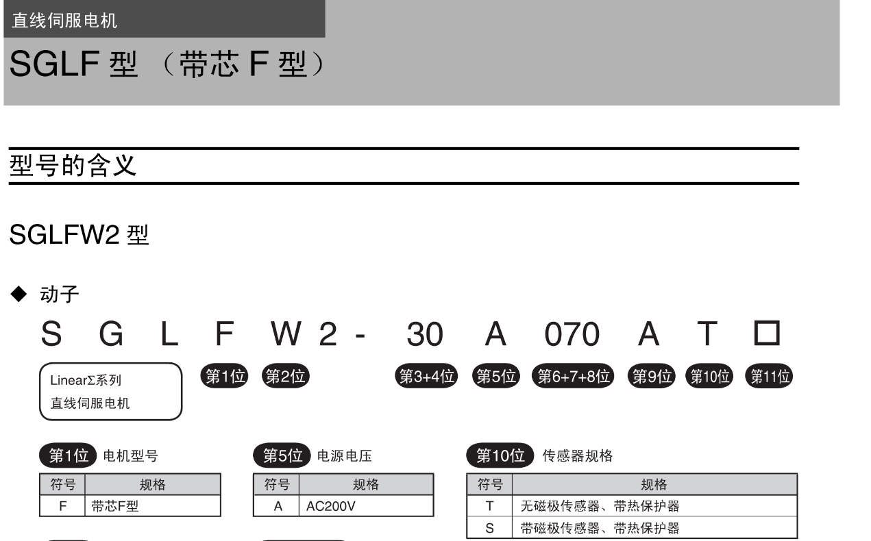 FX安川伺服电机 型号的含义,SGLFW2型,动子,定子,直线伺服电机SGLF型【带芯F型】