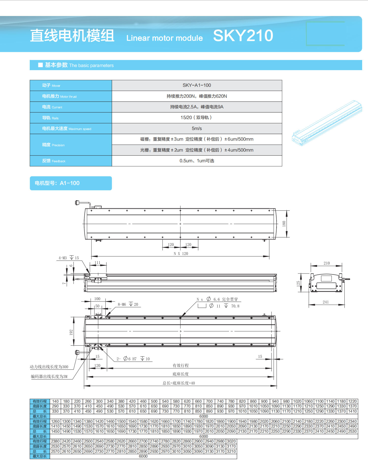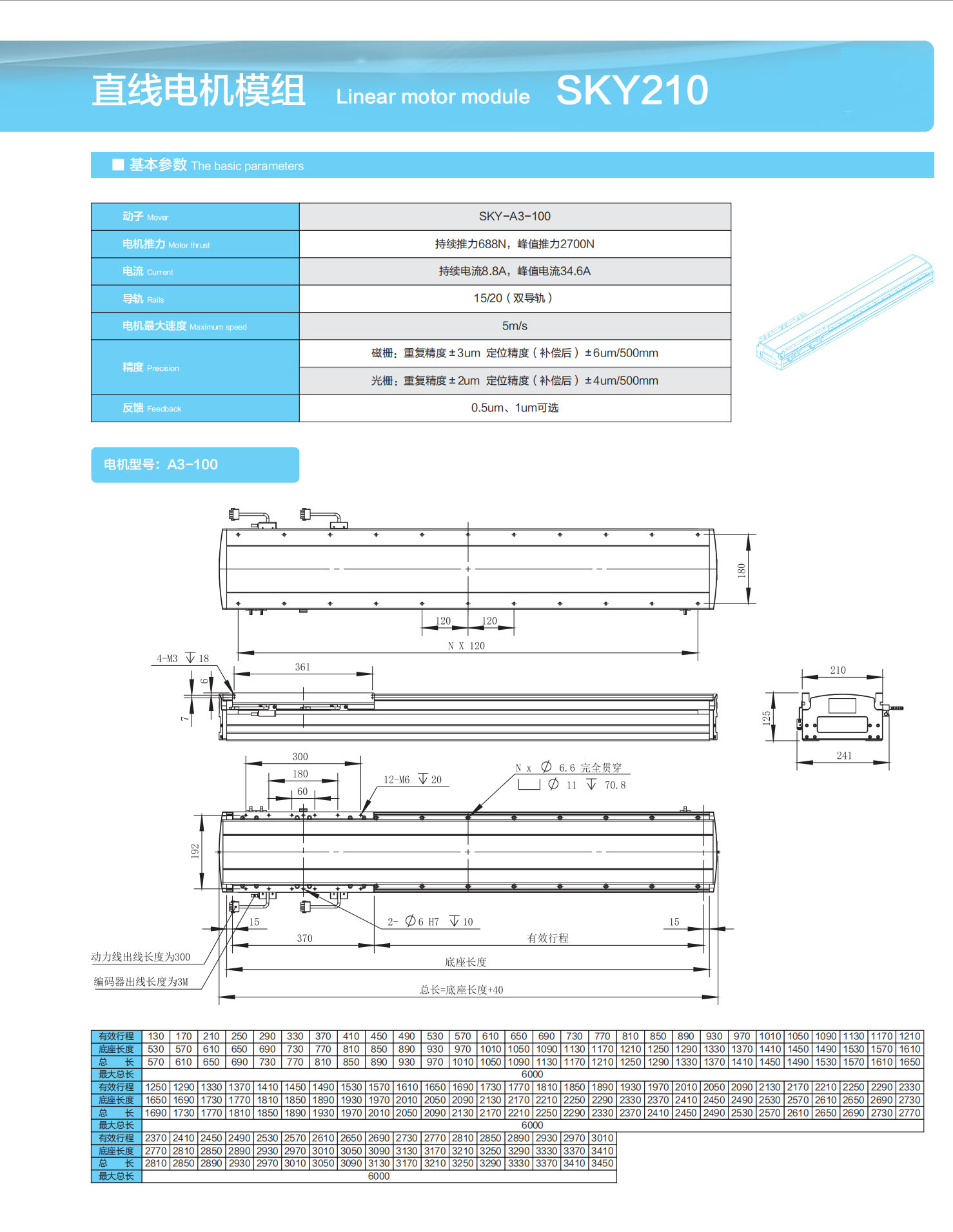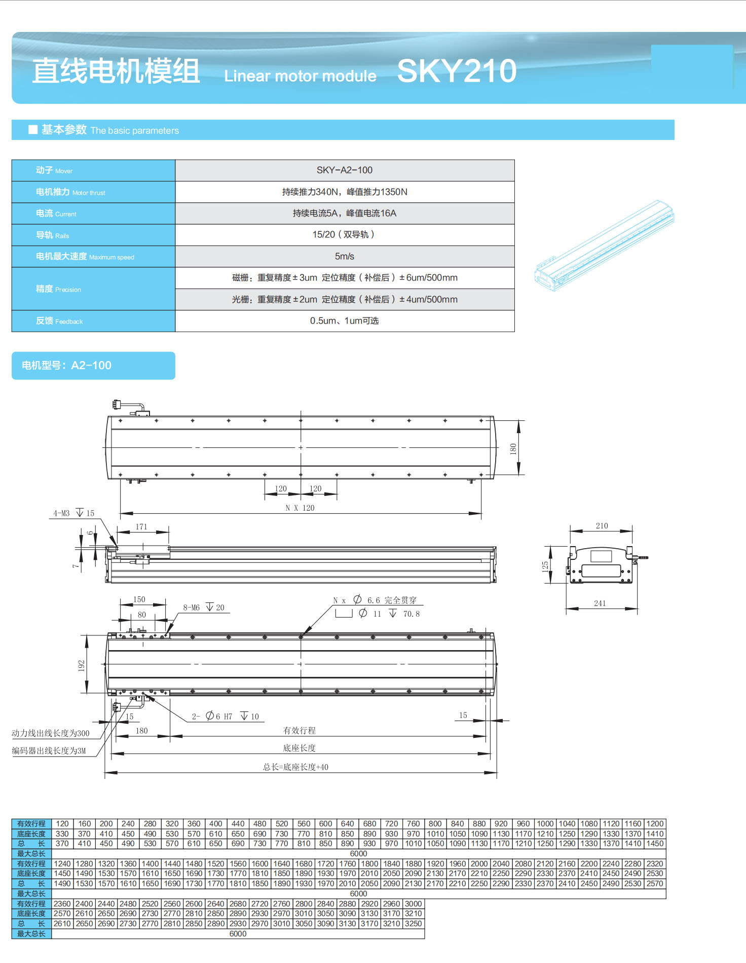 直线电机模组 Linear motor module SKY210