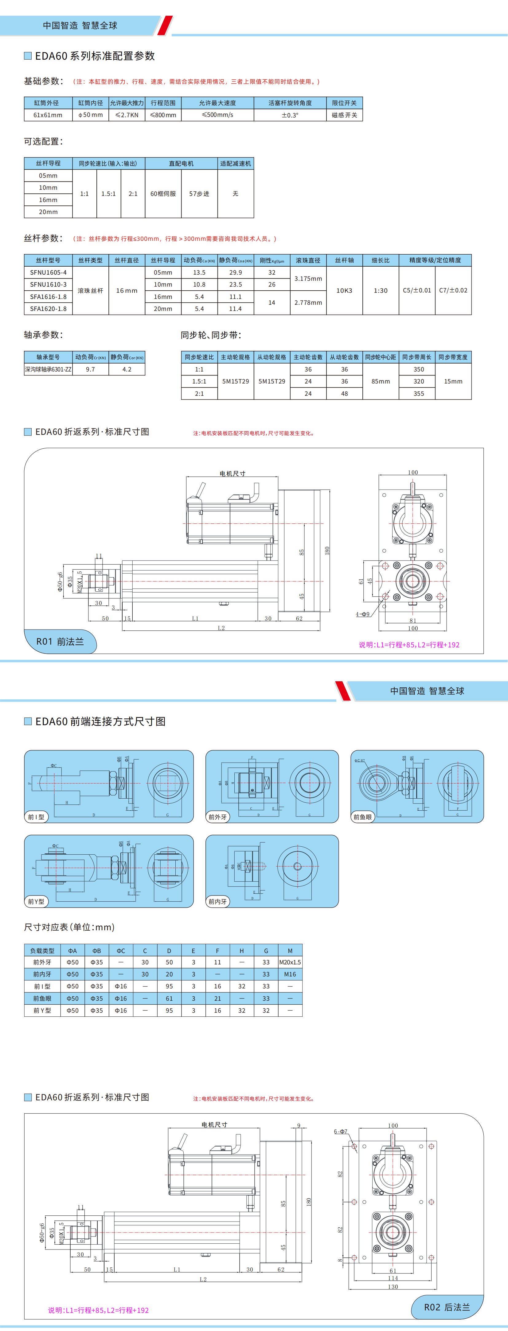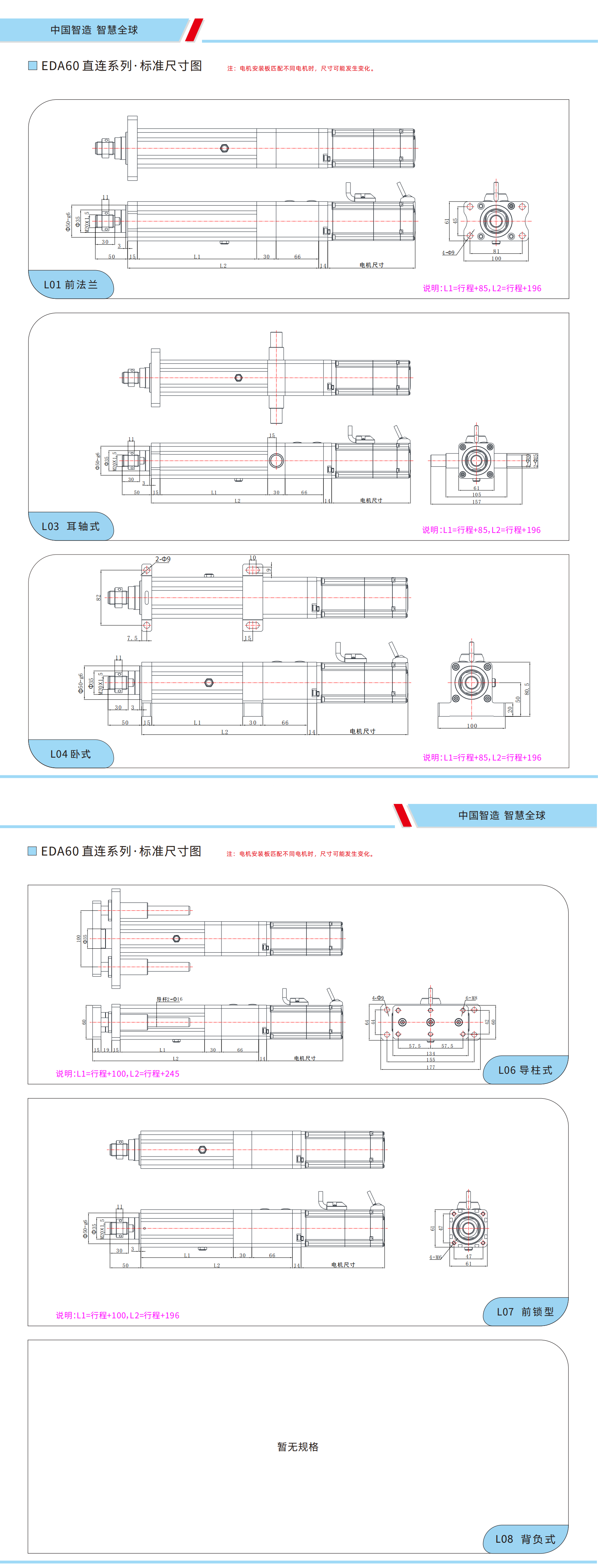 EDA60系列折返式电动缸 直线式电动缸尺寸图