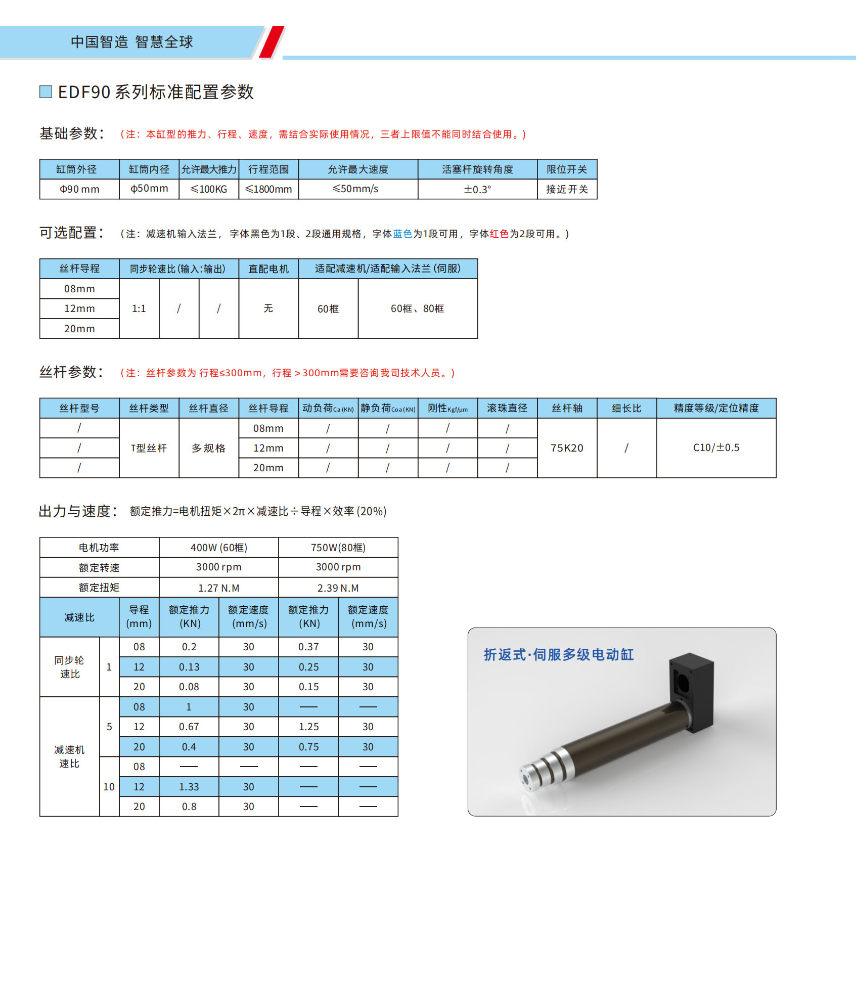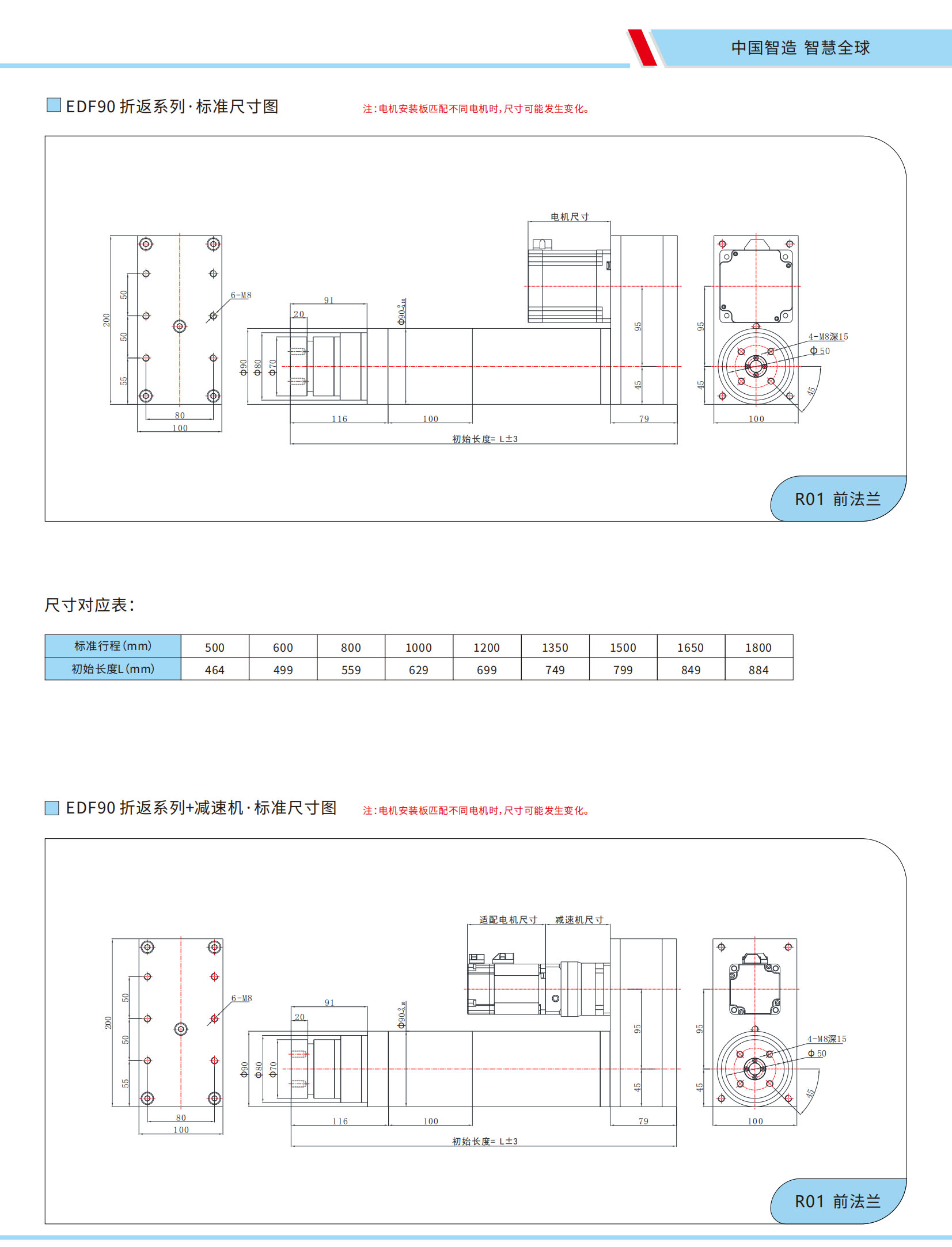 EDF90系列折返式电动缸 直线式电动缸尺寸图