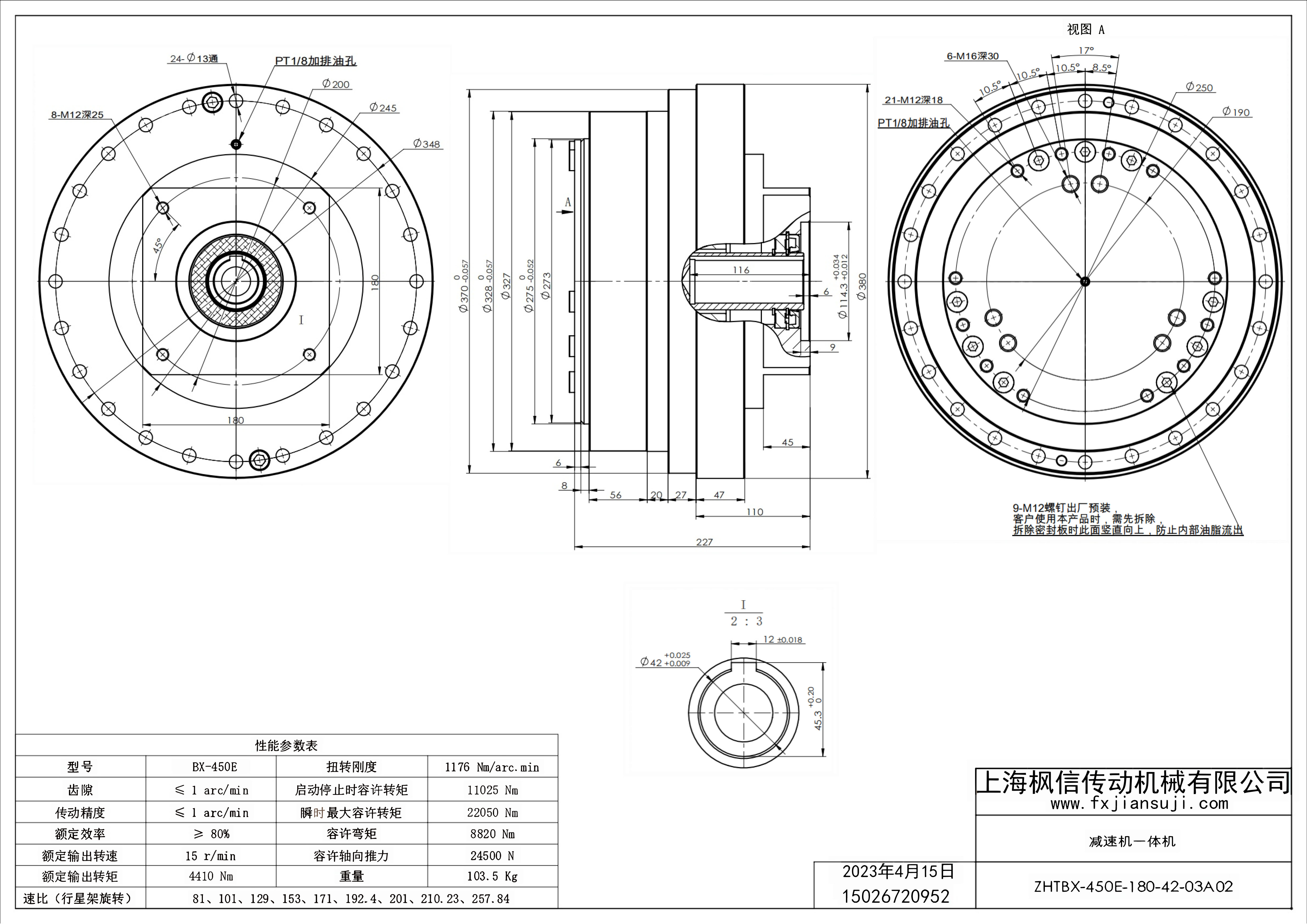 机器人减速机一体机ZHTBX-450E-180-42-03A02_减速机一体机