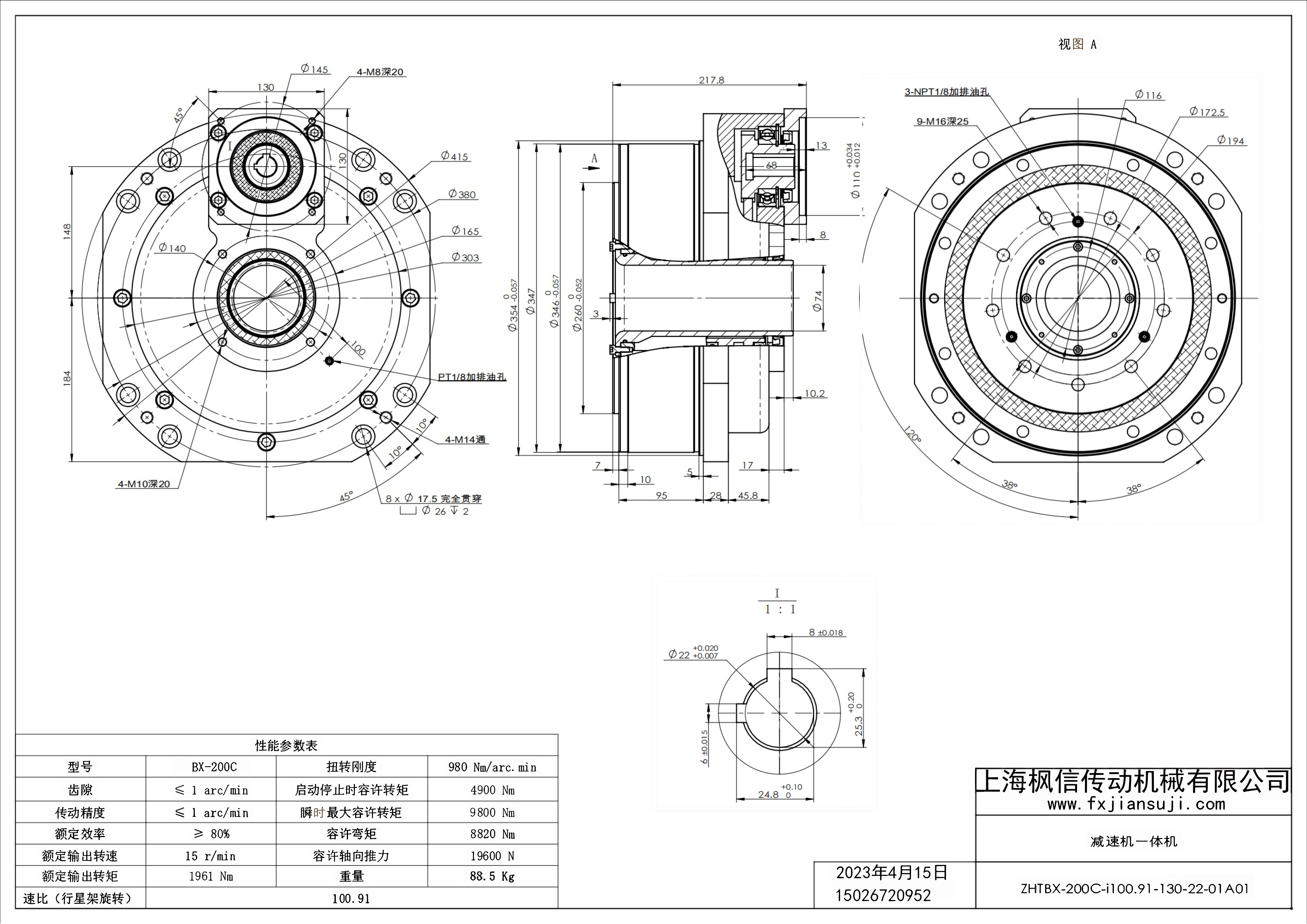 机器人减速机一体机ZHTBX-200C-i100.91-130-22-01A01_减速机一体机