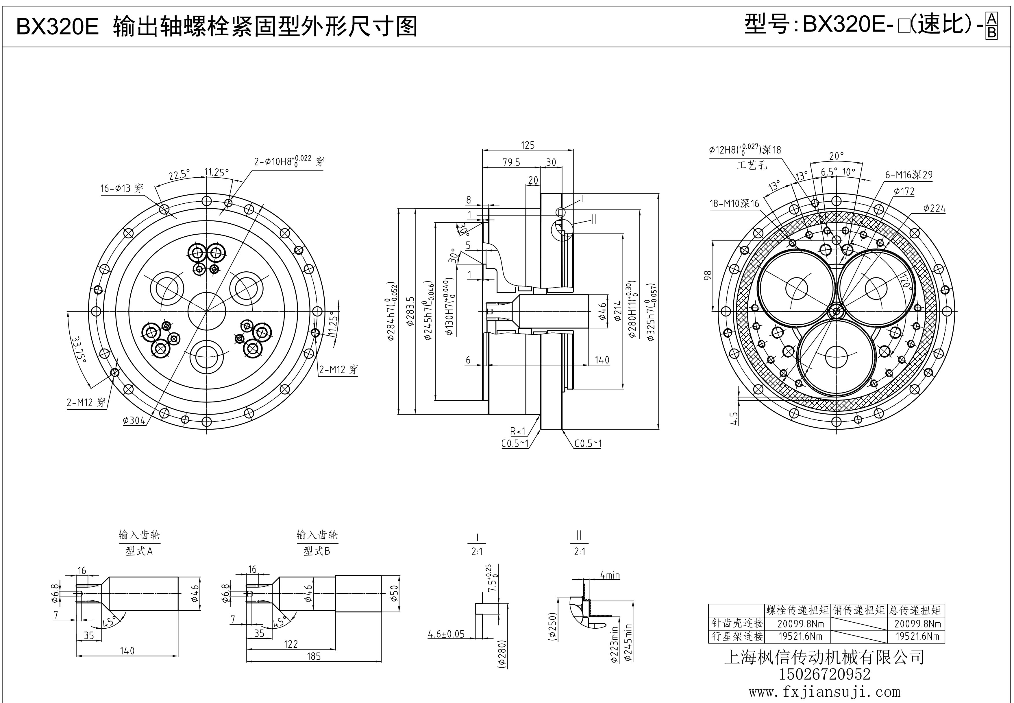 机器人减速机BX320E输出轴螺栓紧固型外形尺寸图