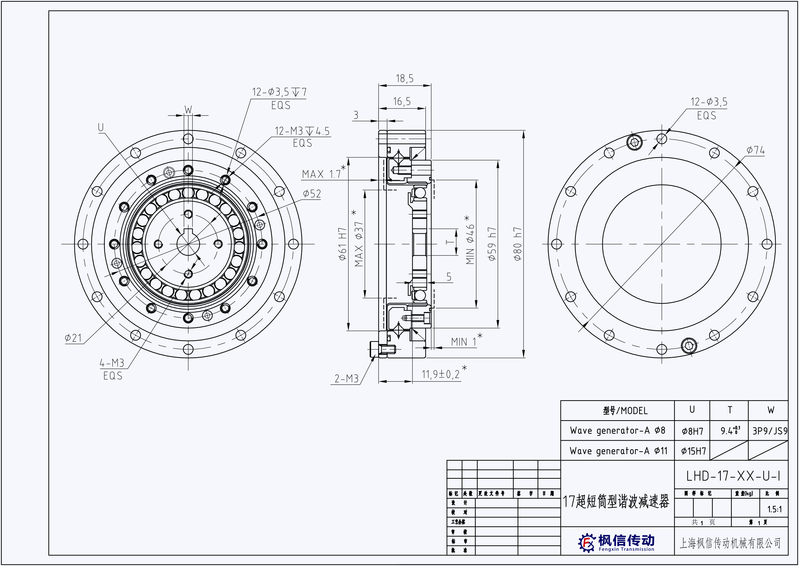 伺服电机谐波减速机LHD-14-XX-U-I LHD-17-XX-U-I LHD-20-XX-U-I