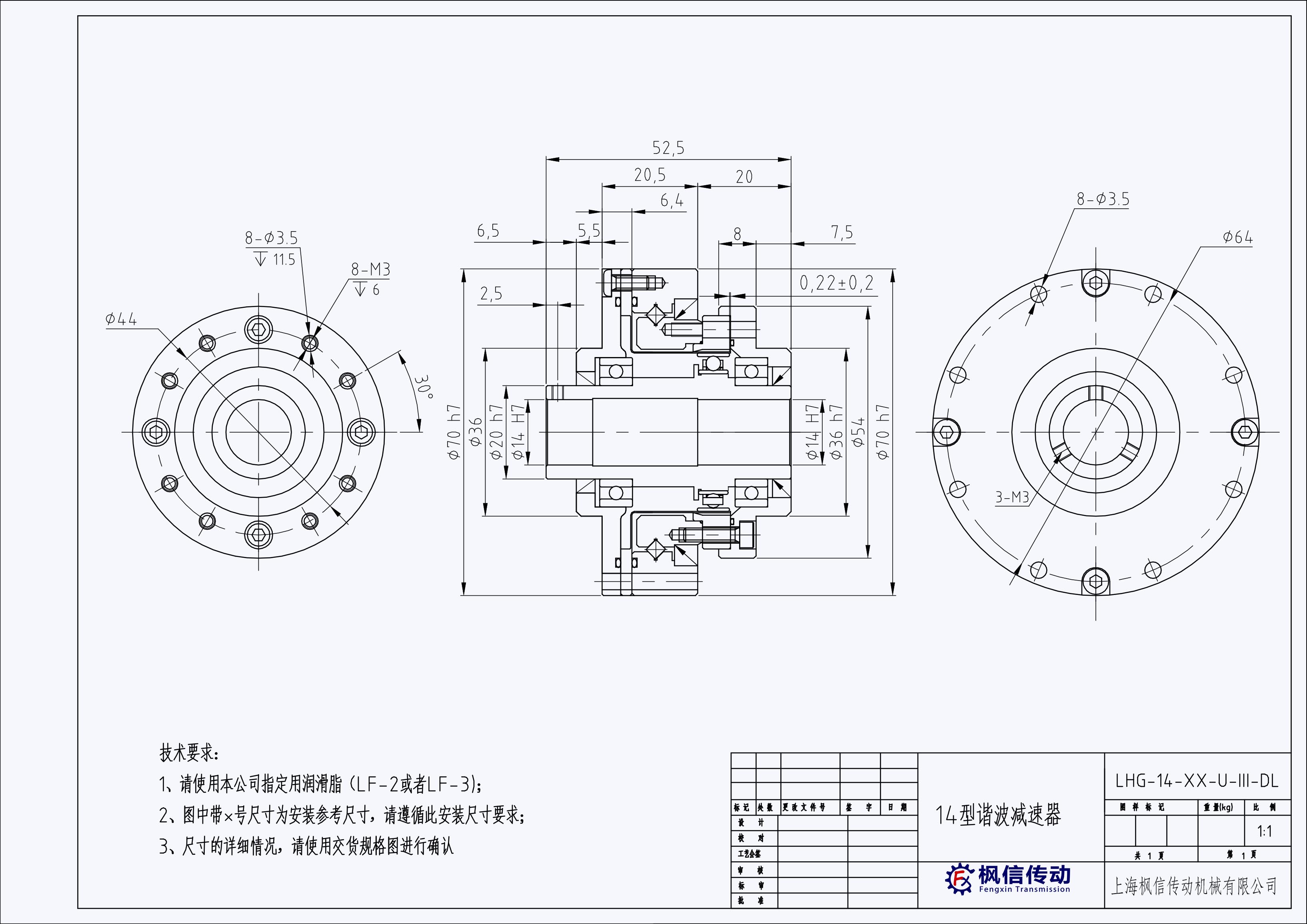 伺服电机谐波减速机LHG-14-XX-U-III-DL LHG-17-XX-U-III-DL LHG-20-XX-U-III-DL
