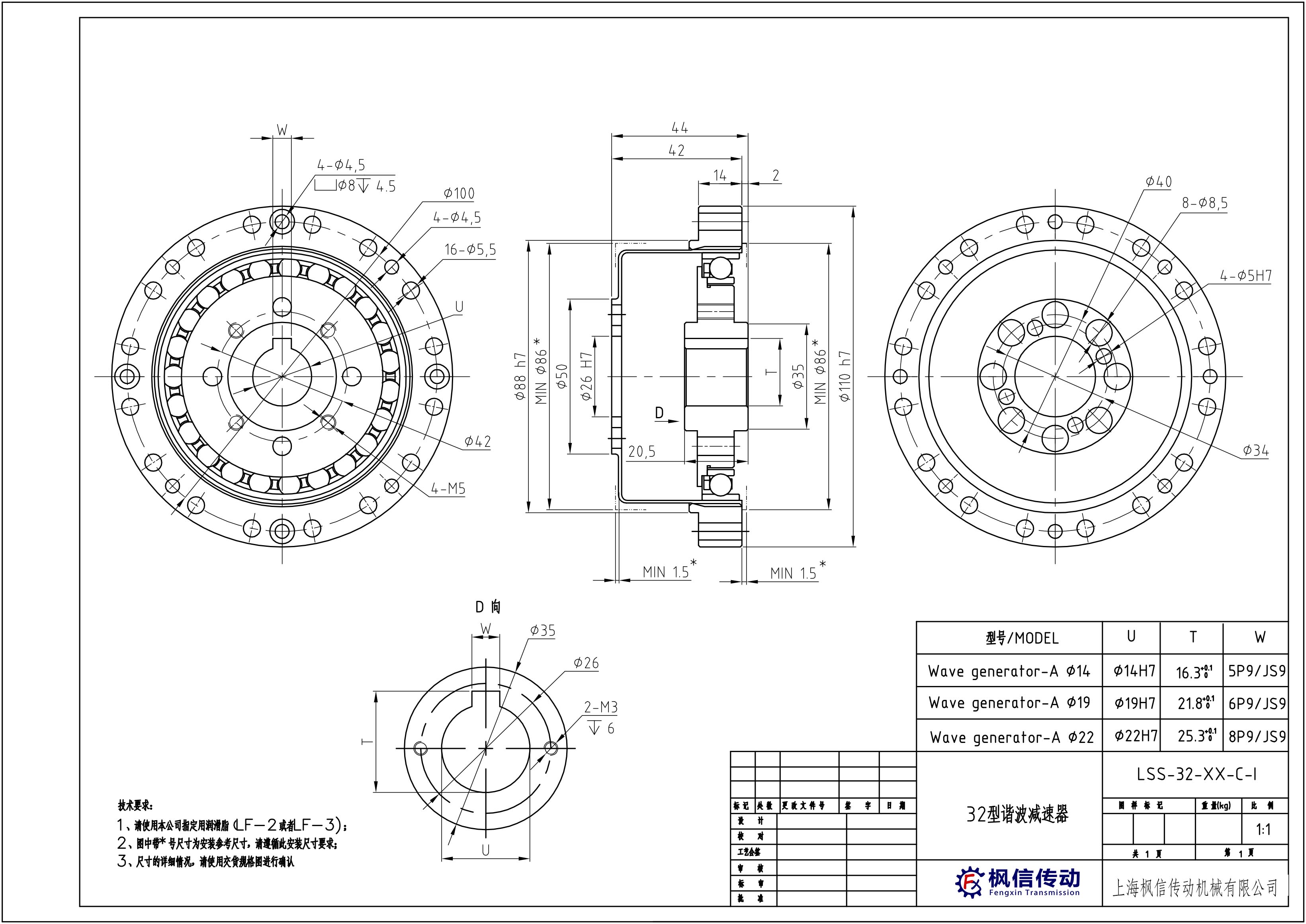 伺服电机谐波减速机LSS-14-XX-C-I LSS-17-XX-C-I LSS-20-XX-C-I LSS-25-XX-C-I LSS-32-XX-C-I