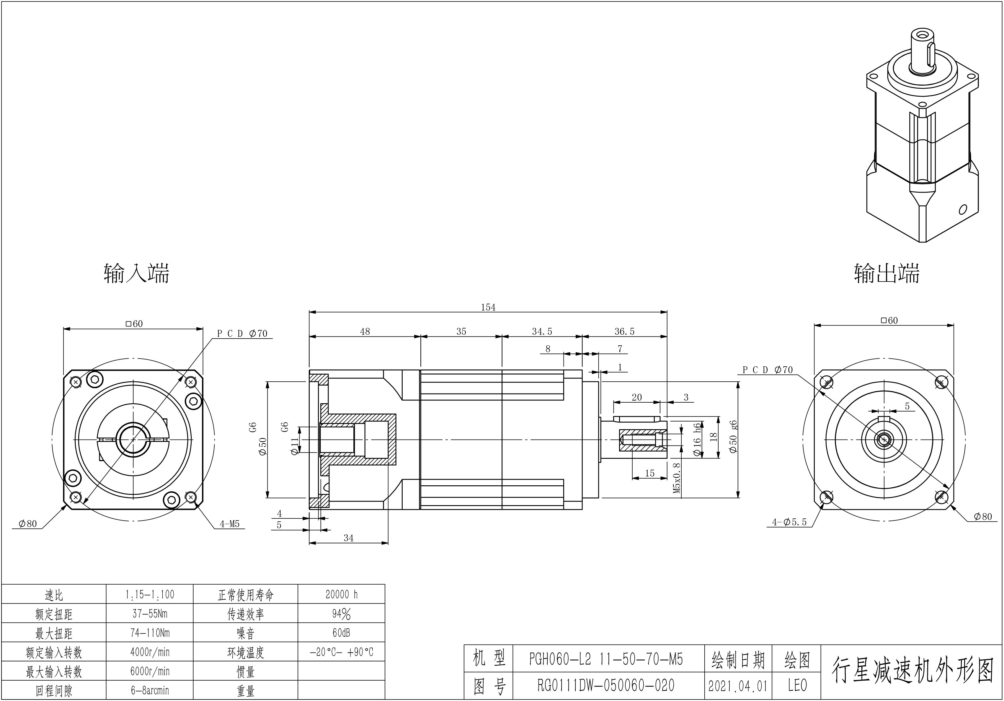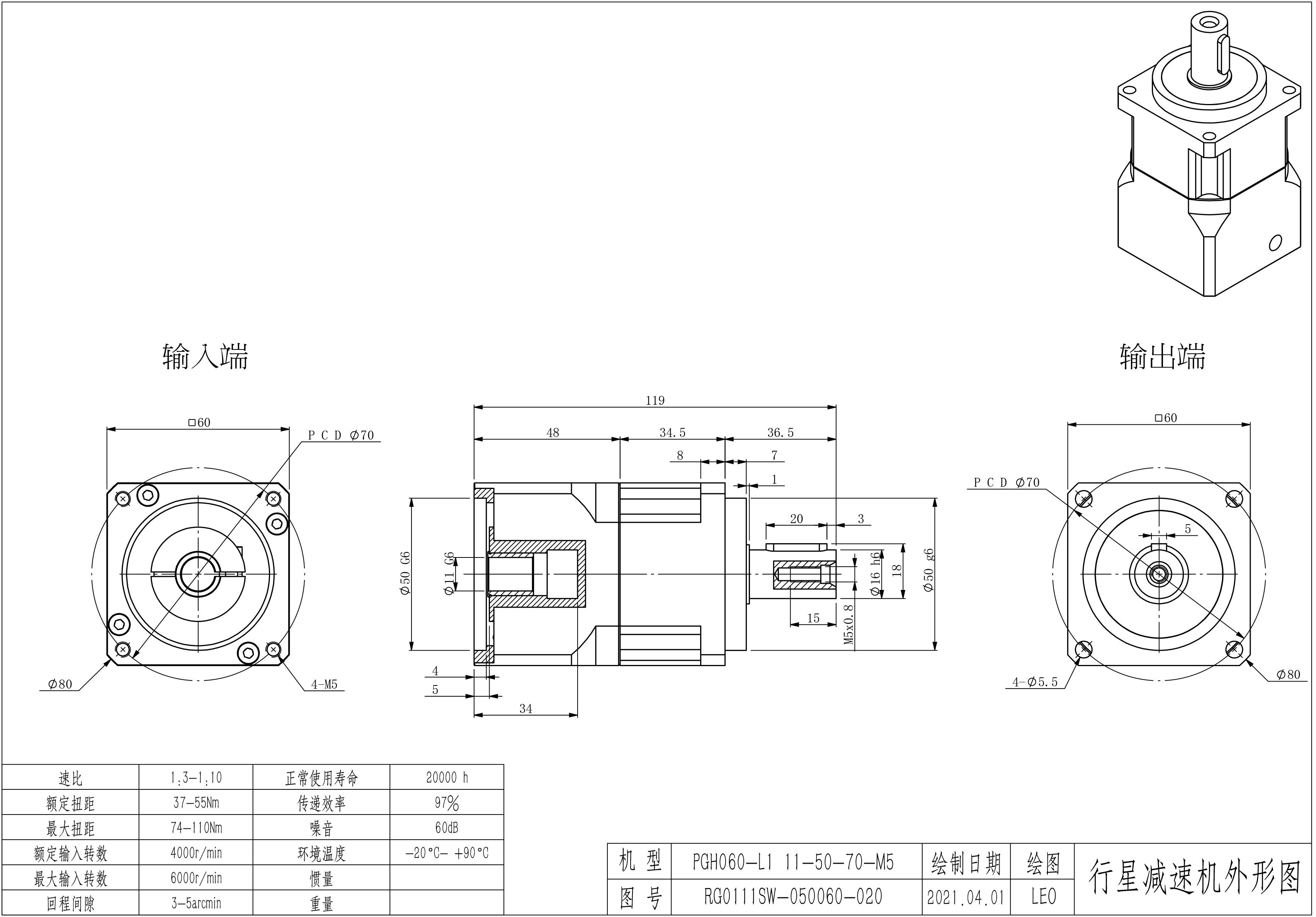 KB系列伺服行星减速机PGH060-L1 11-50-70-M5 PGH060-L2 11-50-70-M5