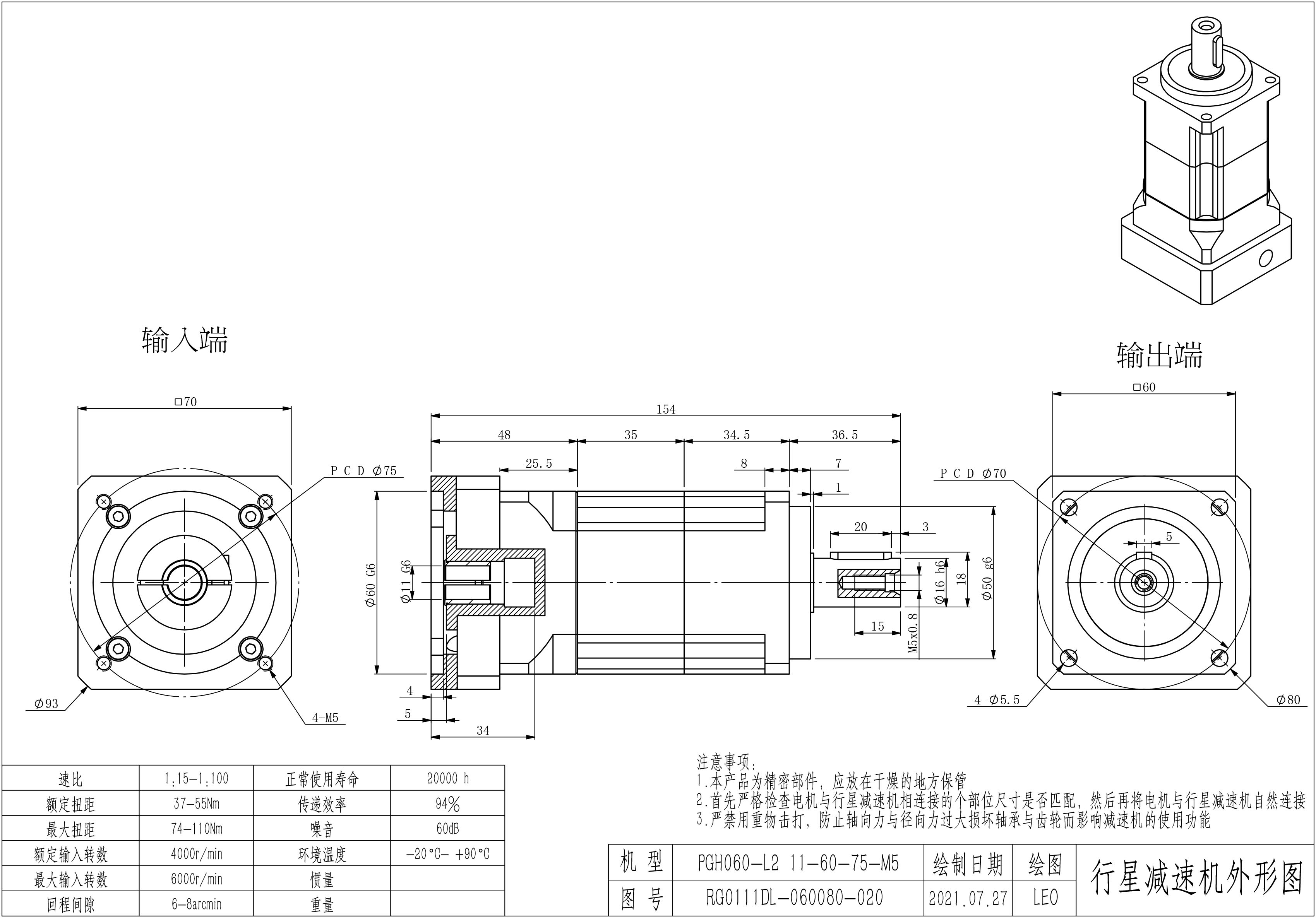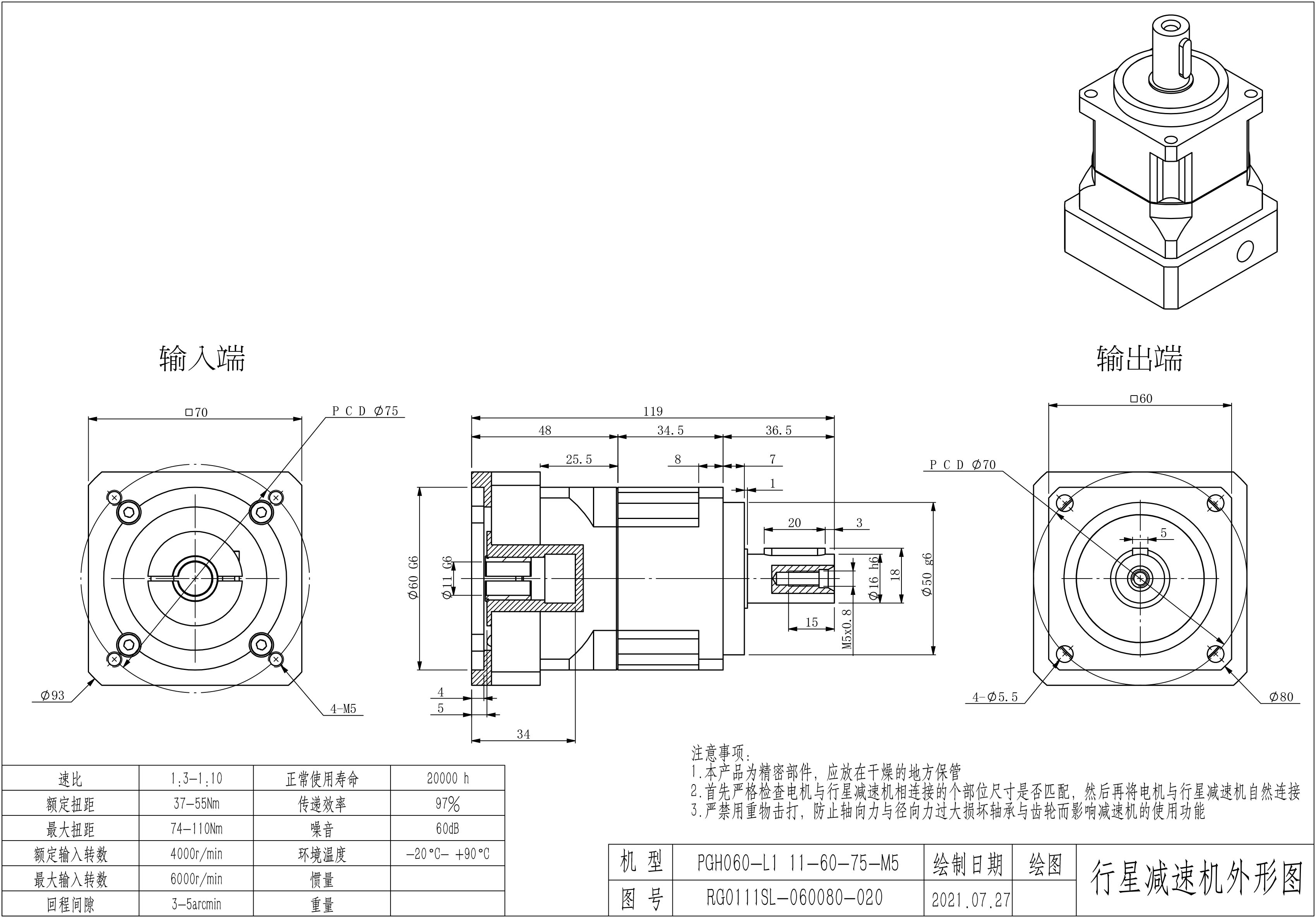 KB系列伺服行星减速机PGH060-L1 11-60-75-M5 PGH060-L2 11-60-75-M5