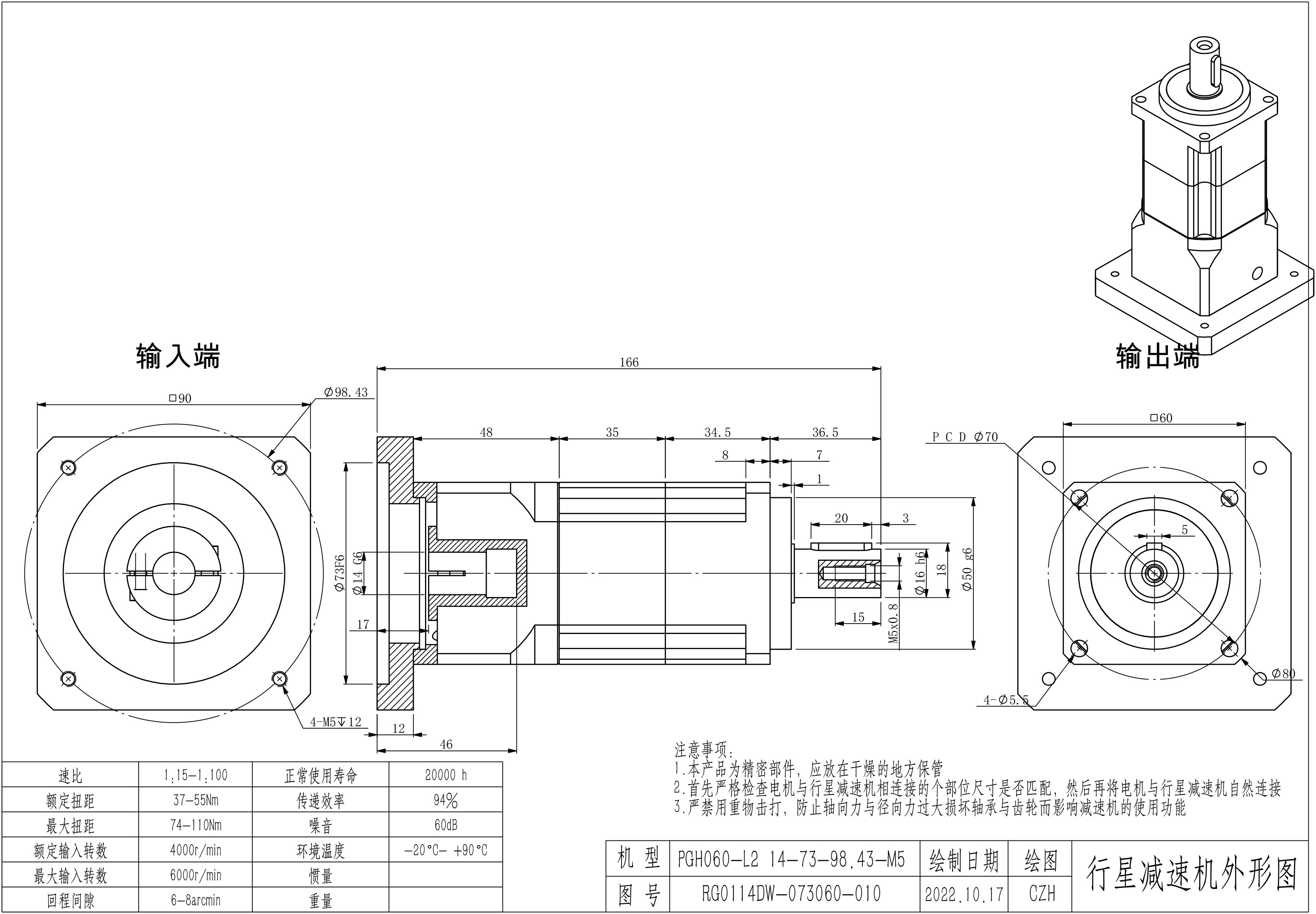 KB系列伺服行星减速机PGH060-L1 14-73-98.43-M5 PGH060-L2 14-73-98.43-M5