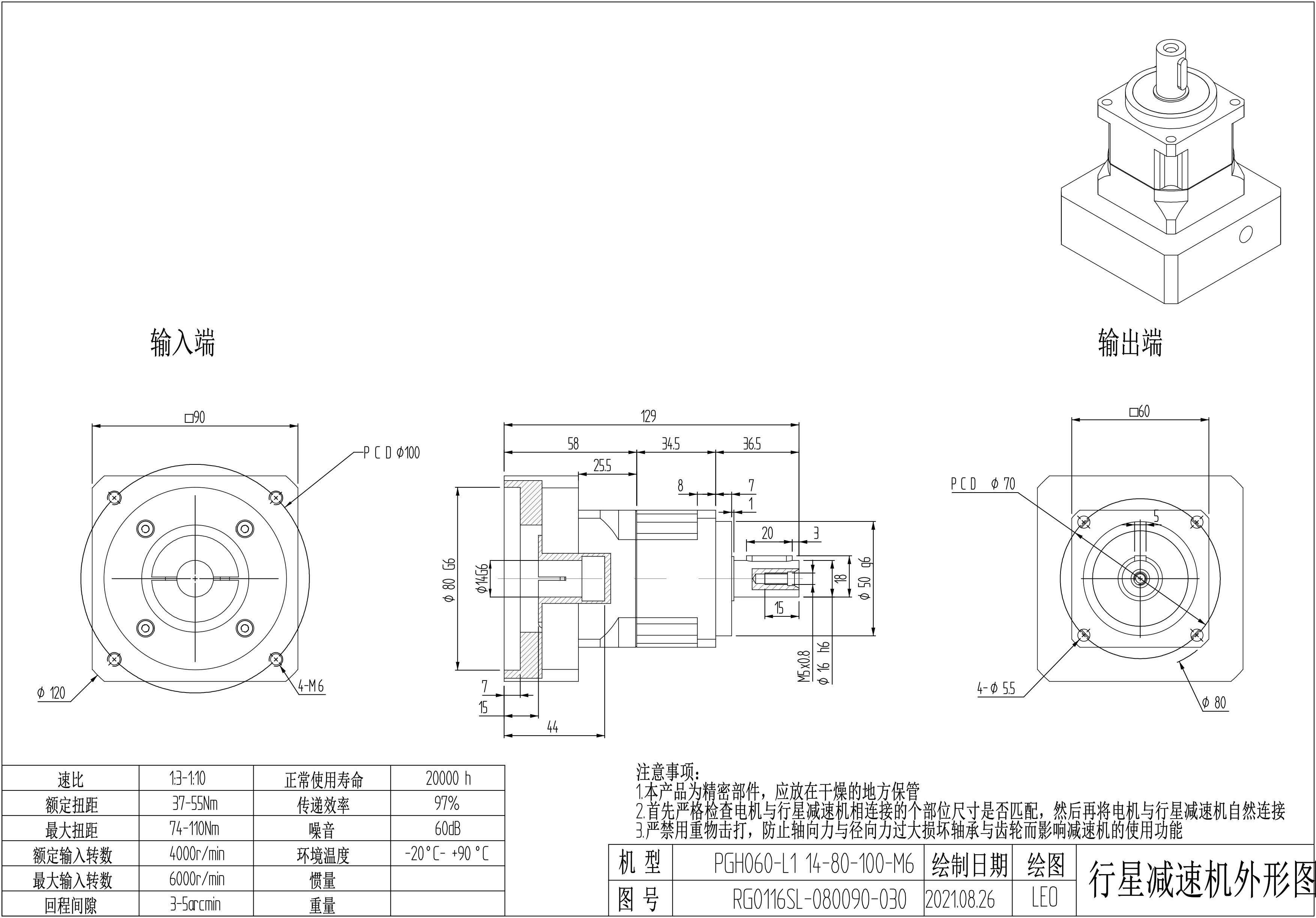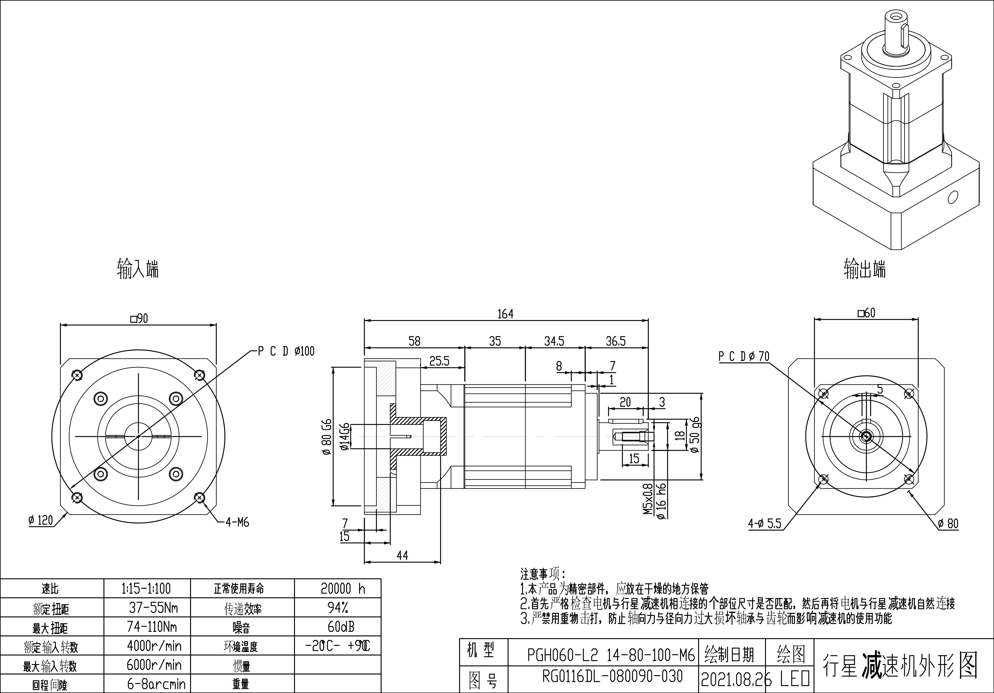 KB系列伺服行星减速机PGH060-L1 14-80-100-M6 PGH060-L2 14-80-100-M6