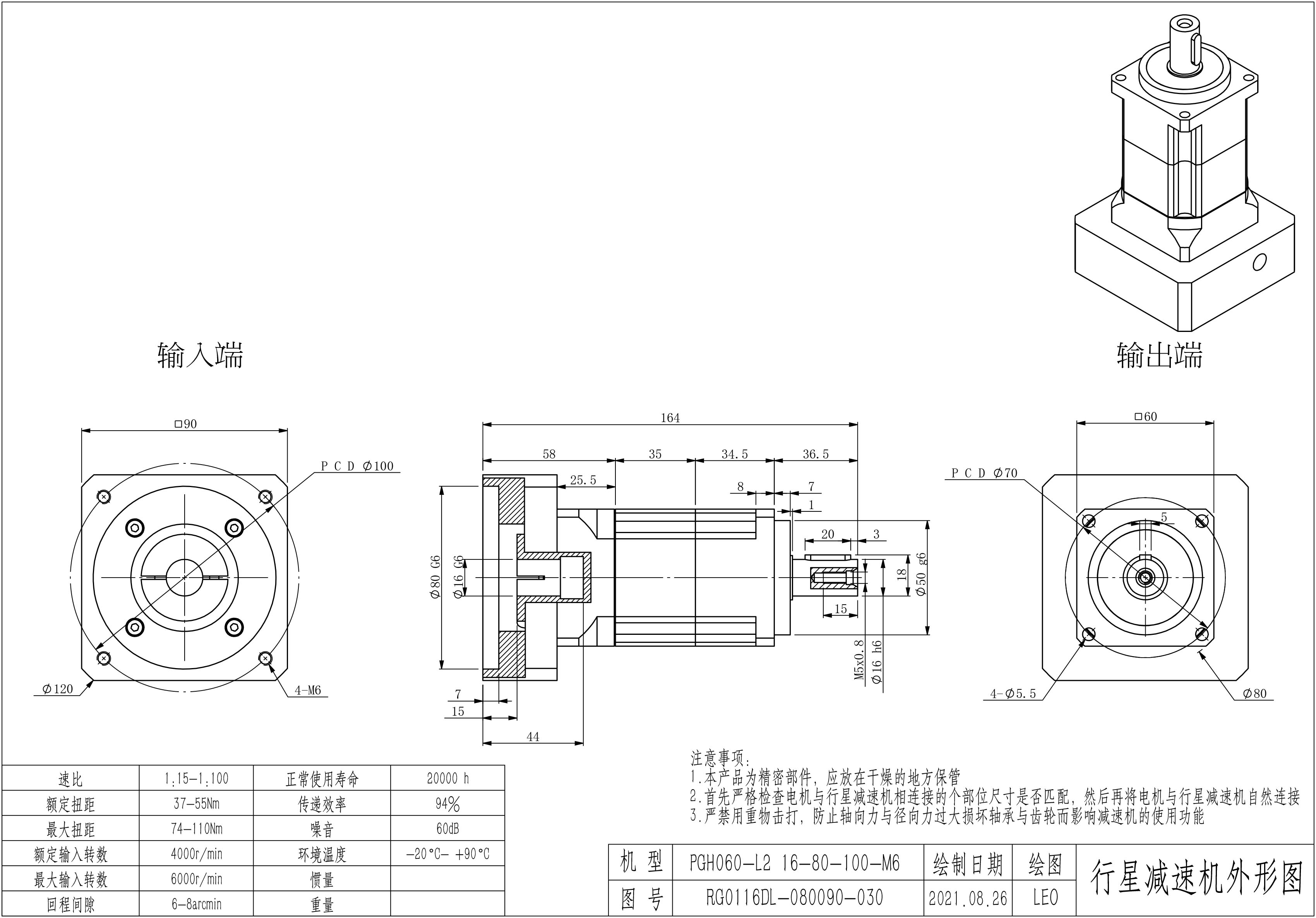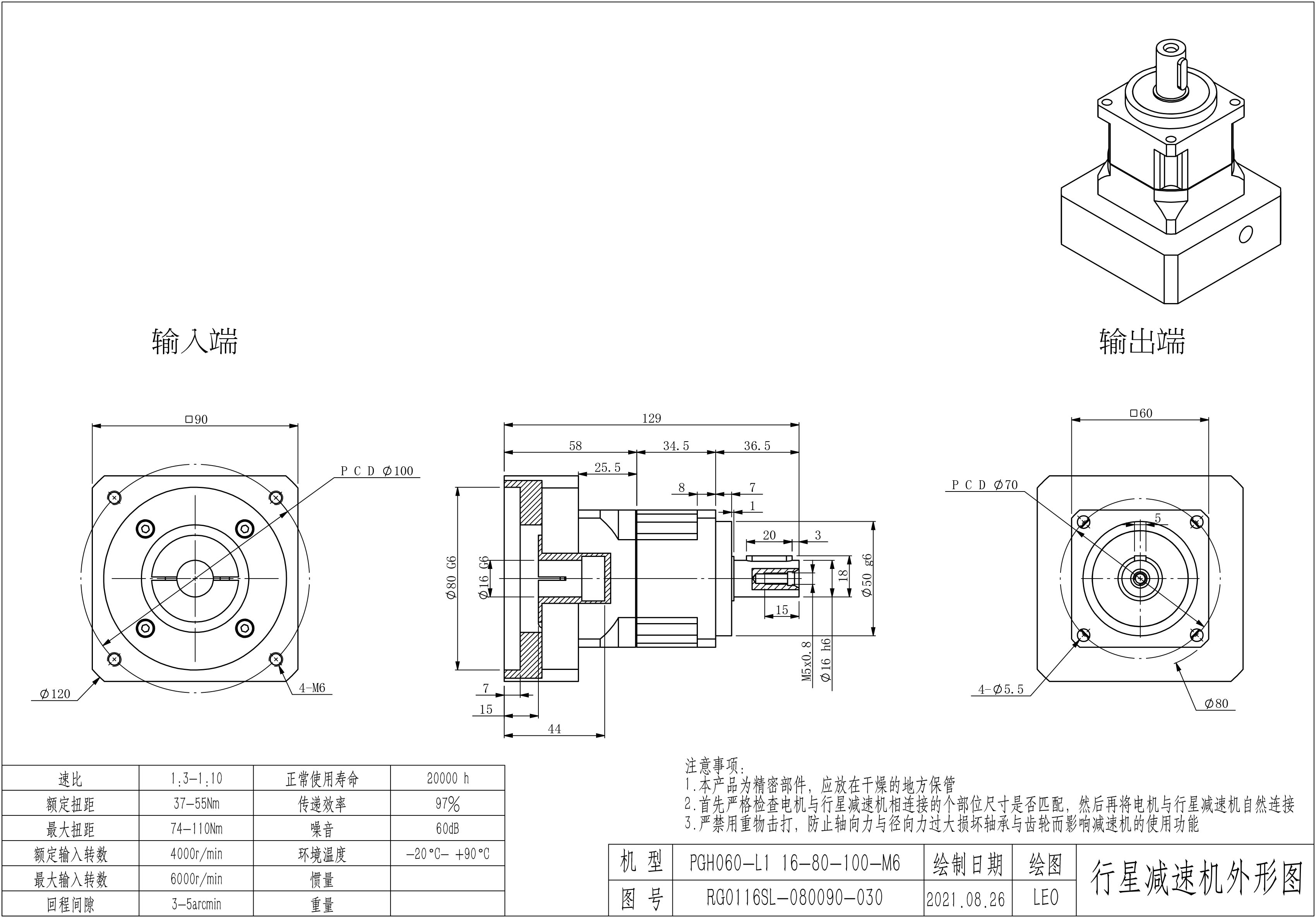 KB系列伺服行星减速机PGH060-L1 16-80-100-M6 PGH060-L2 16-80-100-M6