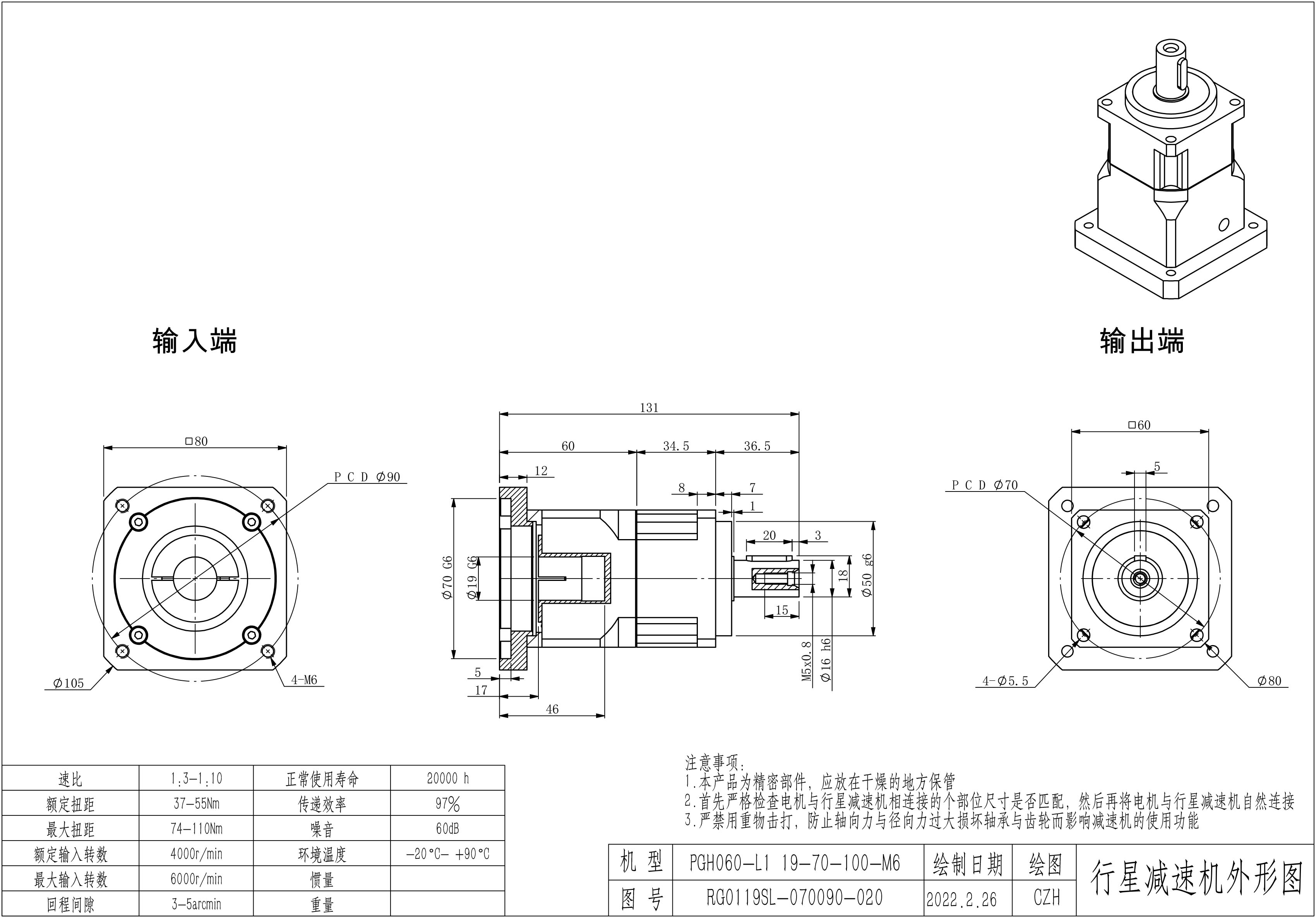 KB系列伺服行星减速机PGH060-L1 19-70-90-M6 PGH060-L2 19-70-90-M6