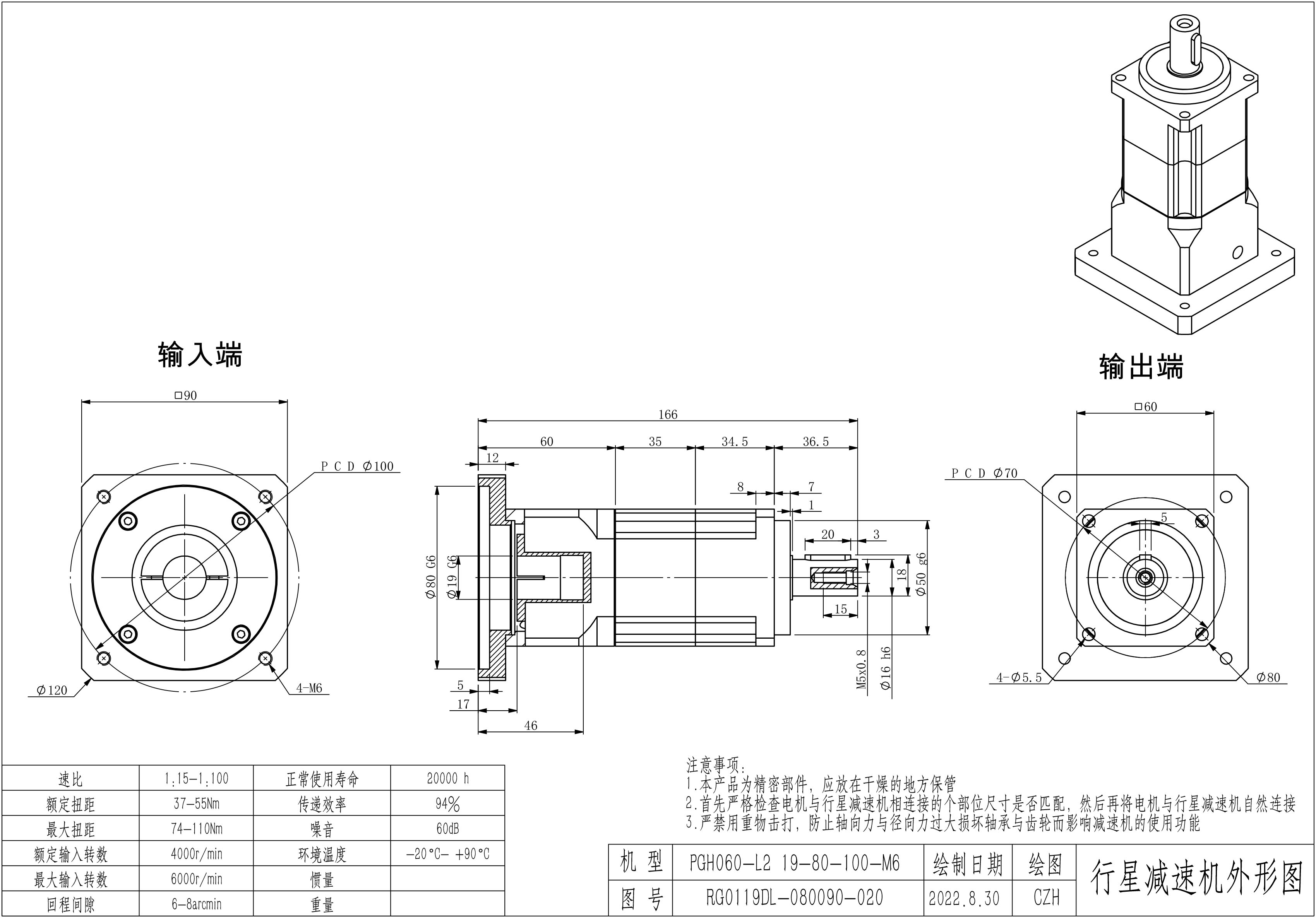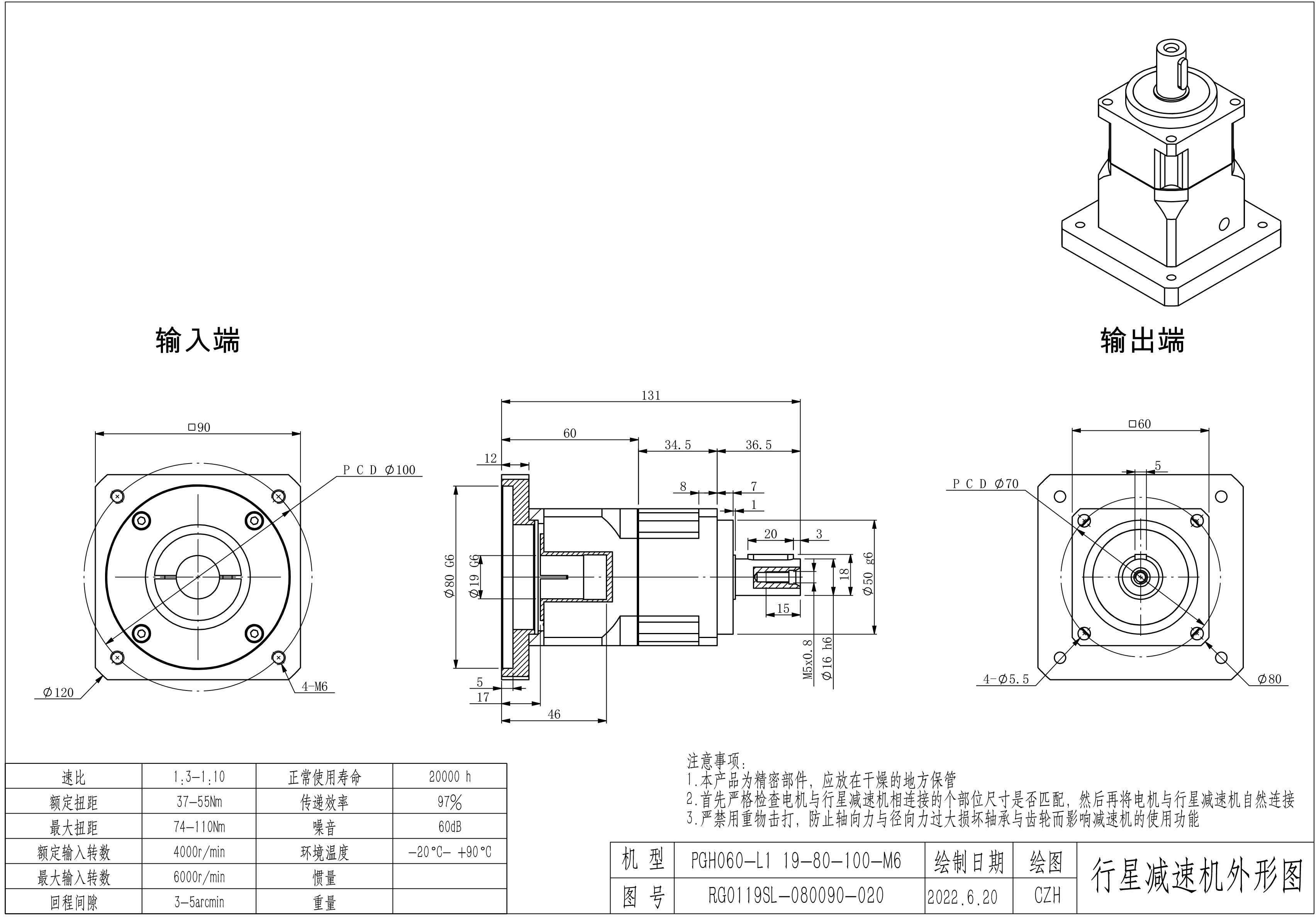 KB系列伺服行星减速机PGH060-L1 19-80-100-M6 PGH060-L2 19-80-100-M6