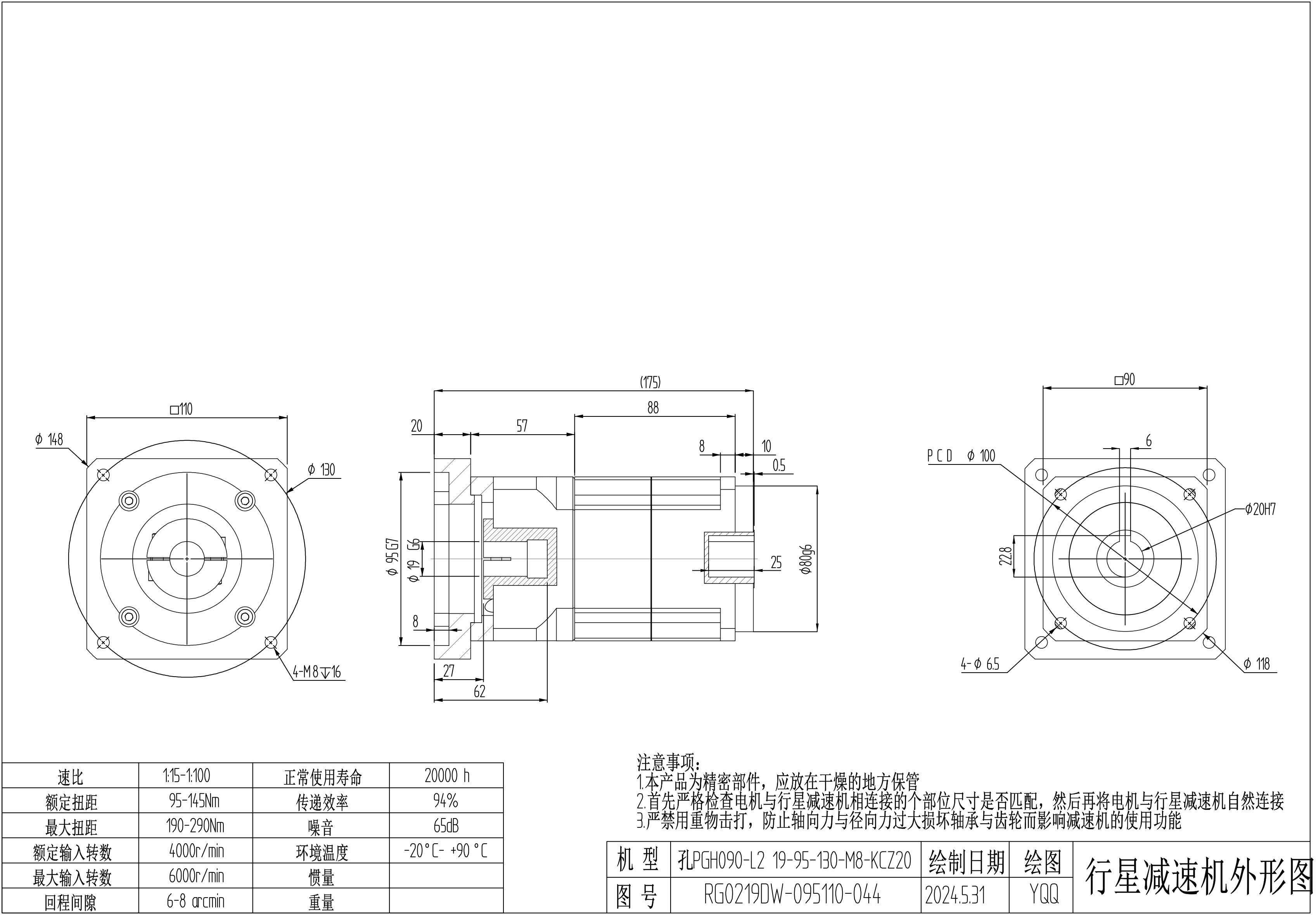 KB系列伺服行星减速机 PGH090-L1 19-95-130-M8 PGH090-L2 19-95-130-M8 孔PGH090-L2 19-95-130-M8-KCZ20(标准)