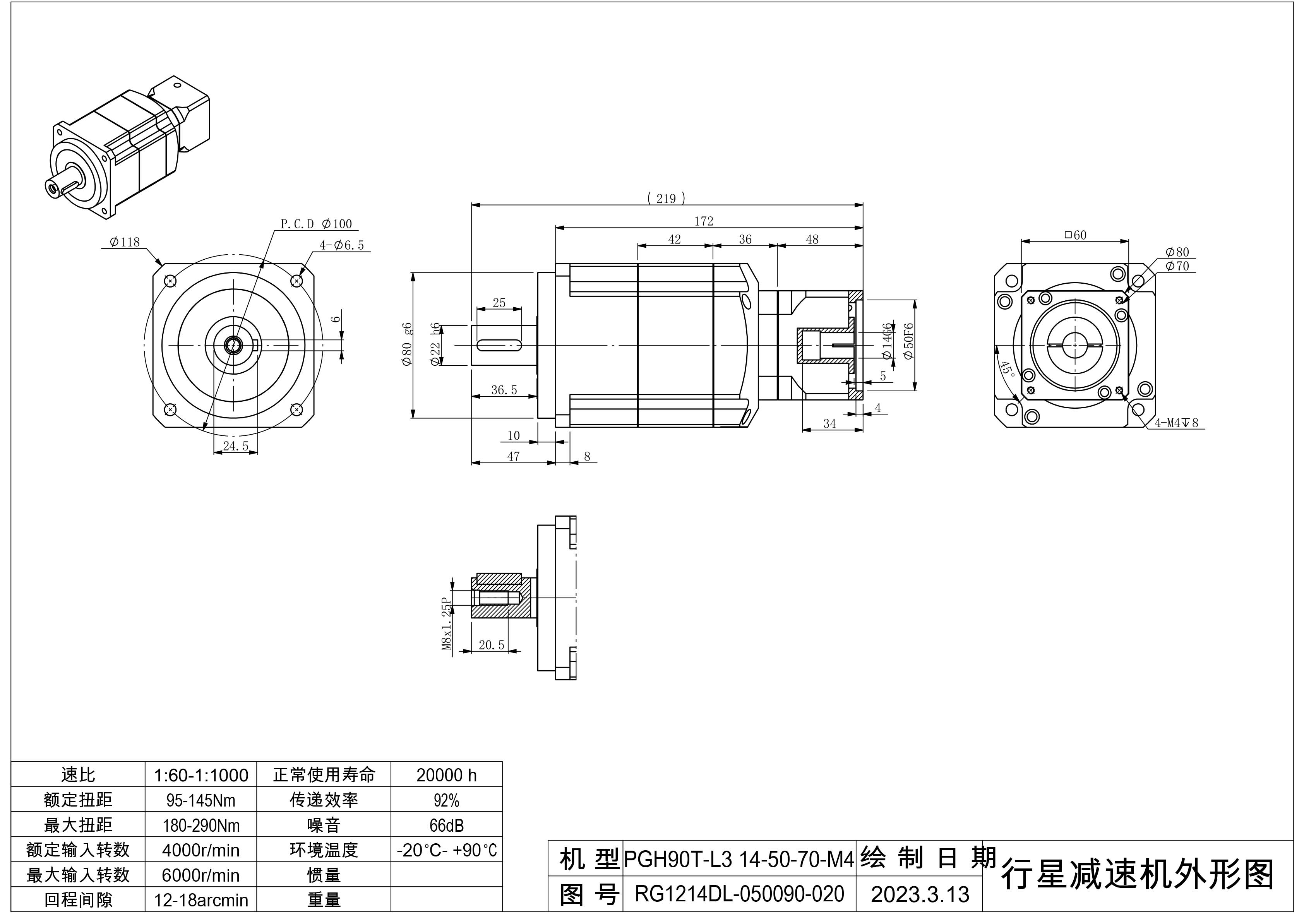 KB系列伺服行星减速机PGH090T-L2 14-50-70-M4 PGH090T-L3 14-50-70-M4