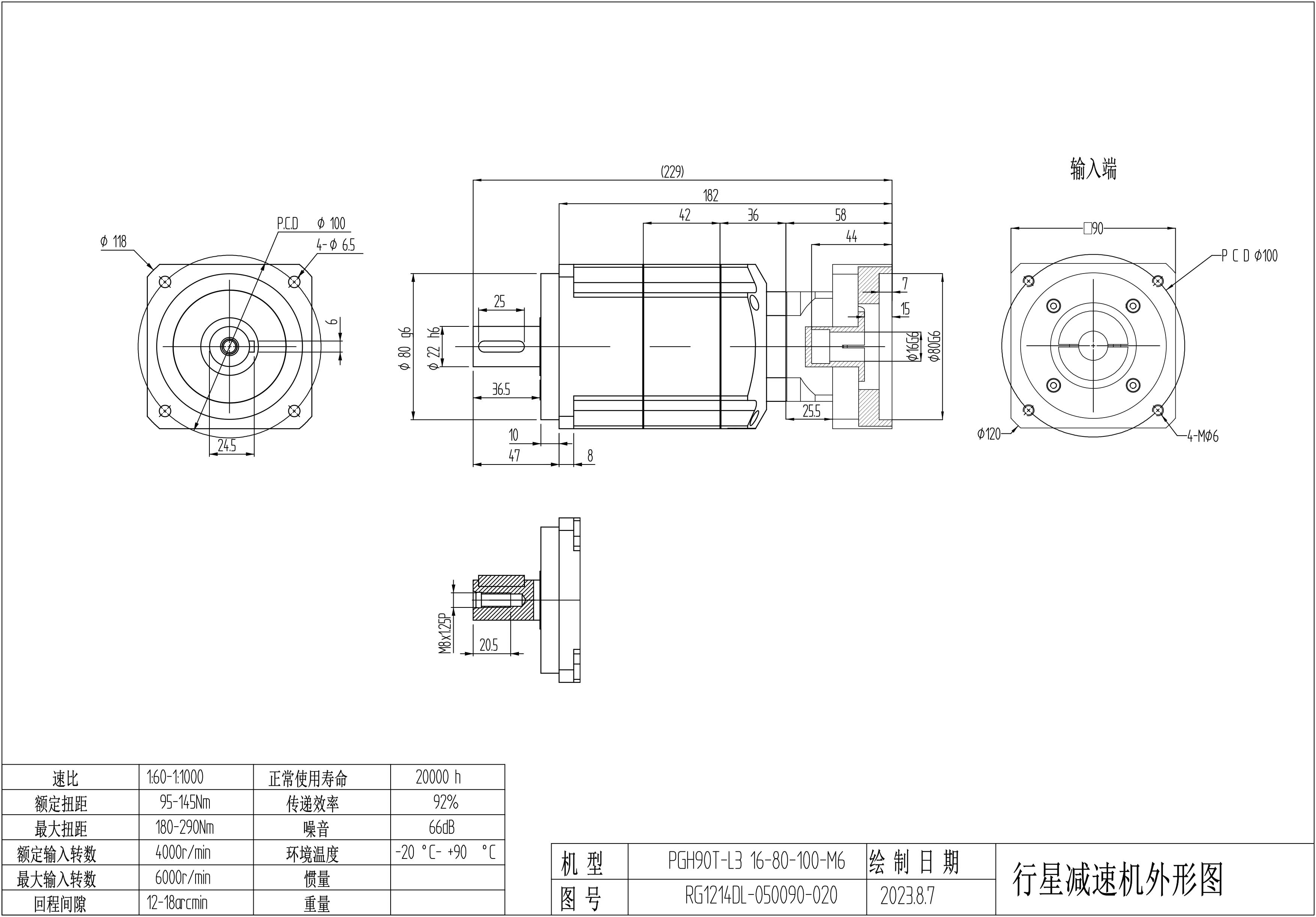 KB系列伺服行星减速机PGH090T-L3 16-80-100-M6 PGH090T-L3 16-80-100-M6-5B