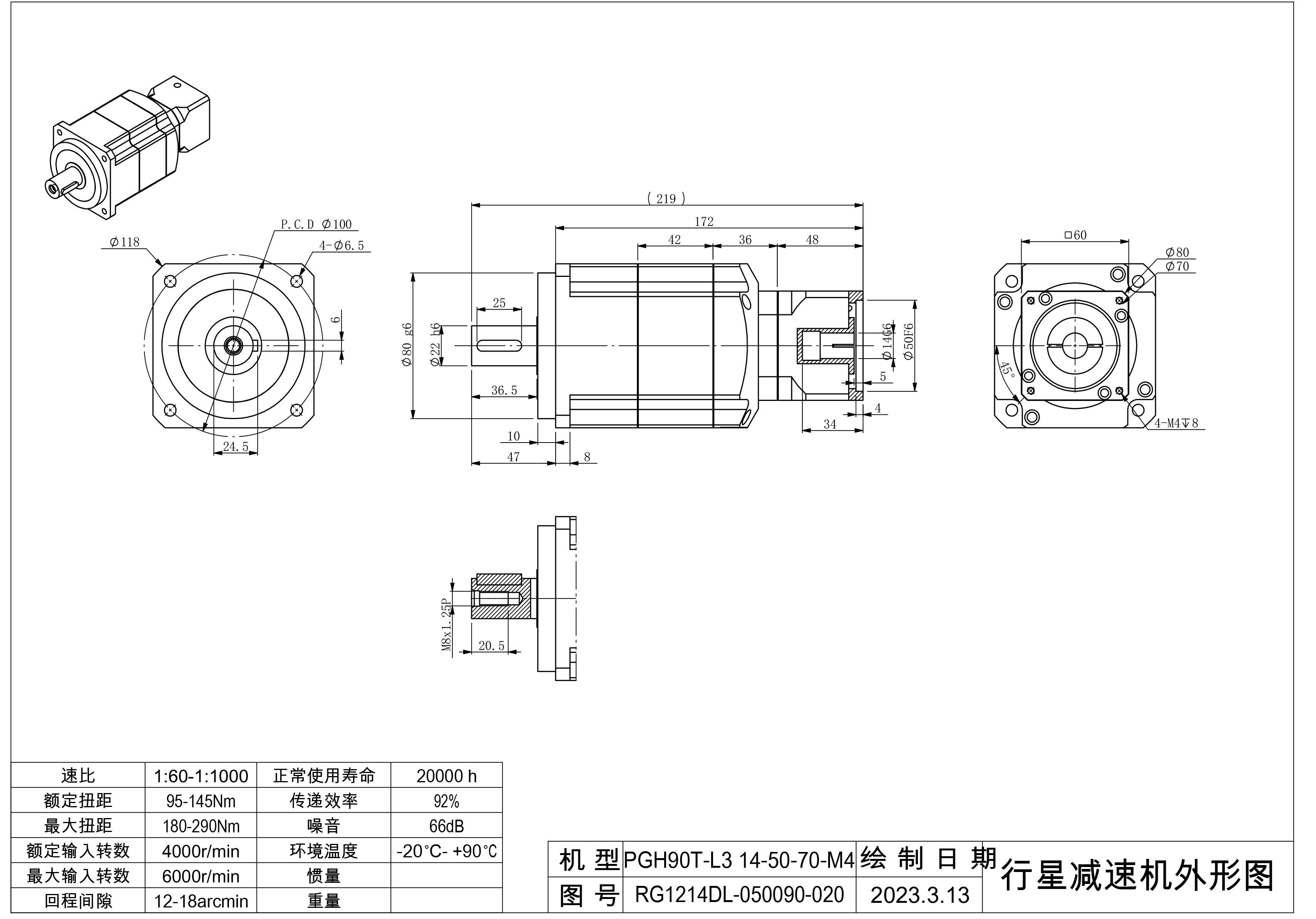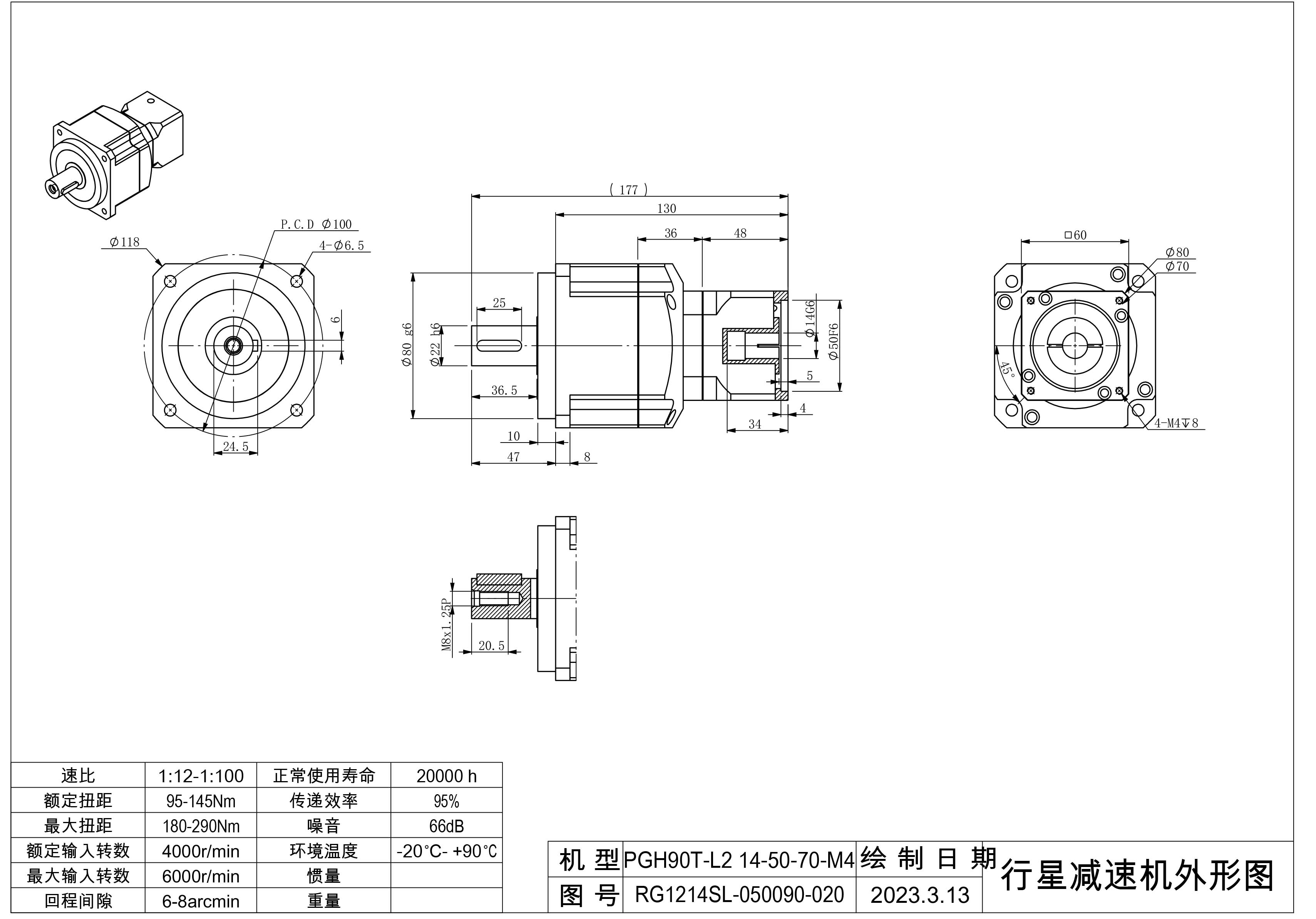 KB系列伺服行星减速机PGH090T-L2 14-50-70-M4 PGH090T-L3 14-50-70-M4 PGH090T-L2 14-50-70-M5 PGH090T-L3 14-50-70-M5