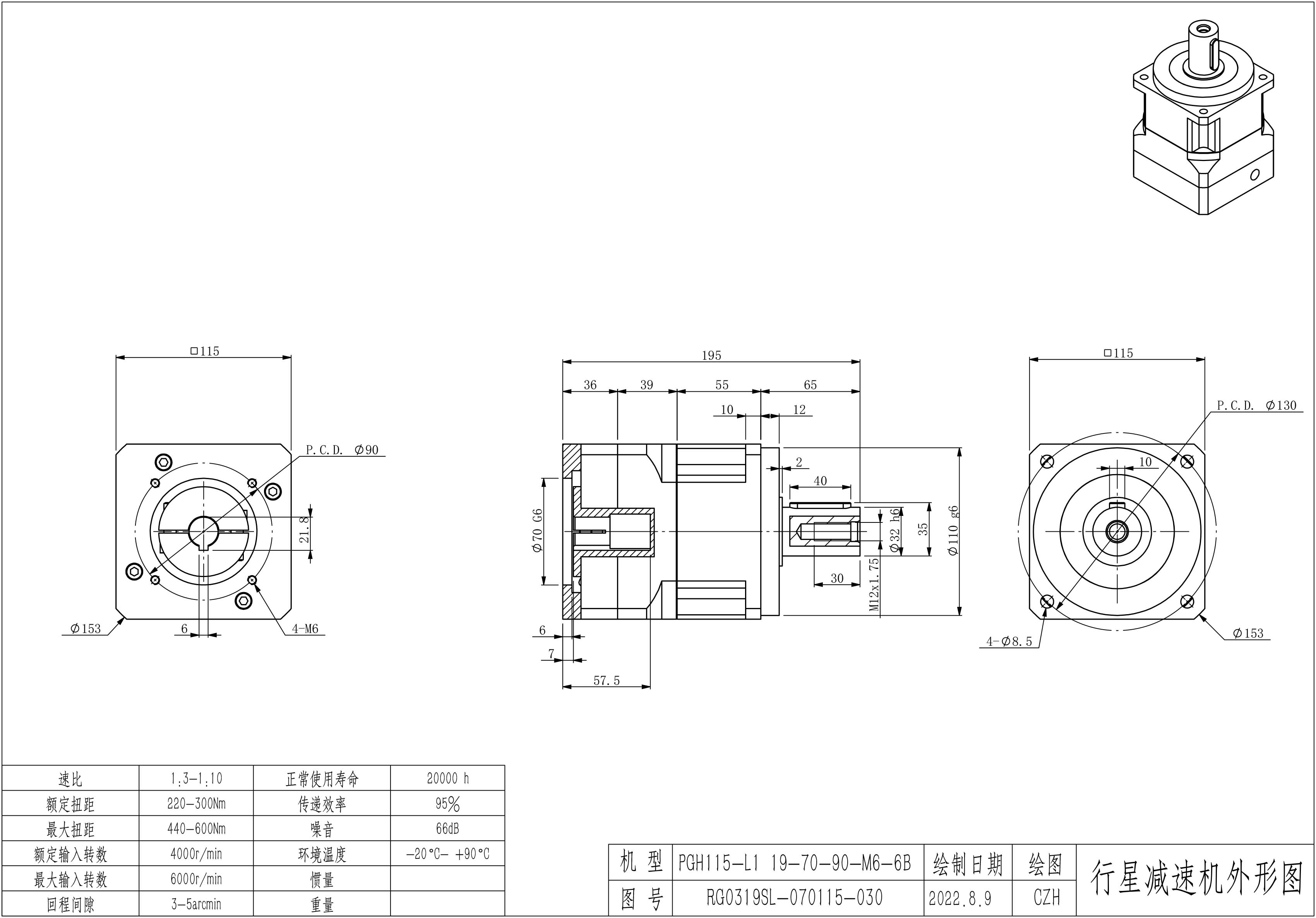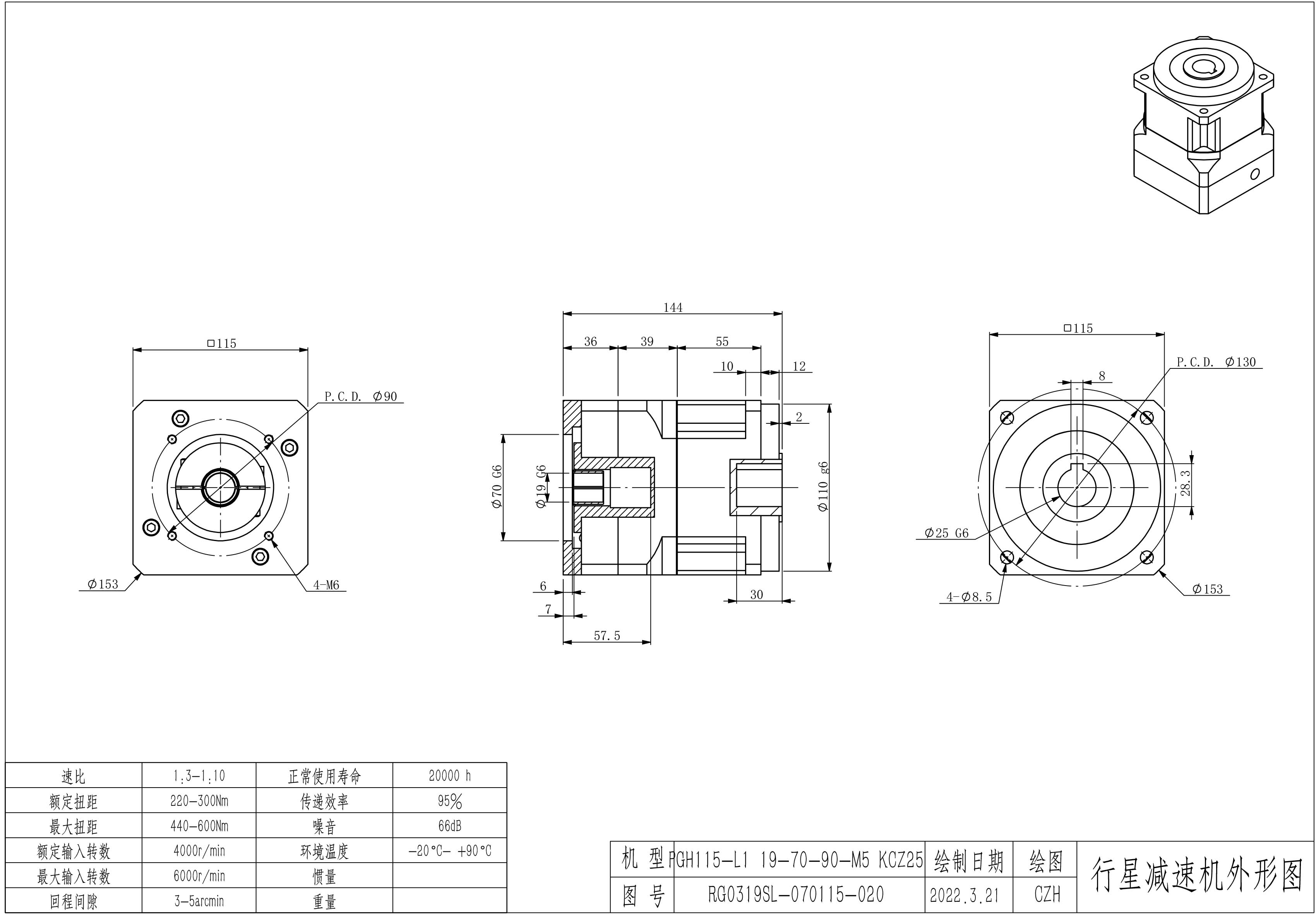 KB系列伺服行星减速机PGH115-L1 19-70-90-M6 PGH115-L1 19-70-90-M6-6B PGH115T-L2 19-70-90-M6 PGH115T-L2 19-70-90-M6-6B 孔PGH115-L1 19-70-90-M6 KCZ25 孔PGH115-L2 19-70-90-M6 KCZ25 孔PGH115T-L2 19-70-90-M6 KCZ22标准 孔PGH115T-L2 19-70-90-M6 KCZ25