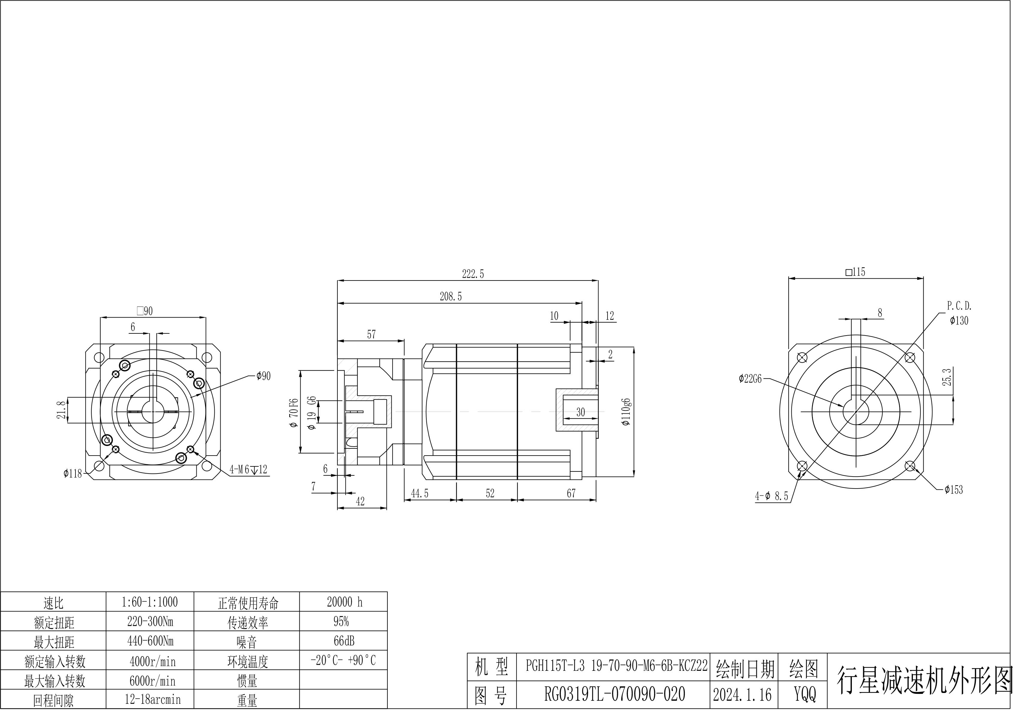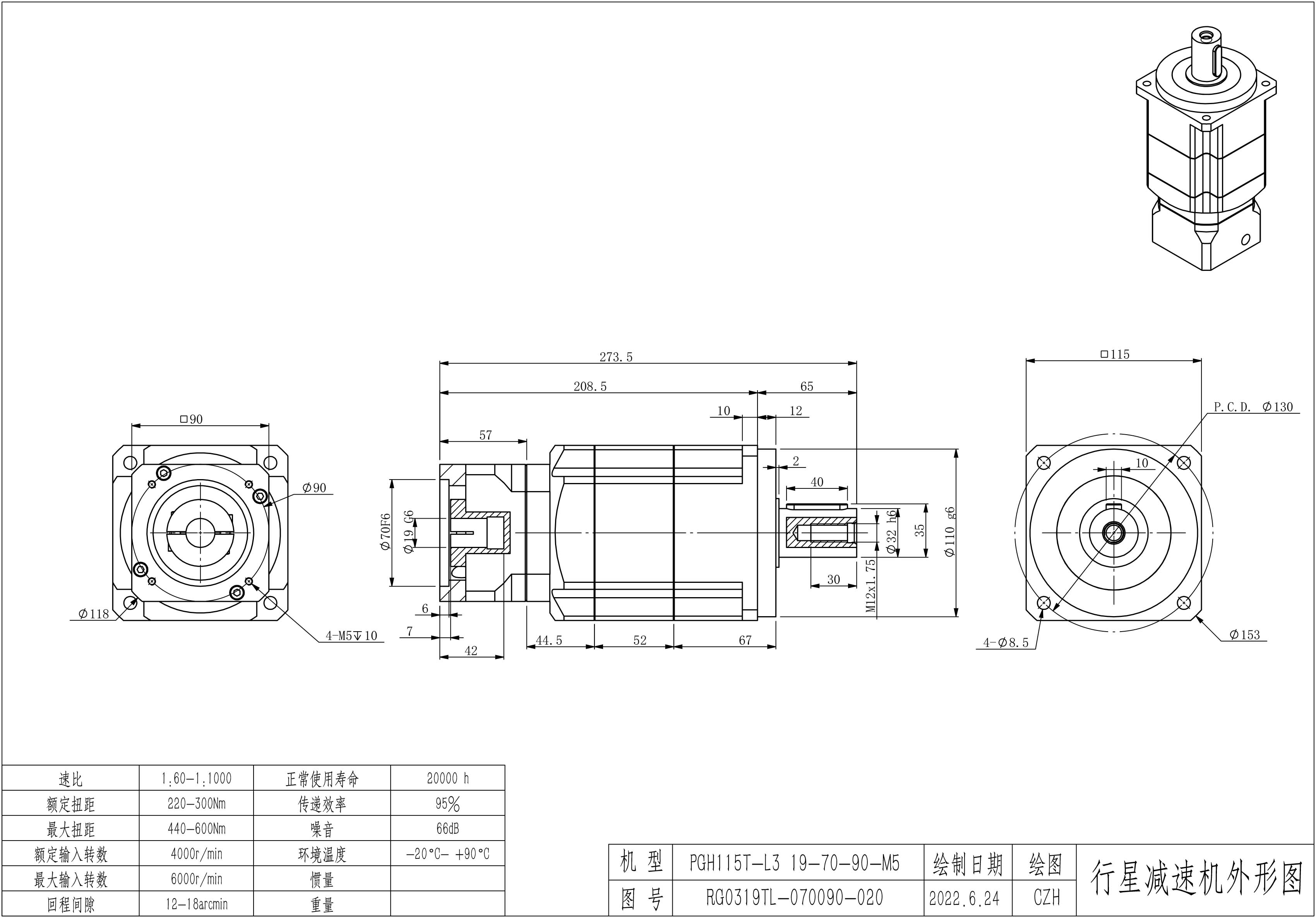 KB系列伺服行星减速机PGH115T-L3 19-70-90-M5 PGH115T-L3 19-70-90-M6 PGH115T-L3 19-70-90-M6-6B 孔PGH115T-L3 19-70-90-M6-6B-KCZ22(标准)