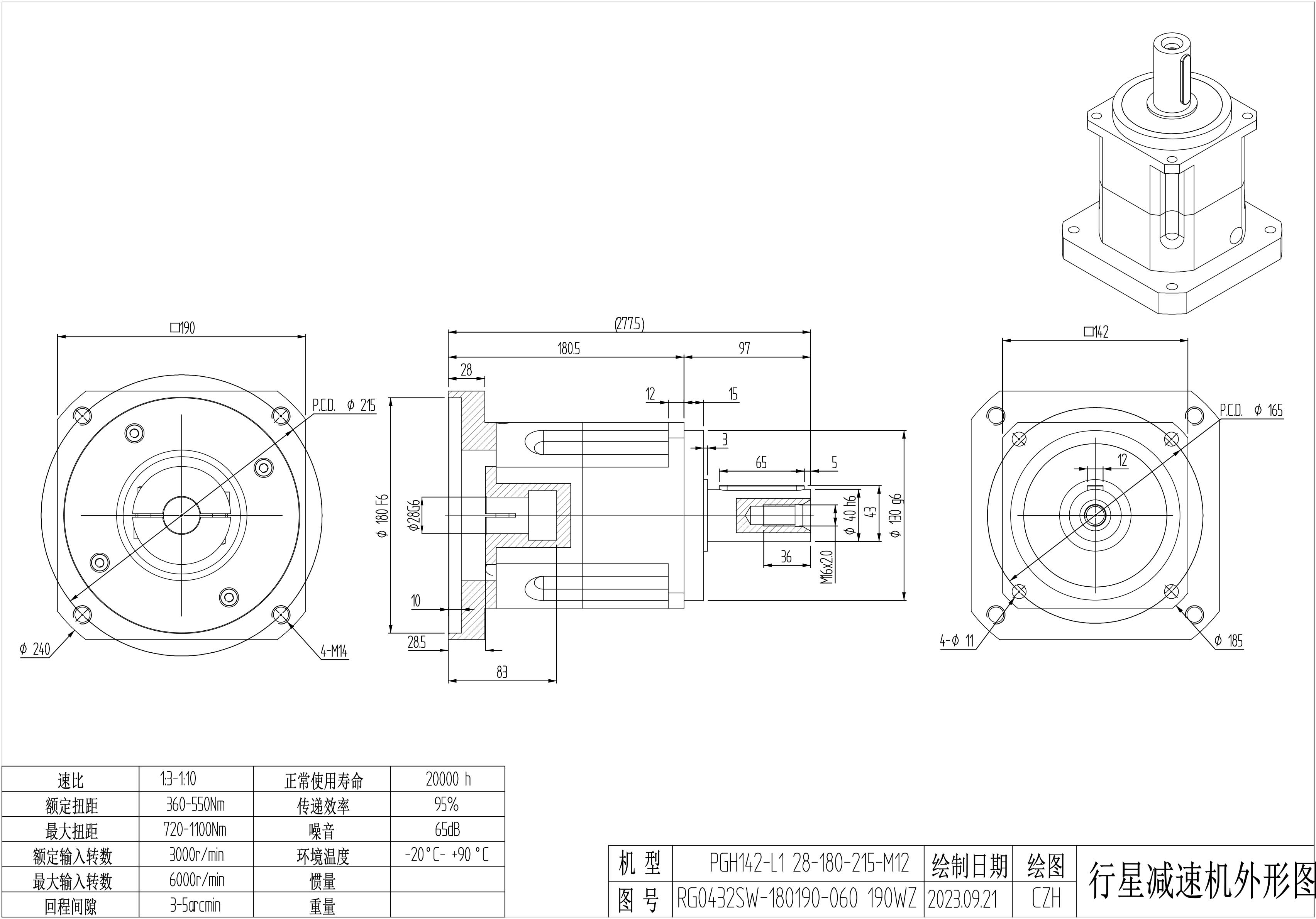 KB系列伺服行星减速机PGH142-L1 28-180-215-M14 LR83 PGH142-L2 28-180-215-M14 LR83