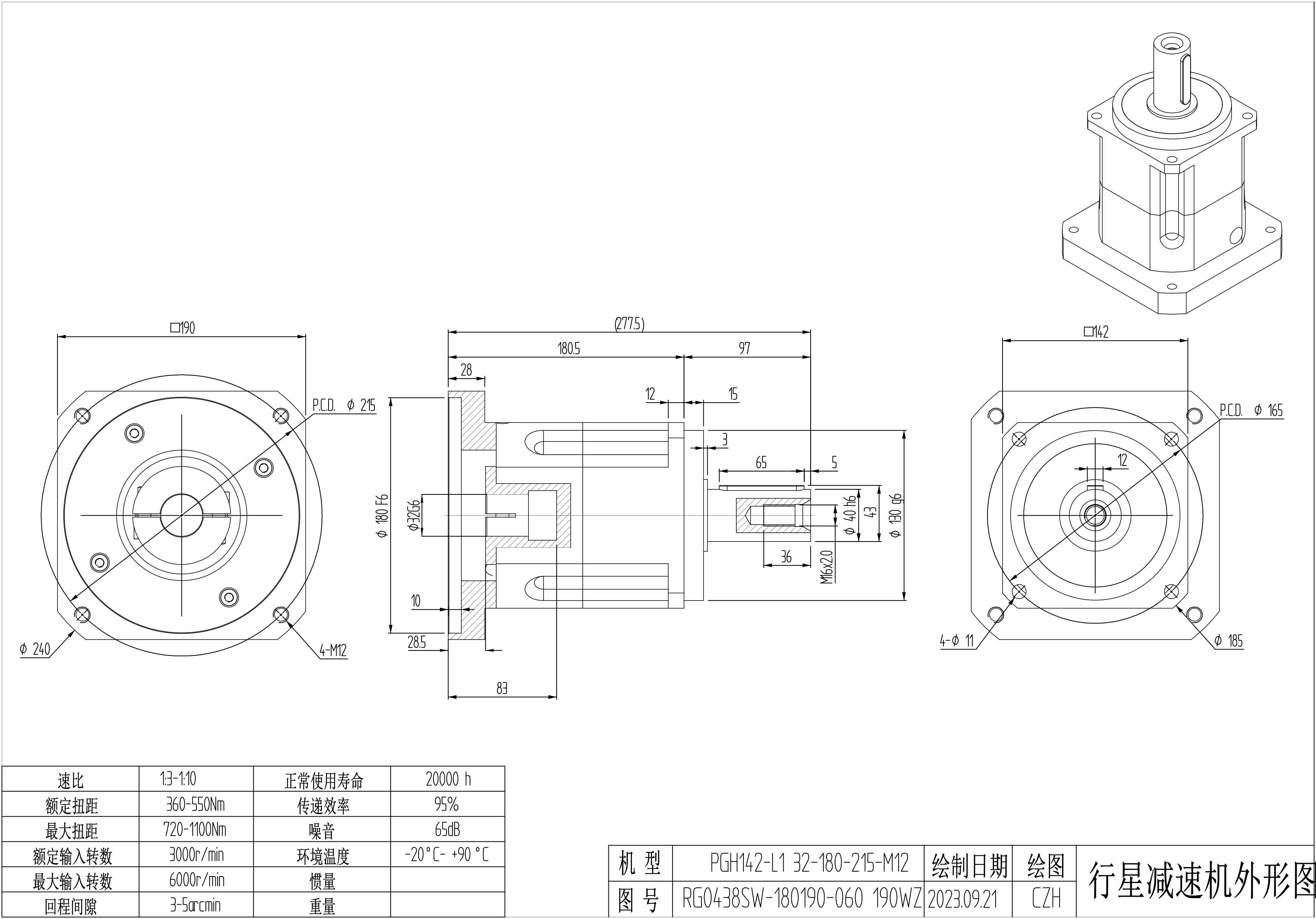KB系列伺服行星减速机PGH142-L1 32-180-215-M12 LR83 PGH142-L2 32-180-215-M12 LR83