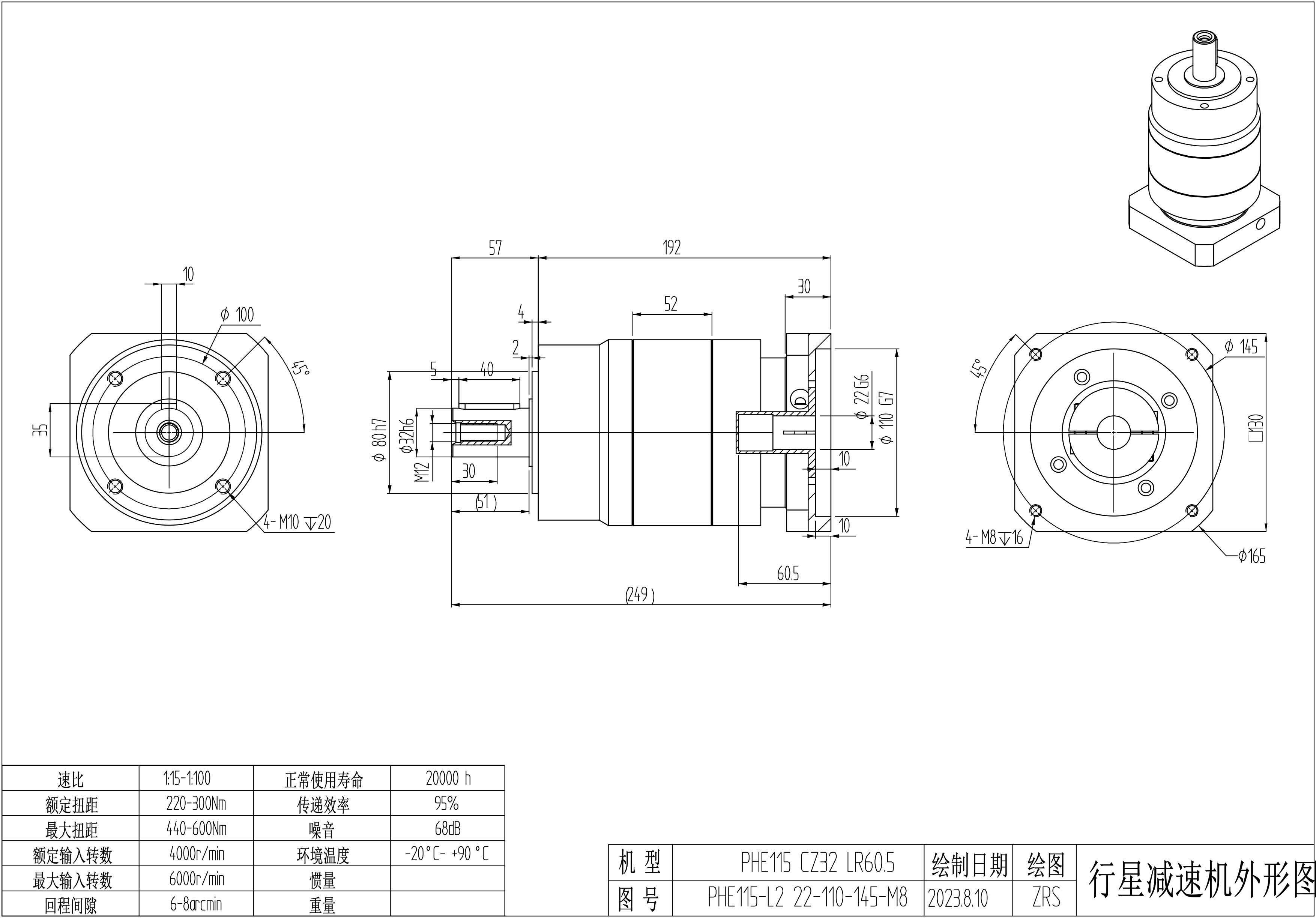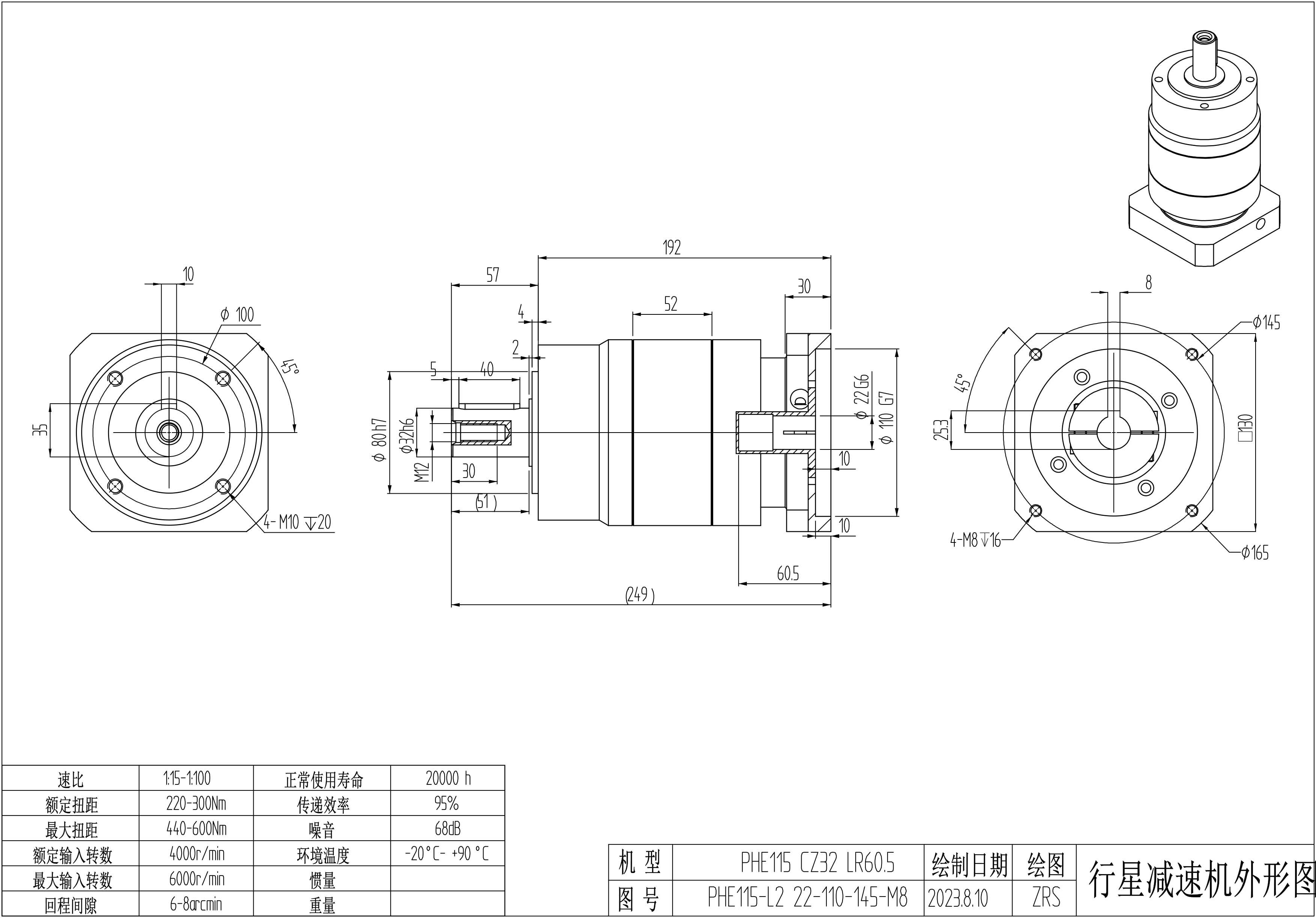 KB系列伺服行星减速机PHE115-L1 22-110-145-M8 LR60 PHE115-L2 22-110-145-M8 LR60 CZ32 PHE115-L2 22-110-145-M8 LR60 PHE115-L2 22-110-145-M8-8B LR60 CZ32