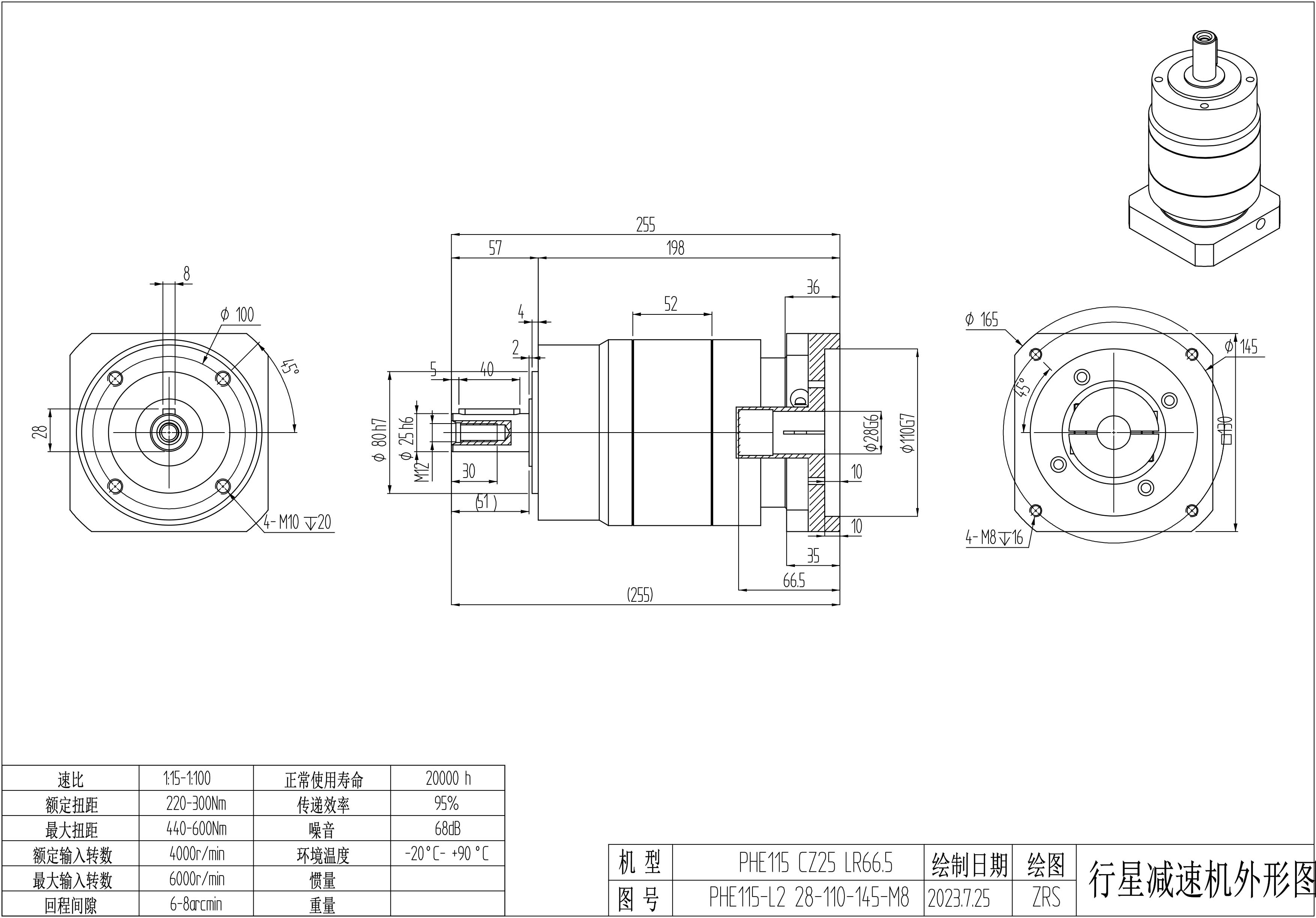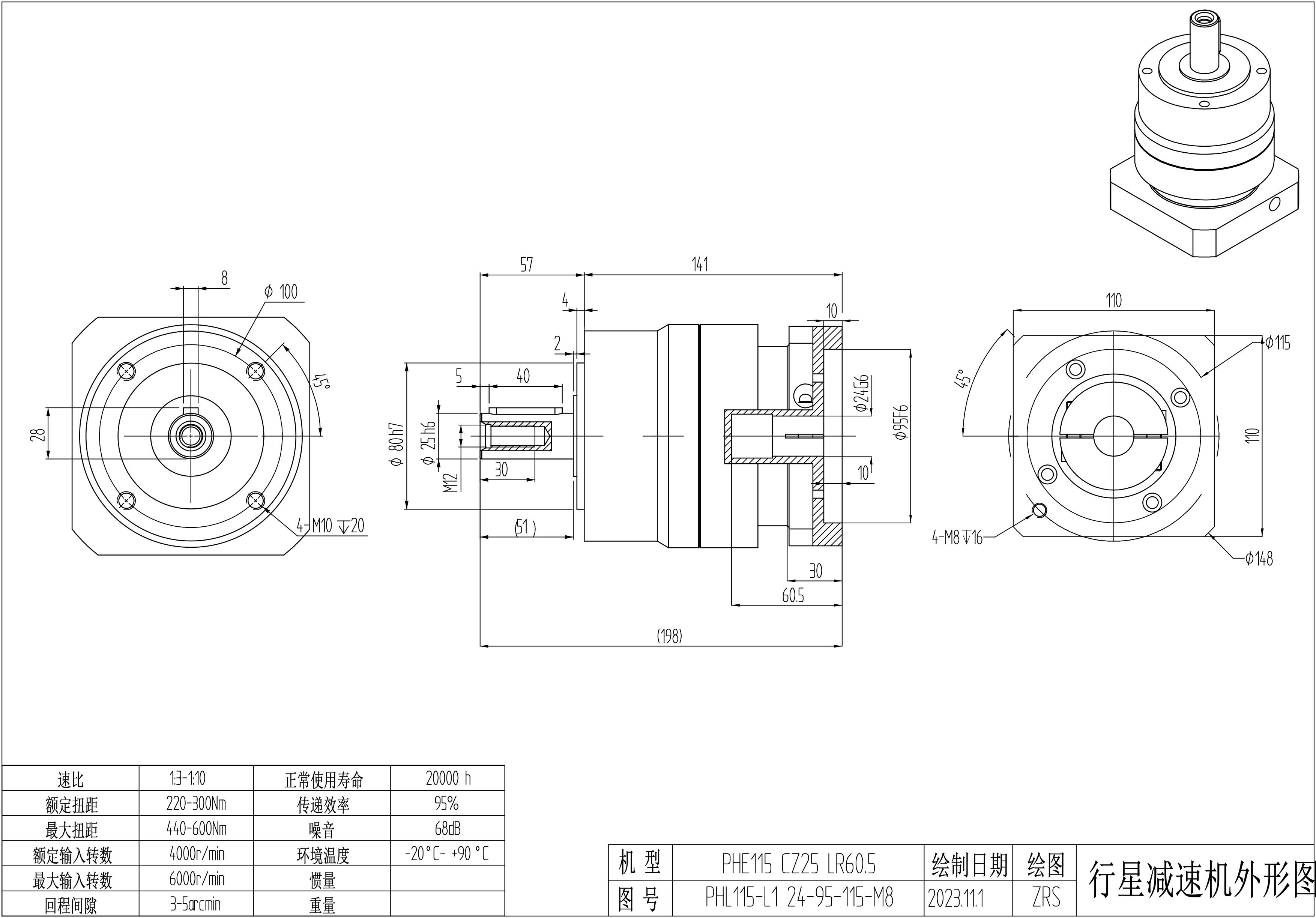 KB系列伺服行星减速机PHE115-L1 24-95-115-M8 LR60 PHE115-L2 28-110-145-M8 LR66.5