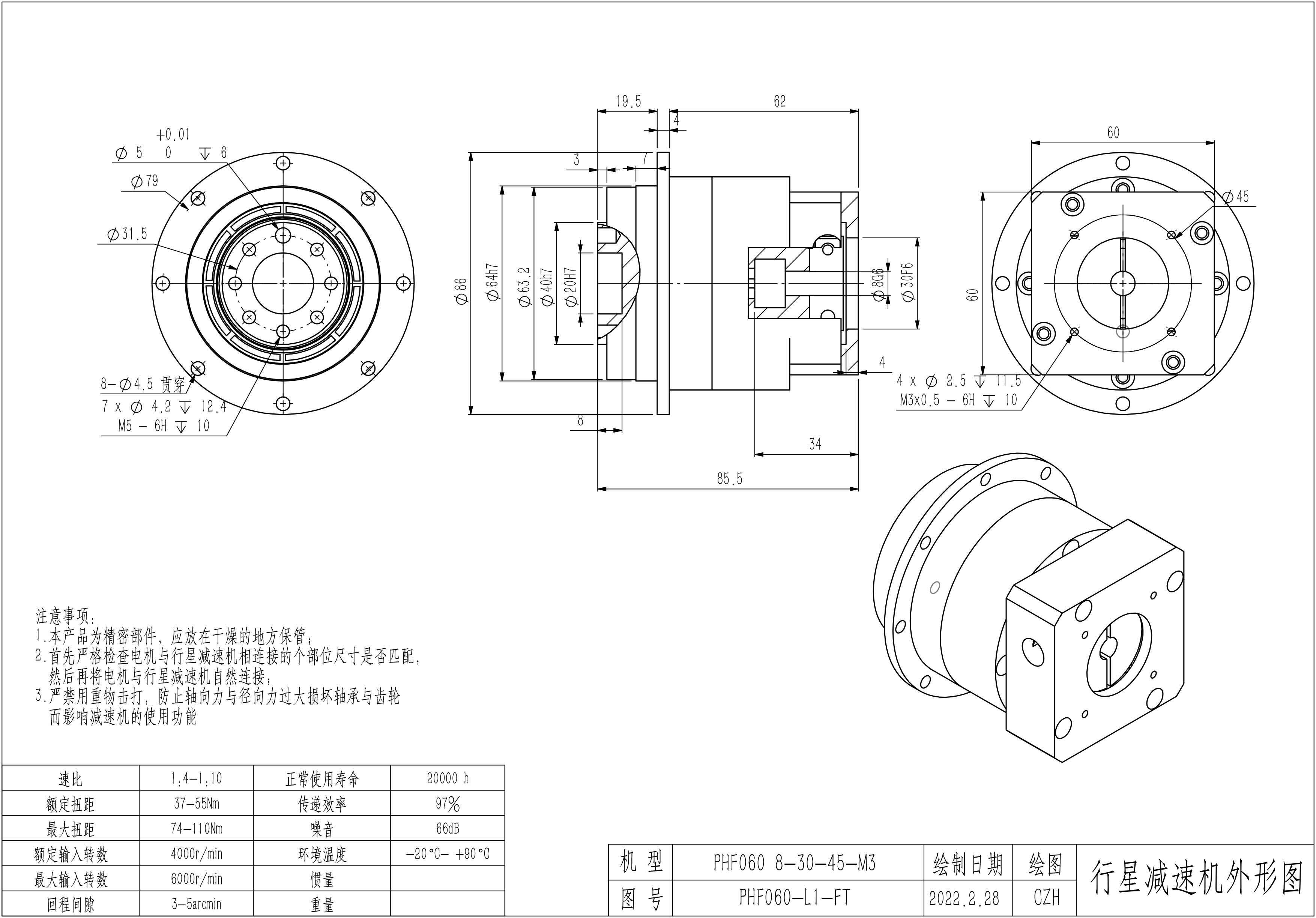 KB系列伺服行星减速机PHF060-L1 8-30-45-M3 PHF060-L2 8-30-45-M3