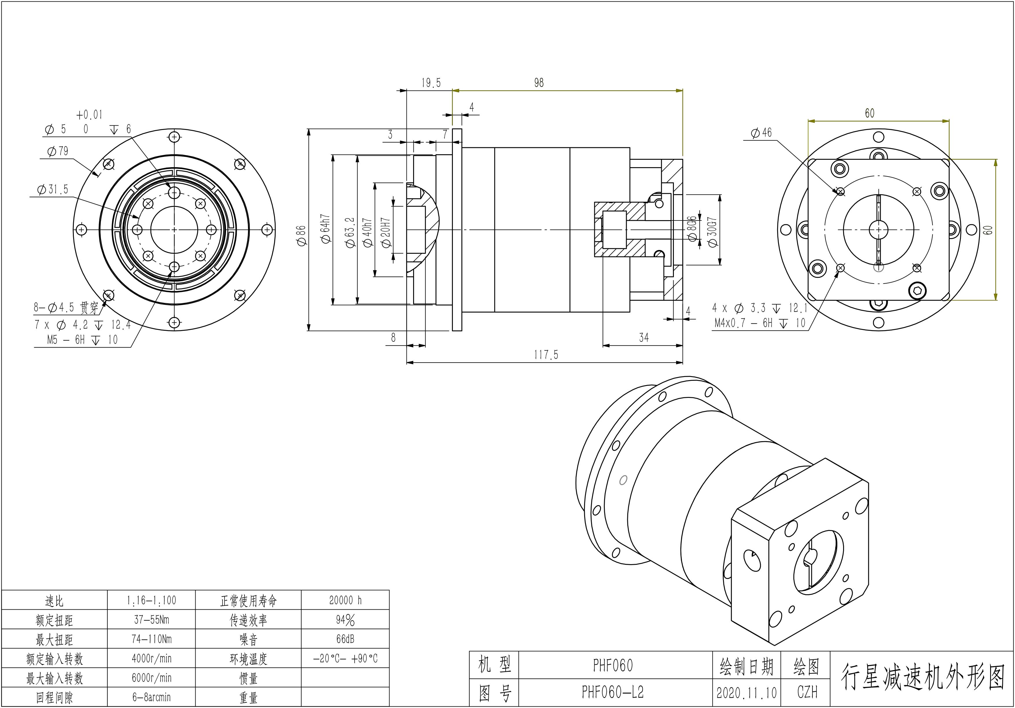 KB系列伺服行星减速机PHF060-L1 8-30-46-M4 PHF060-L2 8-30-46-M4