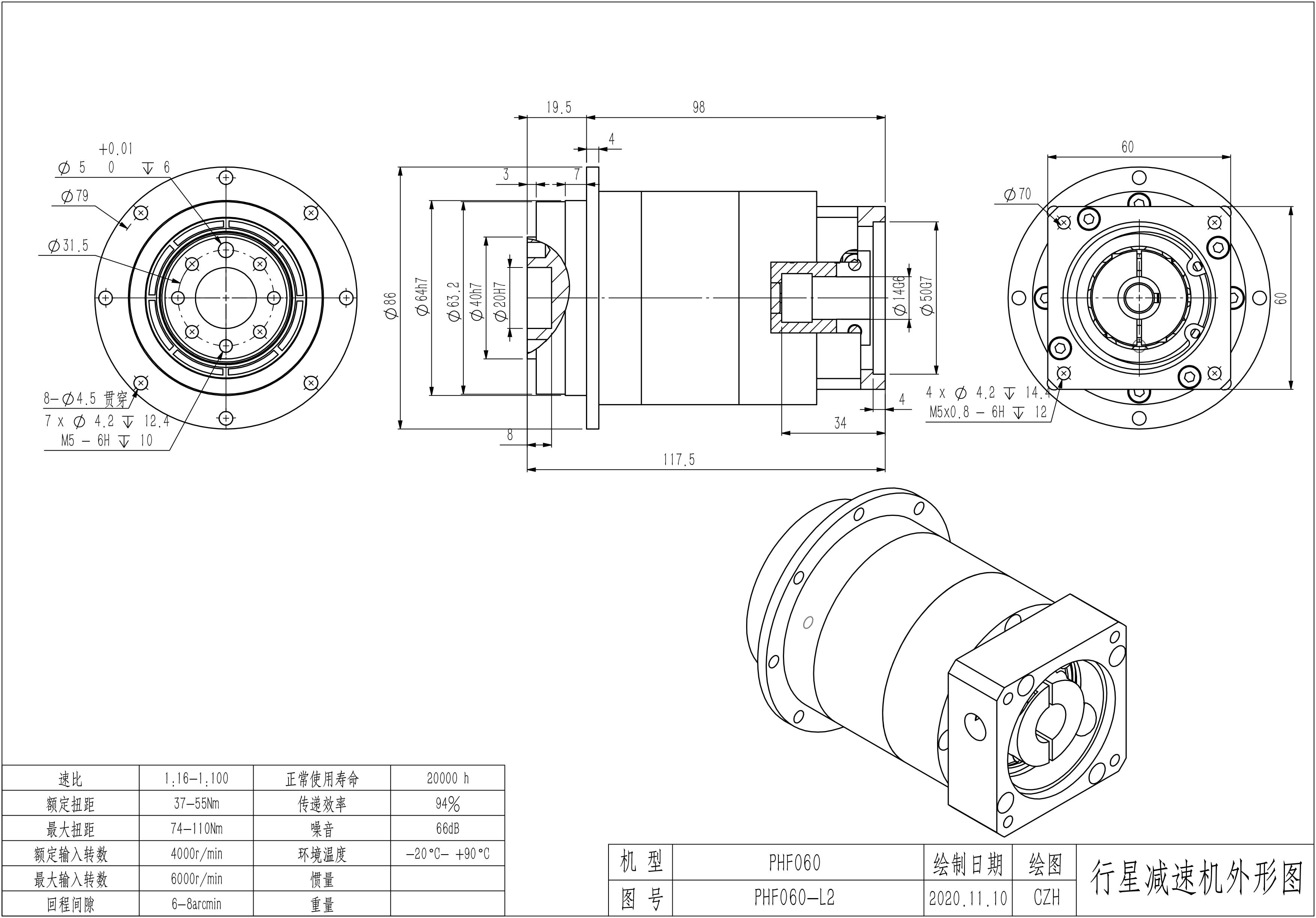 KB系列伺服行星减速机PHF060-L1 14-50-70-M5 PHF060-L1 14-50-70-M5-5B PHF060-L2 14-50-70-M5 PHF060-L2 14-50-70-M5-5B