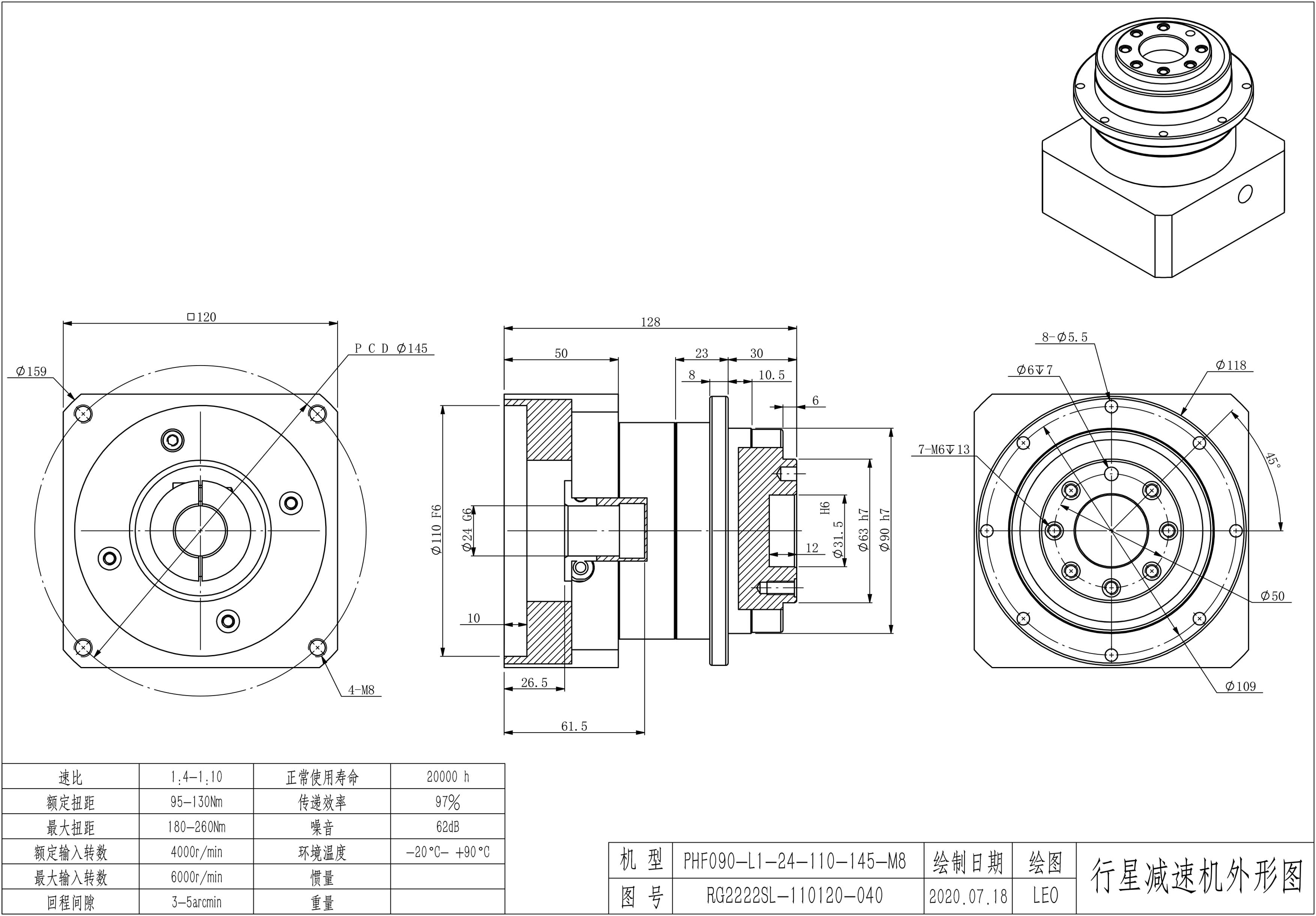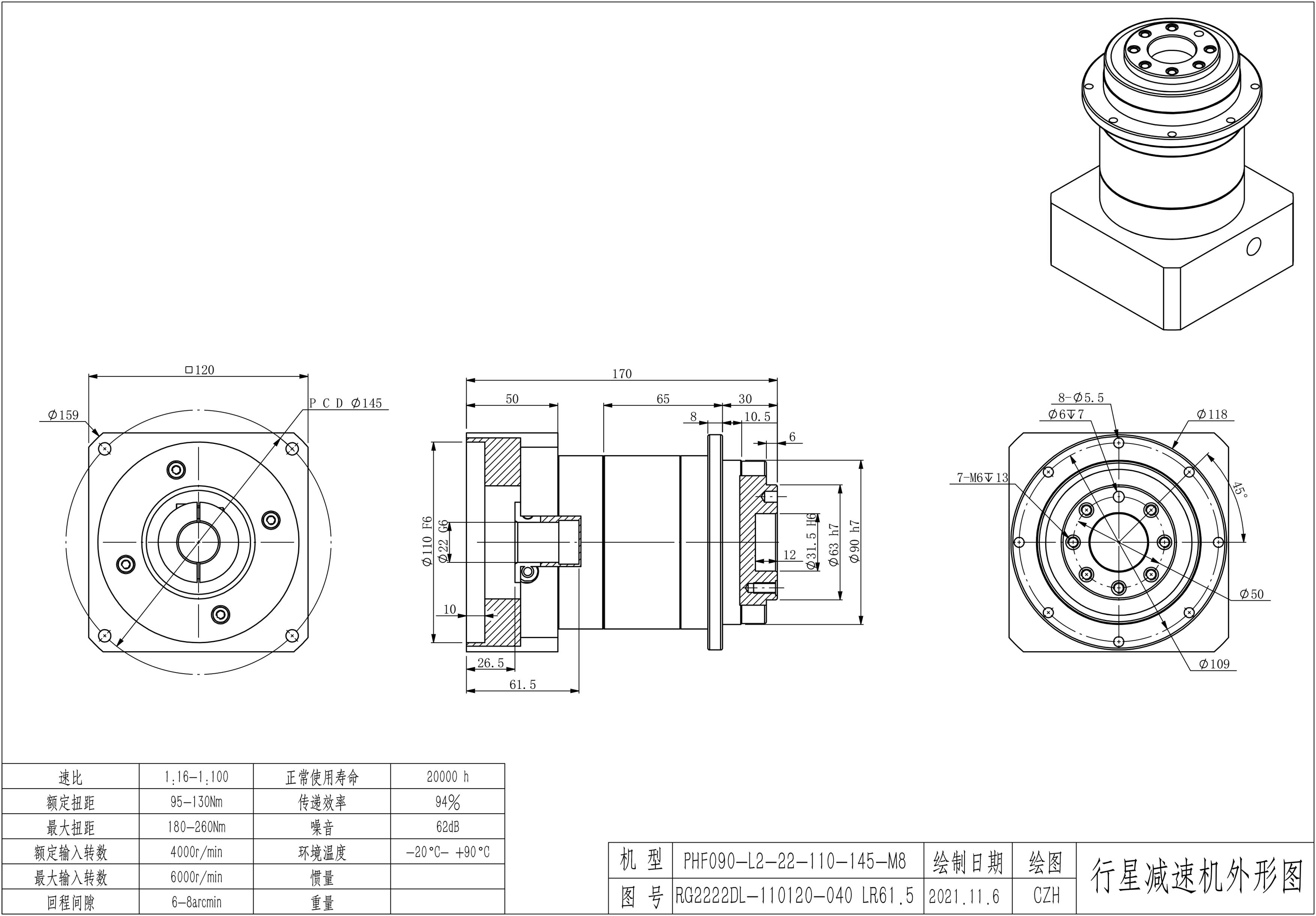 KB系列伺服行星减速机PHF090-L1 22-110-145-M8 LR61.5 PHF090-L1 24-110-145-M8 LR61.5 PHF090-L2 22-110-145-M8 LR61.5