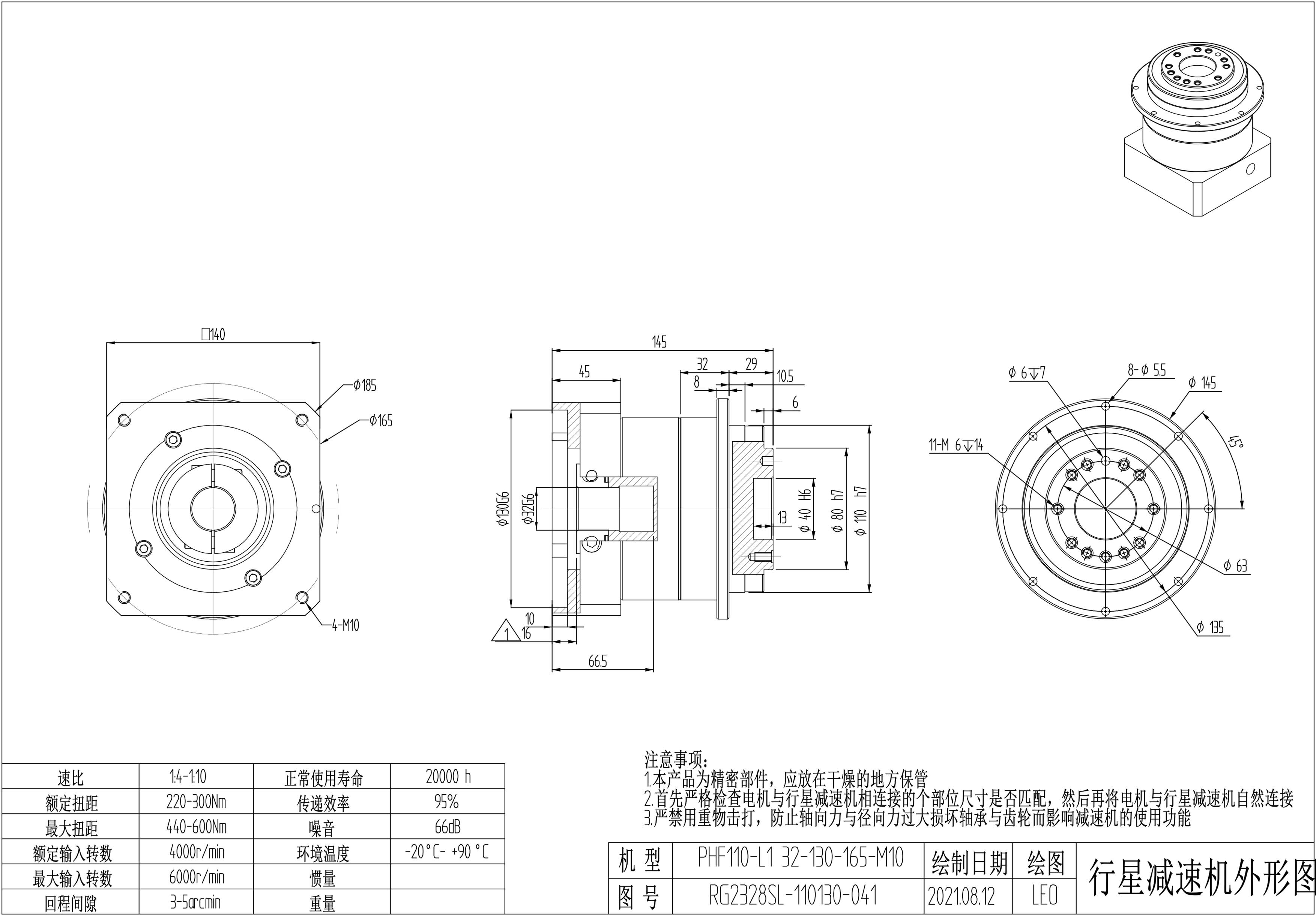 KB系列伺服行星减速机PHF110-L1 32-130-165-M10