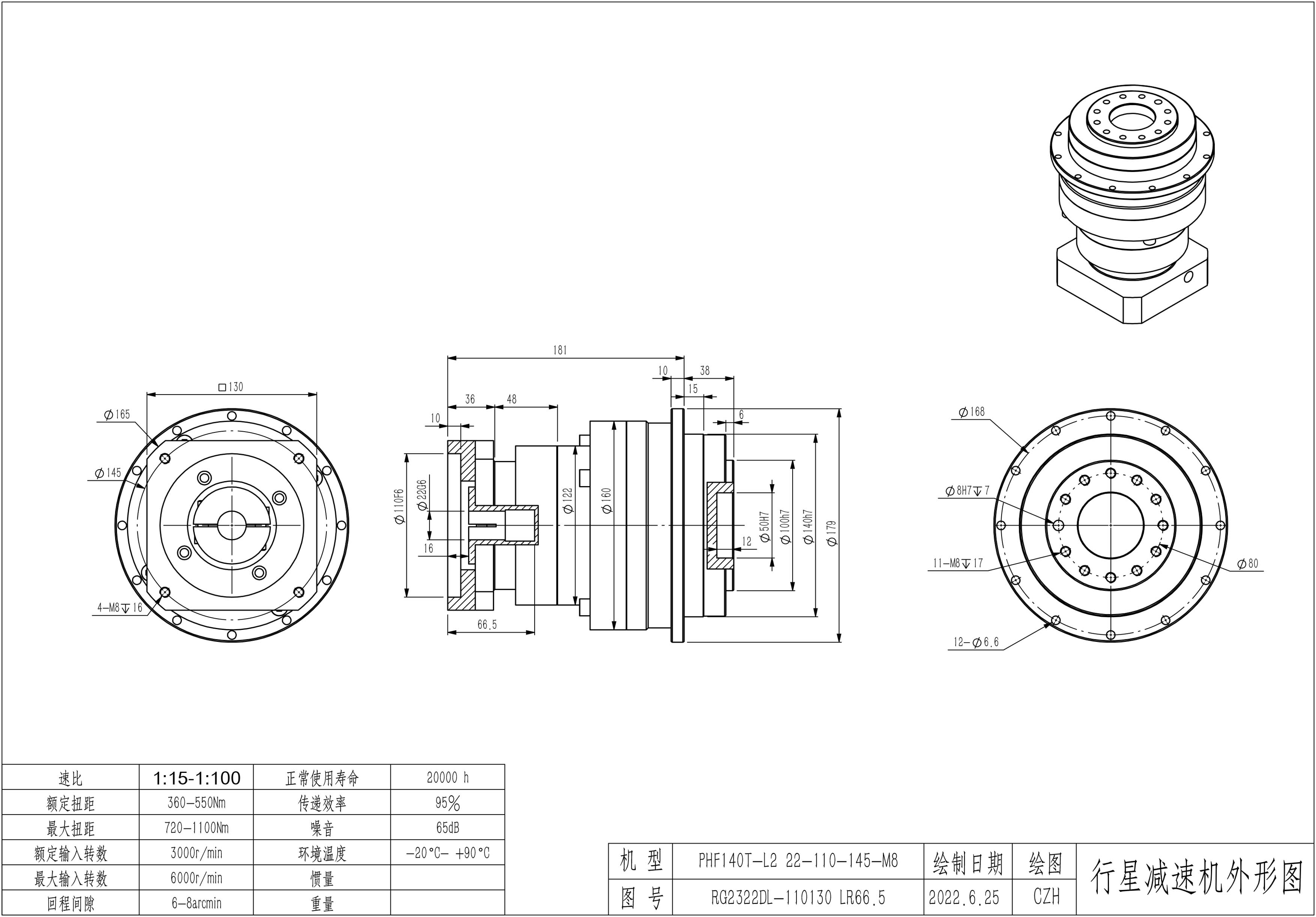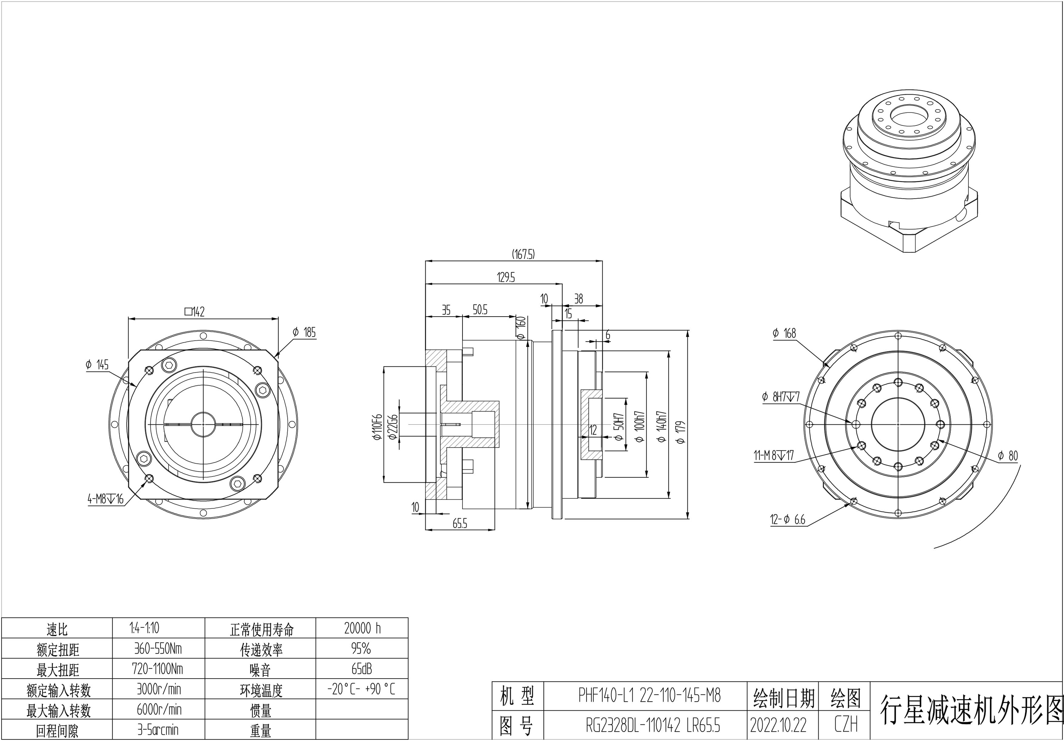 KB系列伺服行星减速机PHF140-L1 22-110-145-M8 PHF140T-L2 22-110-145-M8 PHF140T-L3 22-110-145-M8