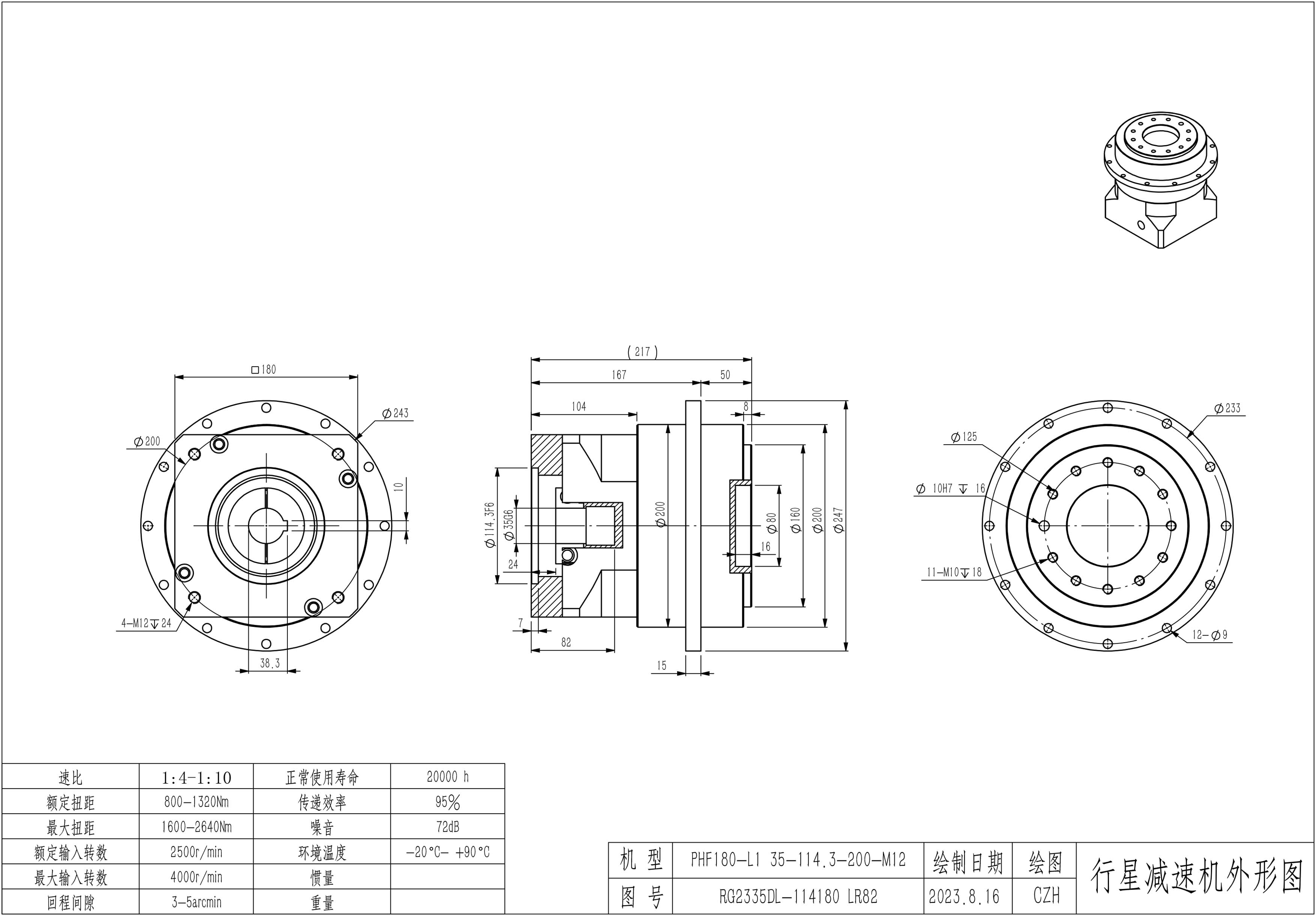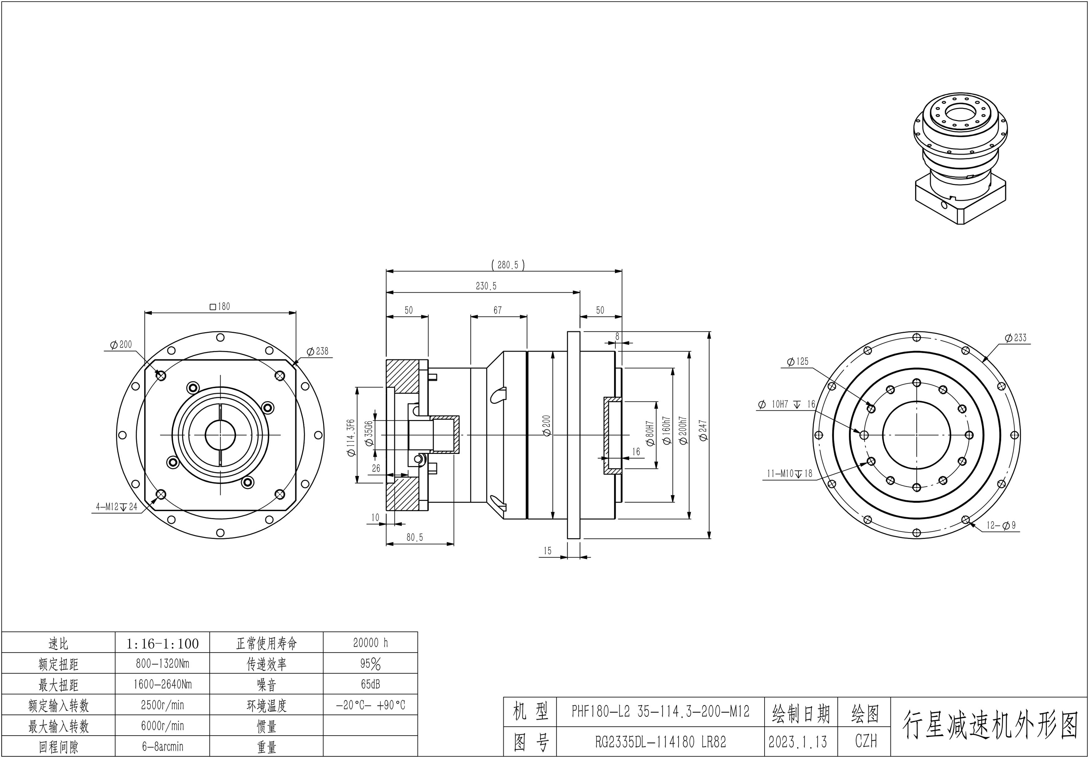 KB系列伺服行星减速机PHF180-L1 35-114.3-200-M12 PHF180-L1 35-114.3-200-M12-10B PHF180T-L2 35-114.3-200-M12
