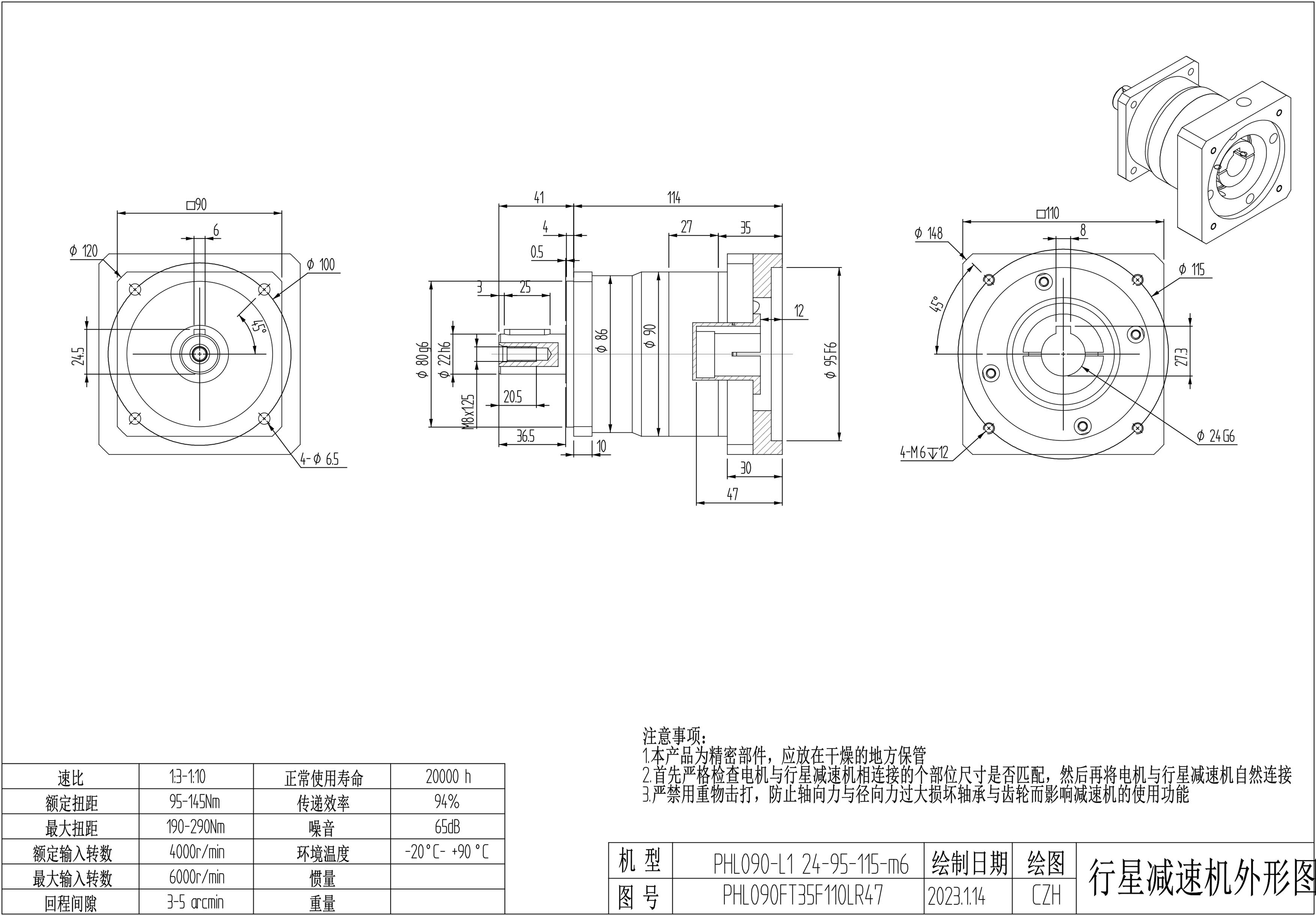 KB系列伺服行星减速机PHL090-L1 24-95-115-M6-8B