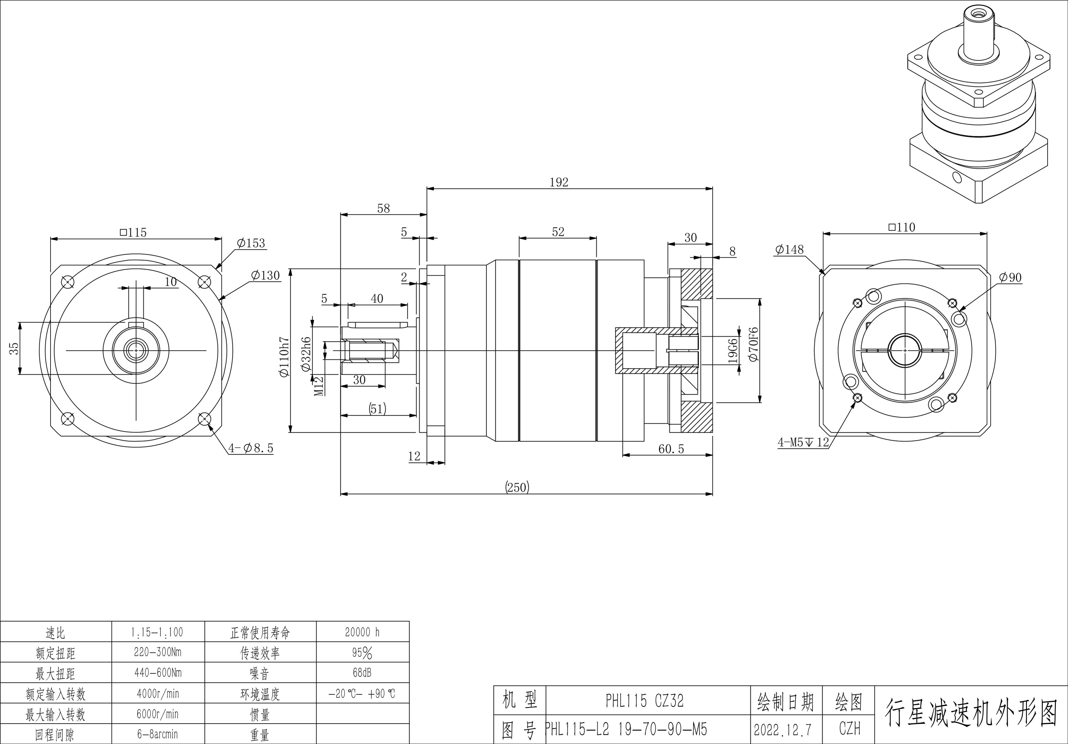 KB系列伺服行星减速机PHL115-L2 19-70-90-M5 CZ32