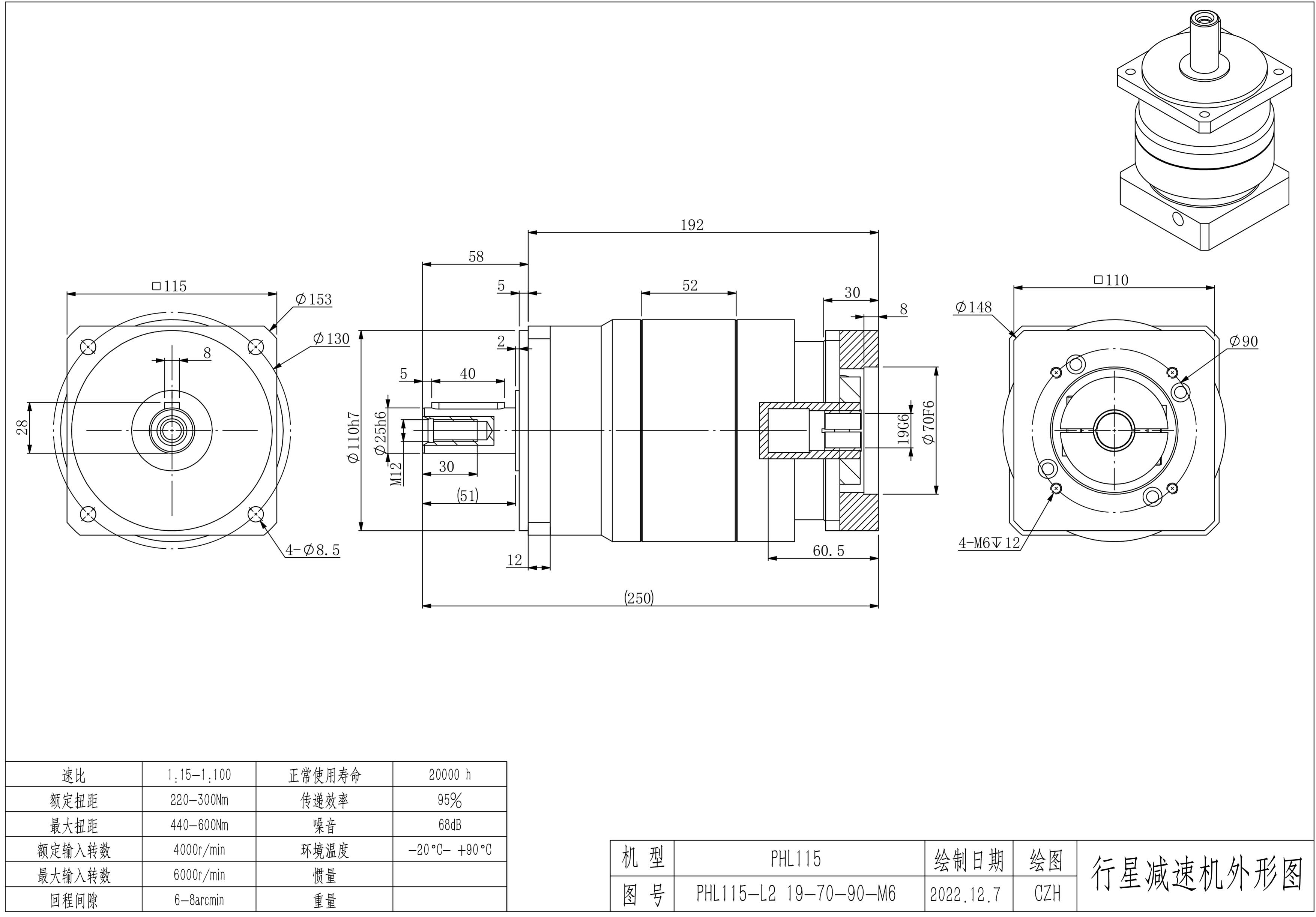 KB系列伺服行星减速机PHL115-L1 19-70-90-M6 PHL115-L2 19-70-90-M6 CZ32 PHL115-L2 19-70-90-M6