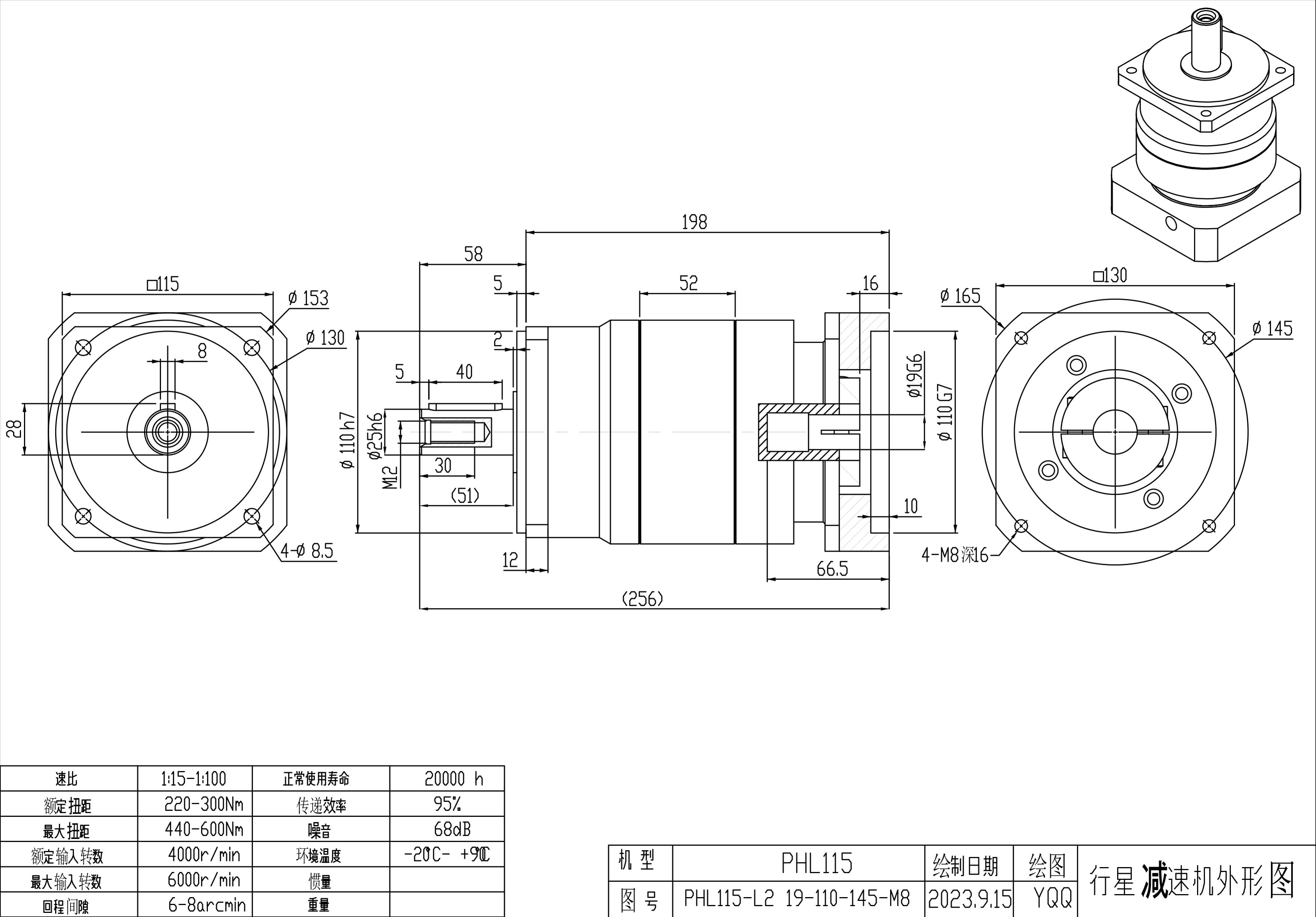 KB系列伺服行星减速机PHL115-L2 19-110-145-M8 PHL115-L2 19-110-145-M8-6B