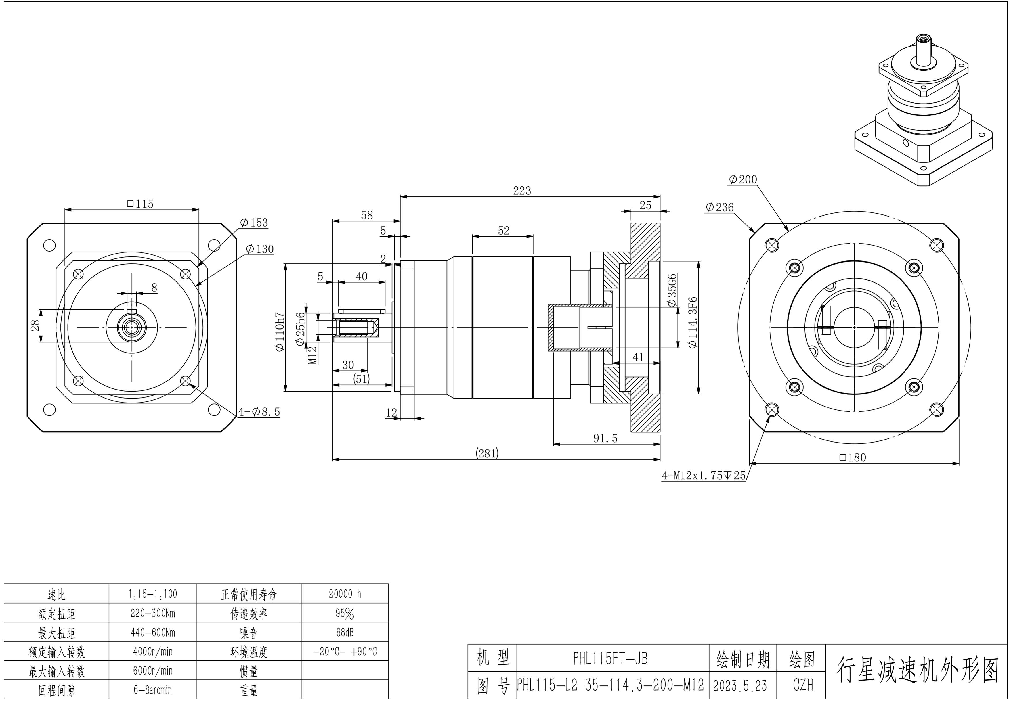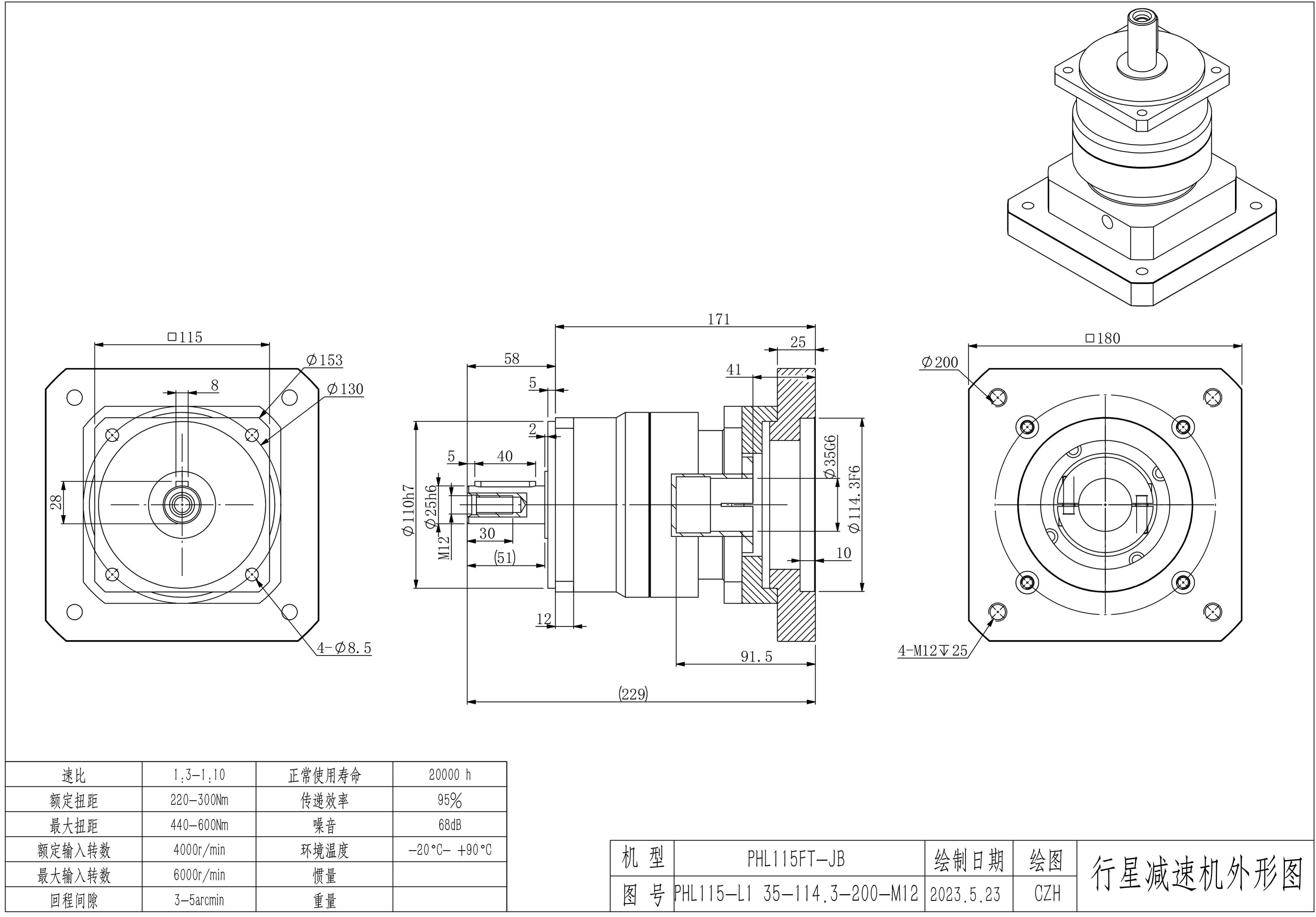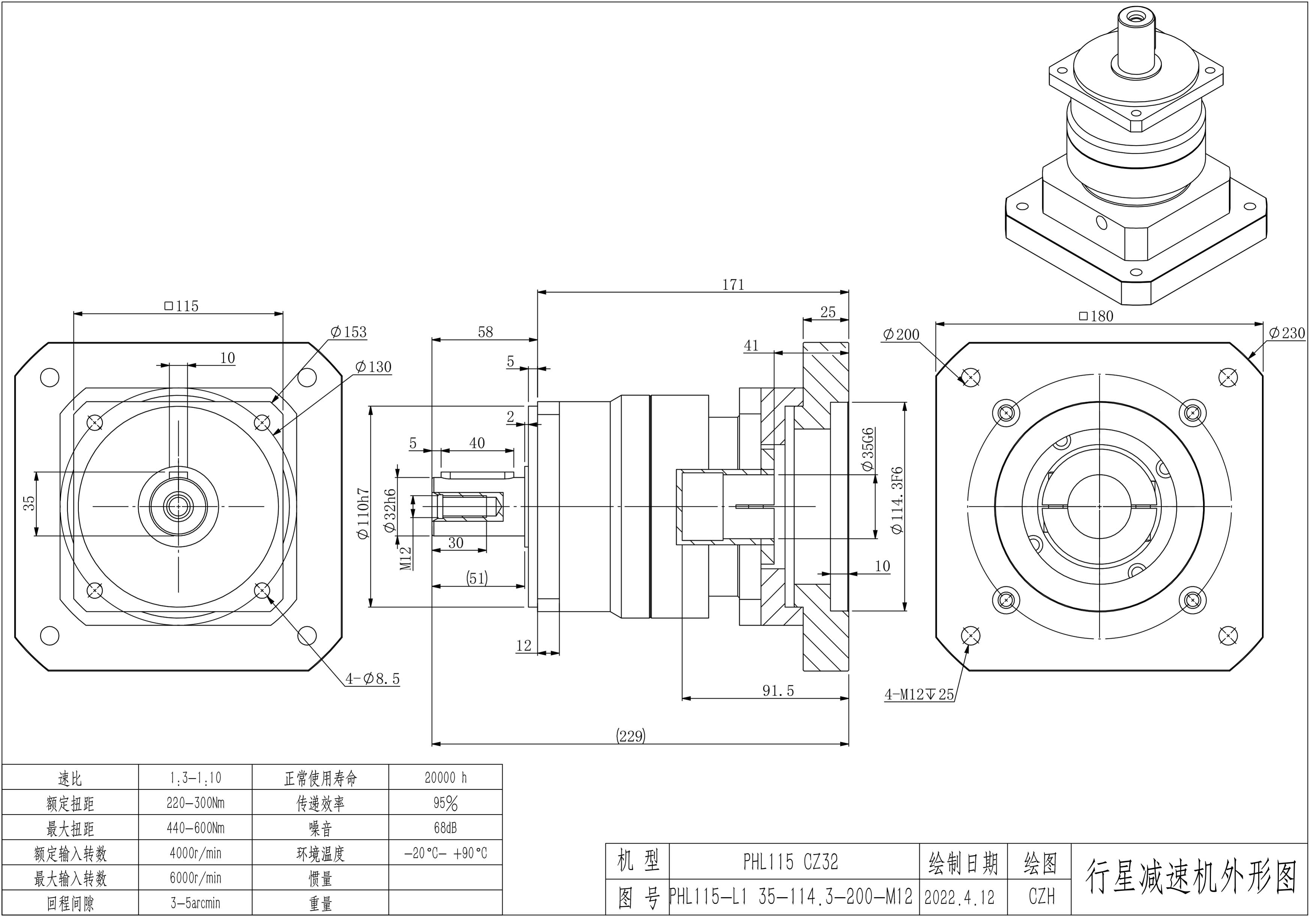 KB系列伺服行星减速机PHL115-L1 35-114.3-200-M12 CZ32 PHL115-L1 35-114.3-200-M12 PHL115-L2 35-114.3-200-M12 CZ32 PHL115-L2 35-114.3-200-M12