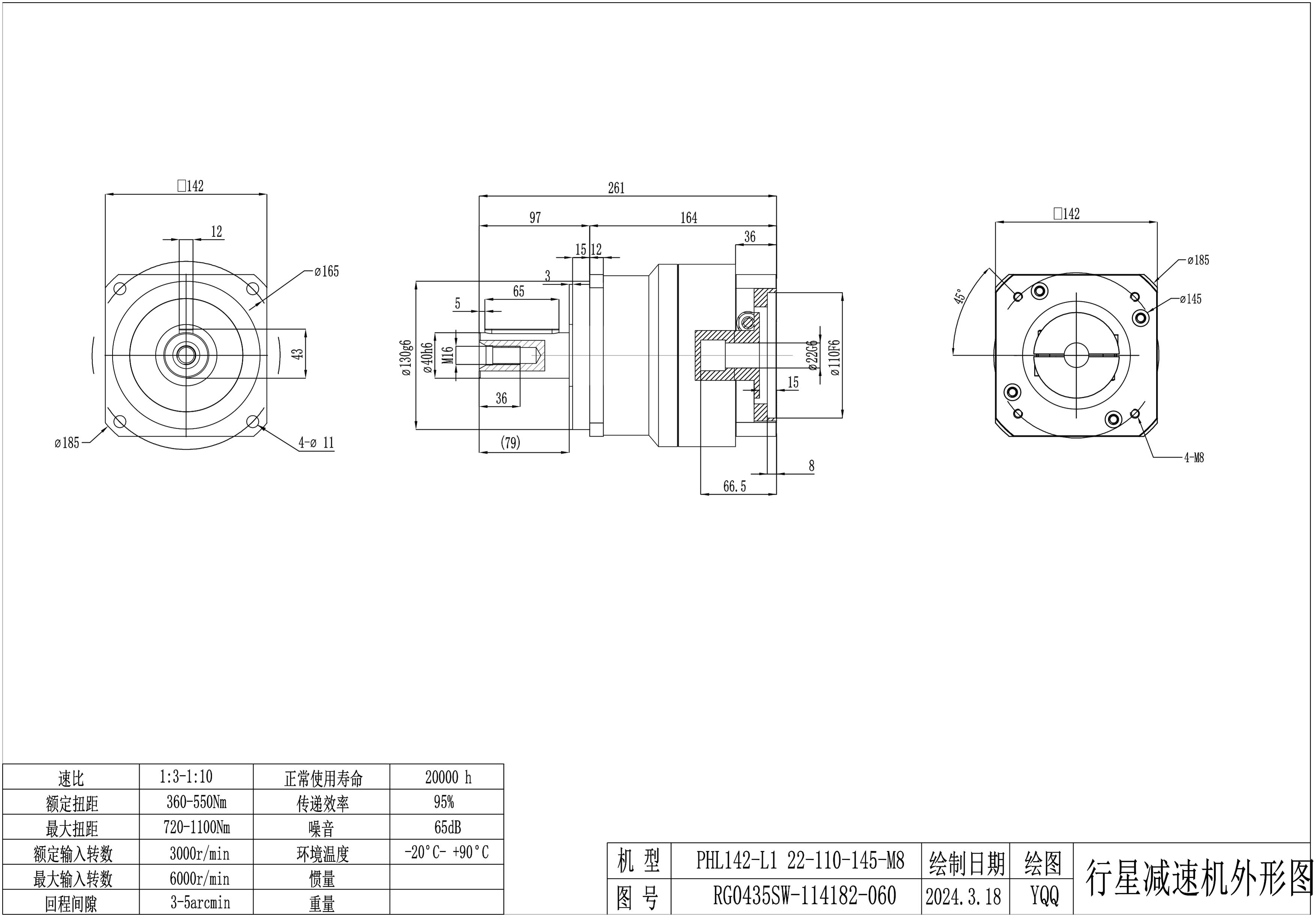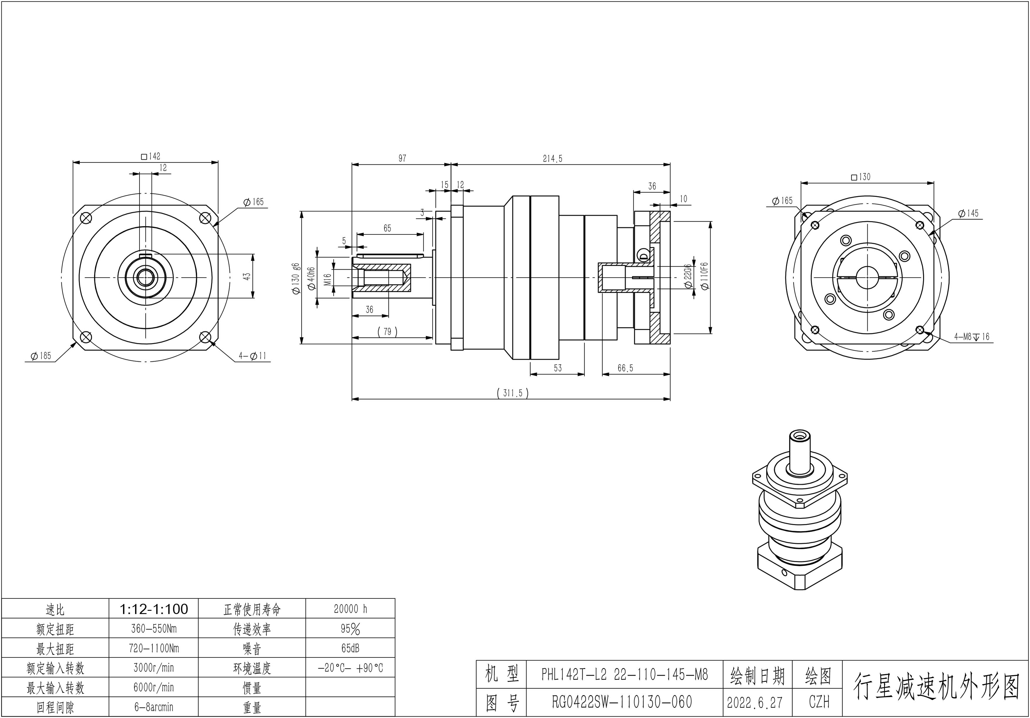 KB系列伺服行星减速机PHL142-L1 22-110-145-M8 PHL142T-L2 22-110-145-M8 PHL142T-L3 22-110-145-M8
