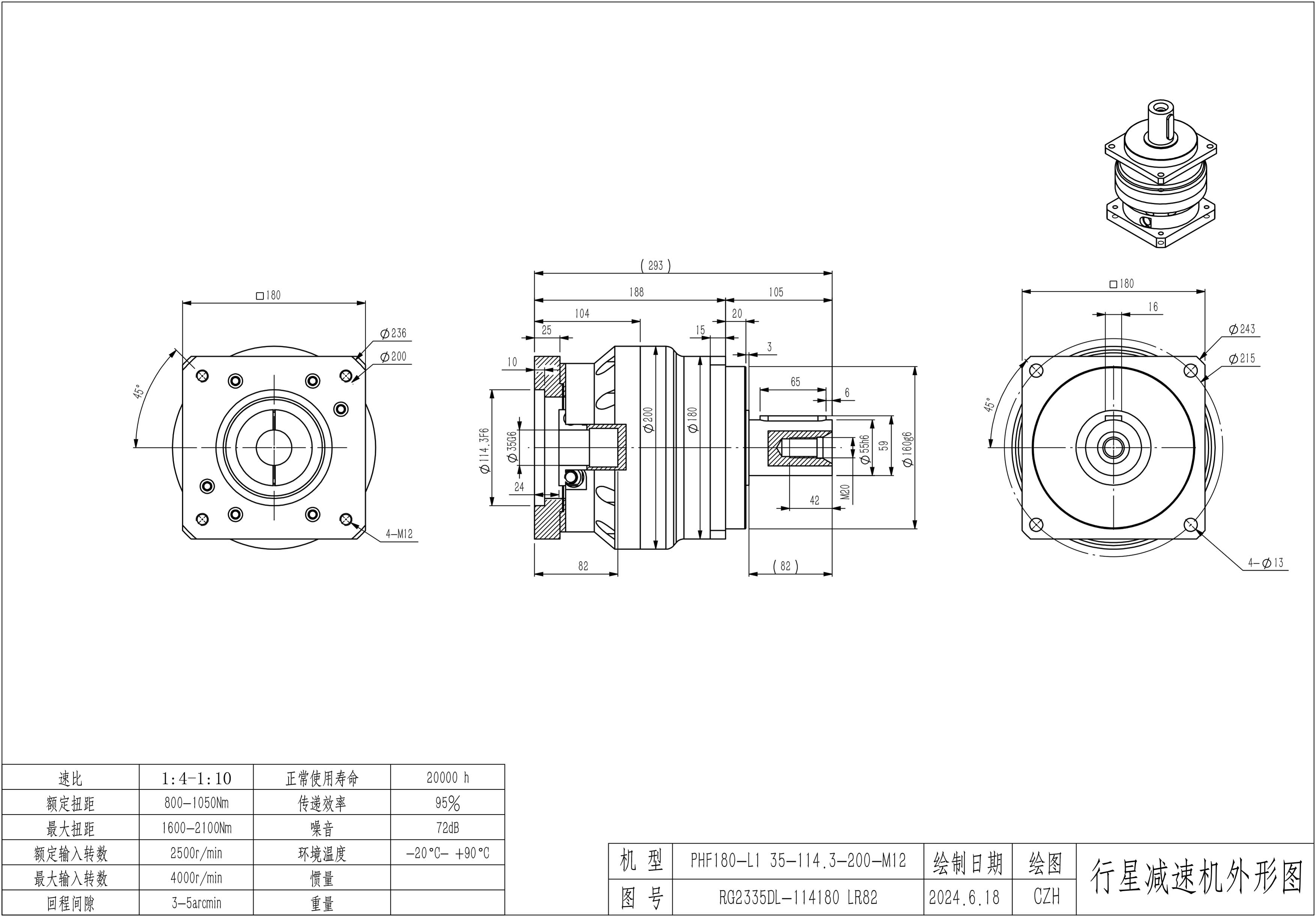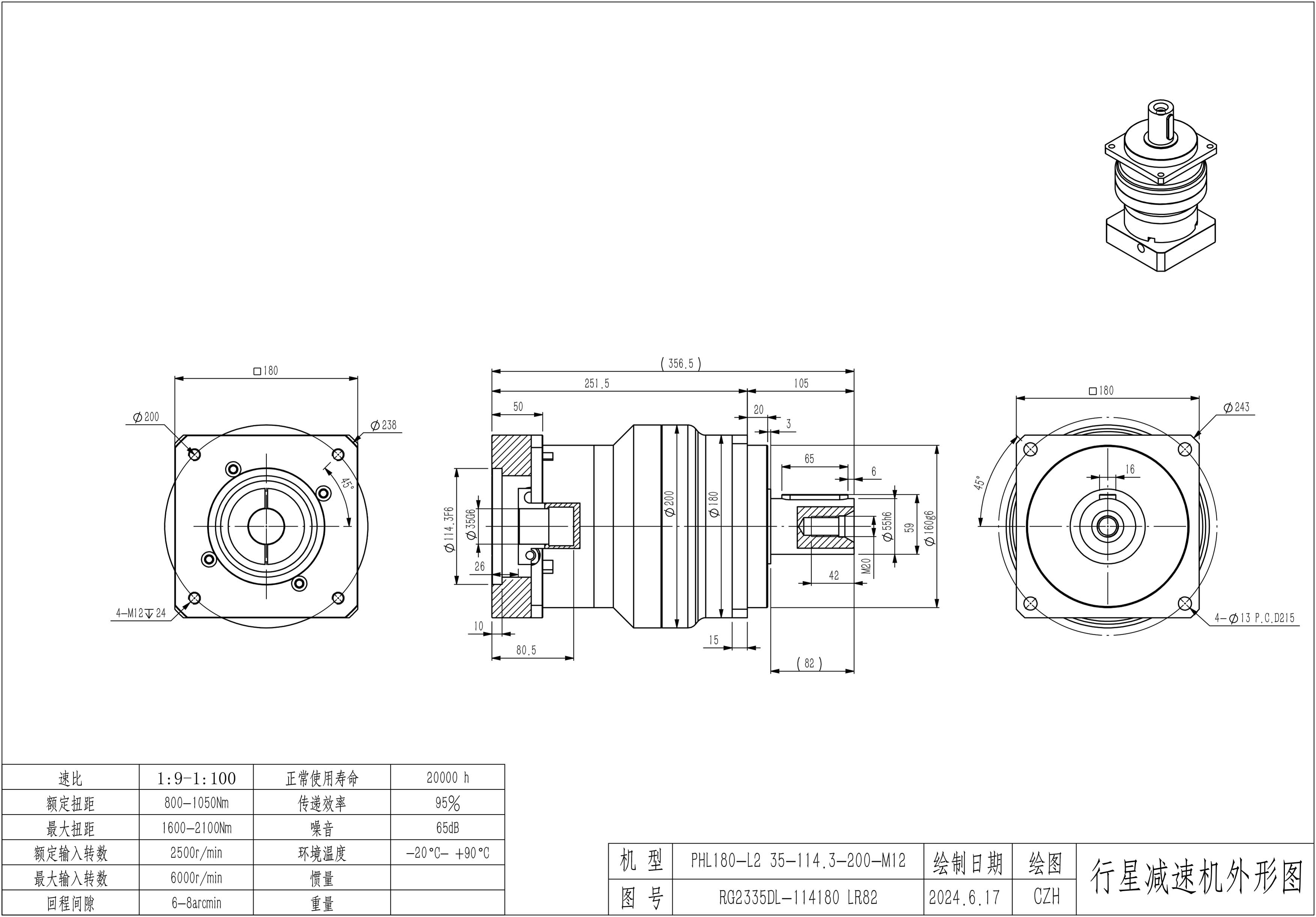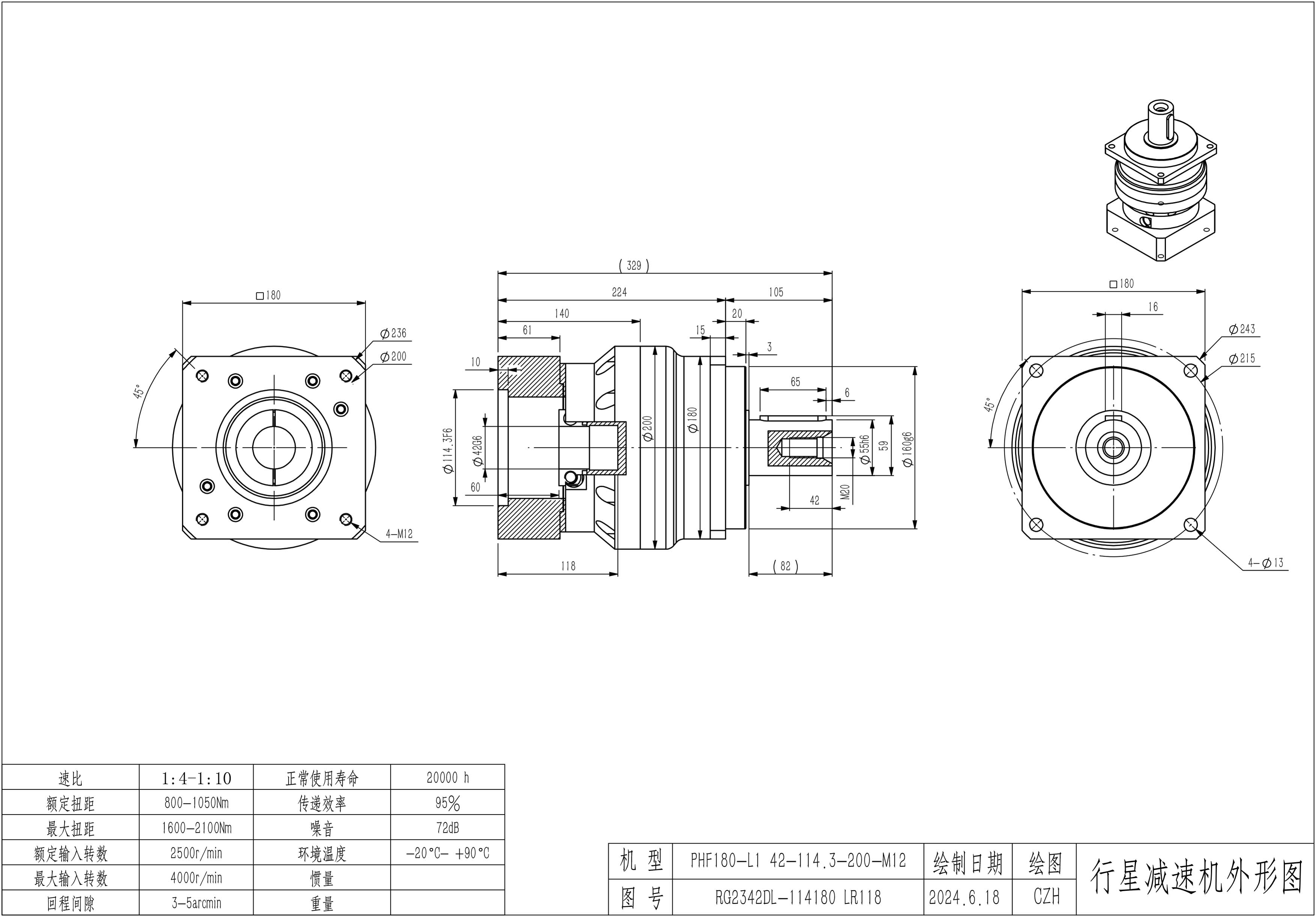 KB系列伺服行星减速机PHL180-L1 35-114.3-200-M12 PHL180T-L2 35-114.3-200-M12 PHL180-L1 38-180-215-M12-10B PHL180-L1 42-114.3-200-M12 PHL180T-L2 42-114.3-200-M12 LR117.5