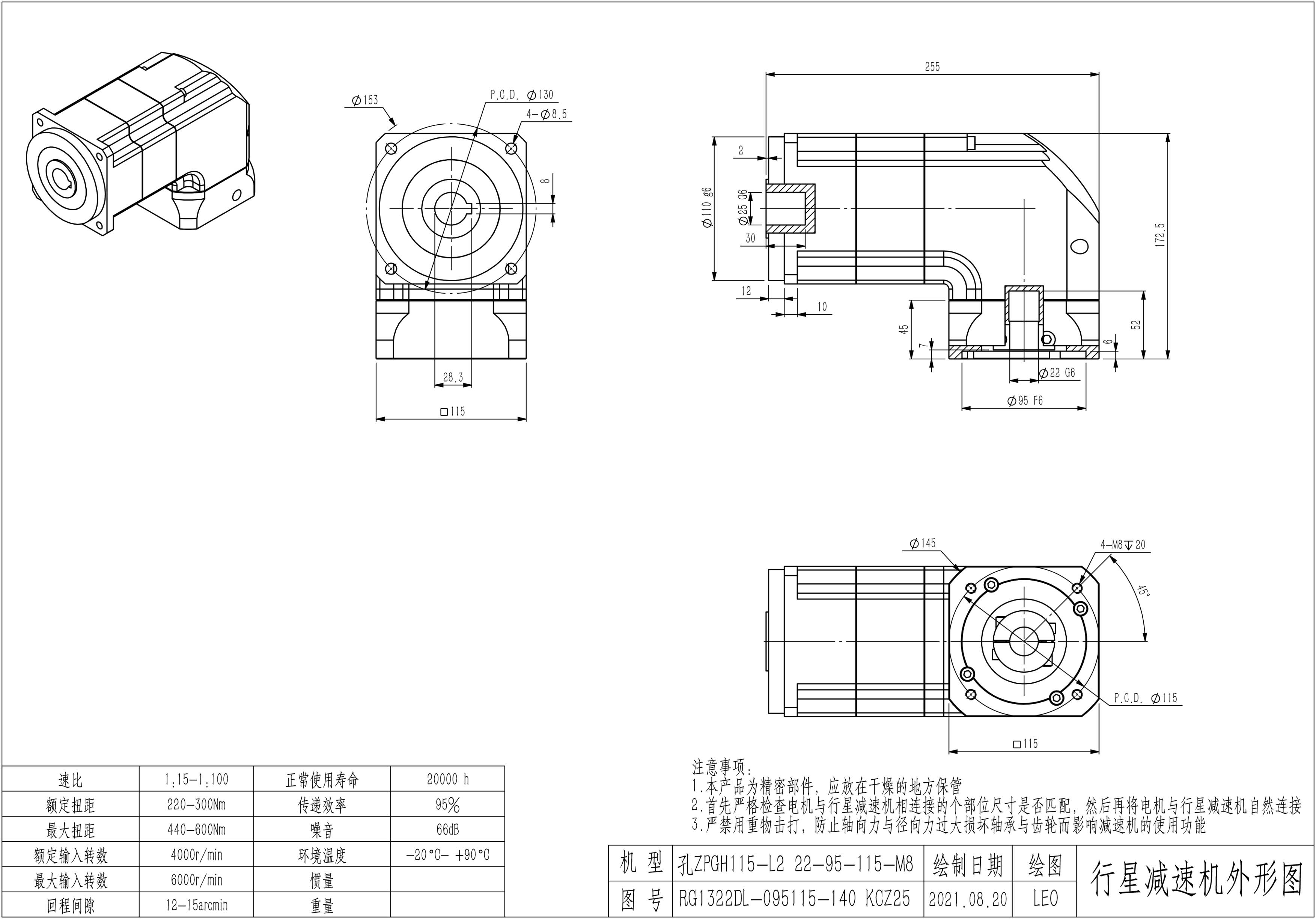 KB系列伺服行星减速机ZPGH115-L1 22-95-115-M8 ZPGH115-L2 22-95-115-M8 孔ZPGH115-L1 22-95-115-M8 KCZ25 孔ZPGH115-L2 22-95-115-M8 KCZ25