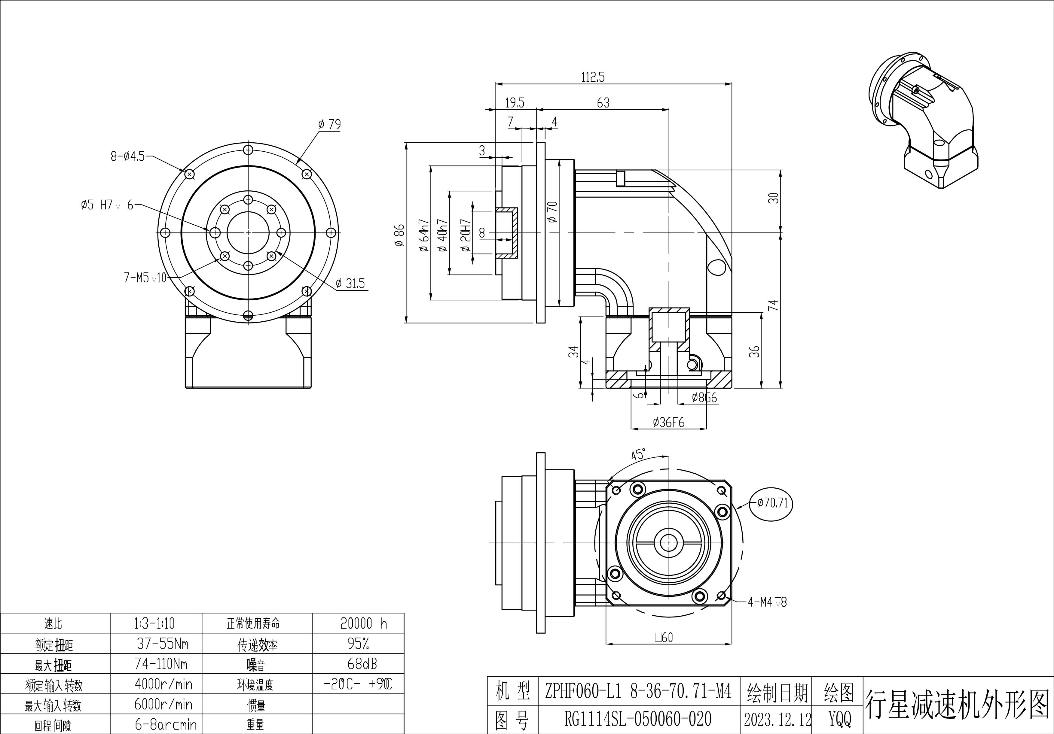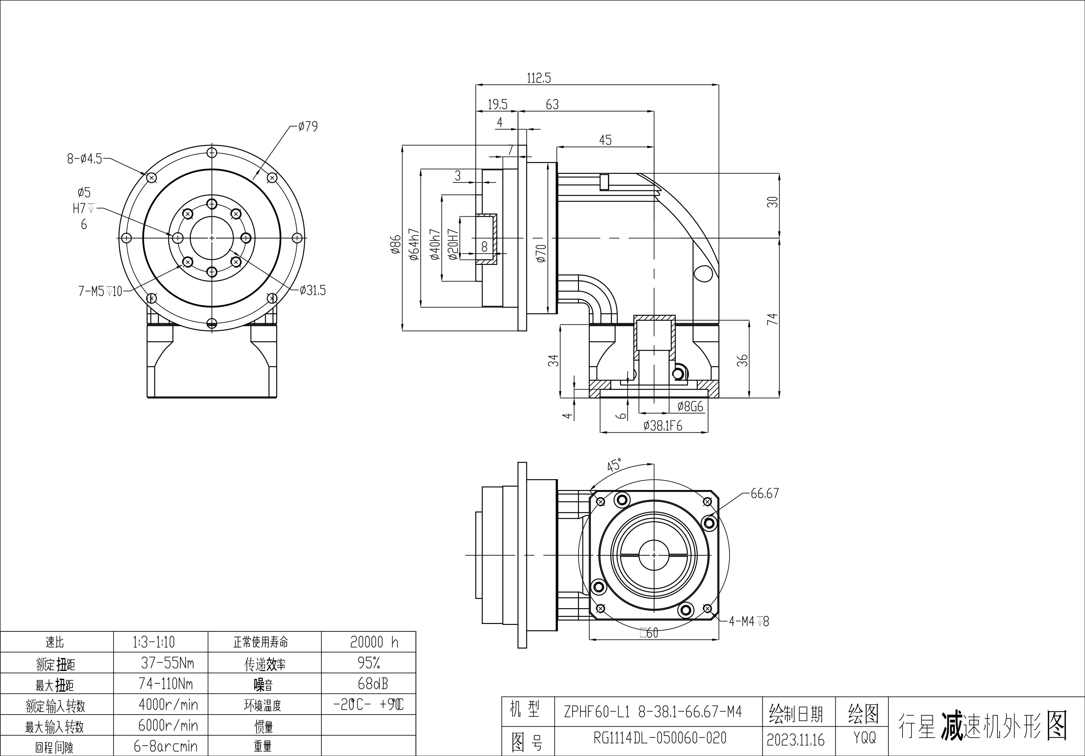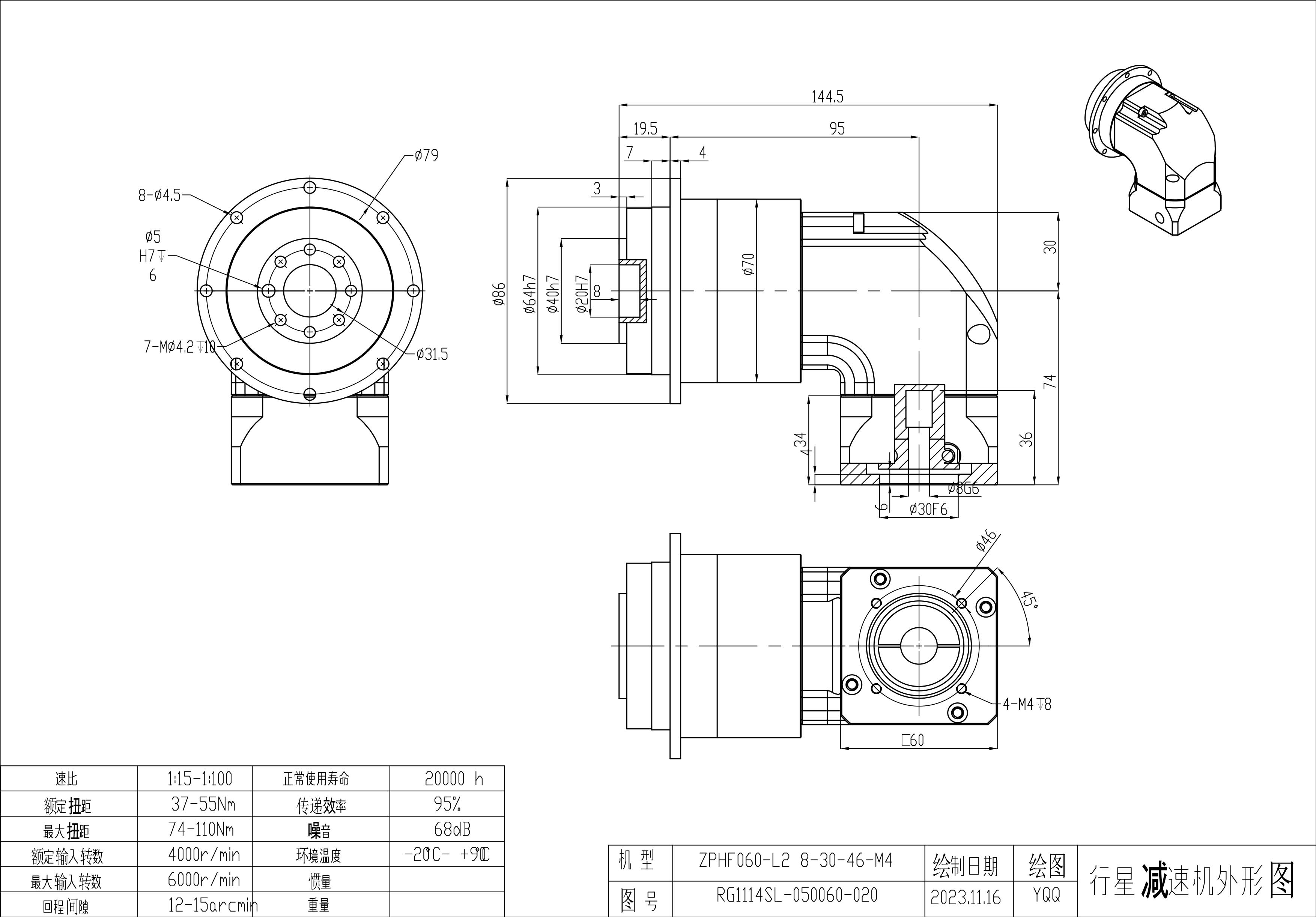 KB系列伺服行星减速机 ZPHF060-L1 8-30-46-M4 ZPHF060-L2 8-30-46-M4 ZPHF060-L1 8-36-70.71-M4 雷赛步进 ZPHF060-L1 8-38.1-66.67-M4 ZPHF060-L2 8-38.1-66.67-M4