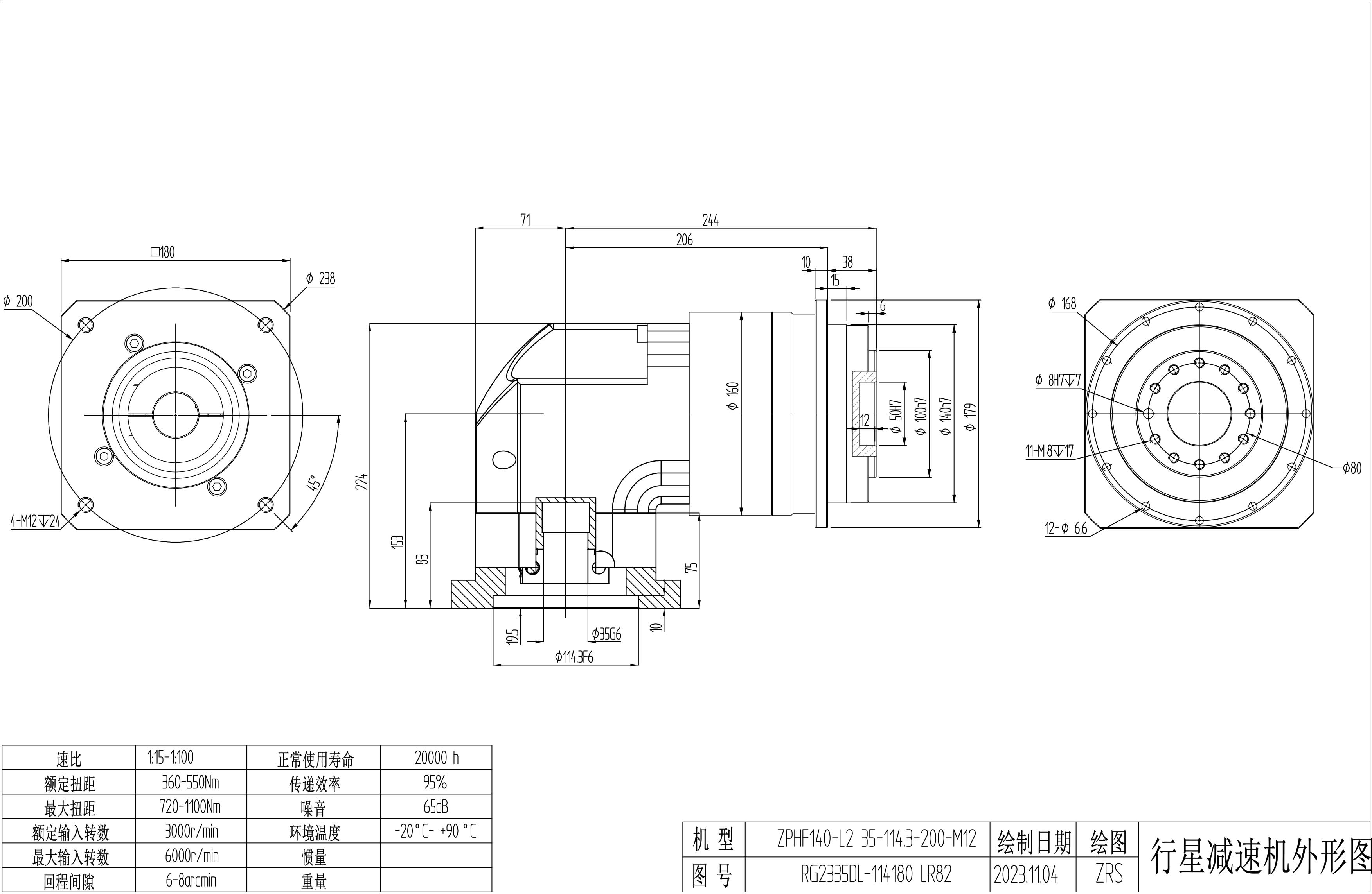 KB系列伺服行星减速机ZPHF140-L2 22-110-145-M8 ZPHF140-L1 35-114.3-200-M12 ZPHF140-L2 35-114.3-200-M12 ZPHF140-L1 38-180-215-M14