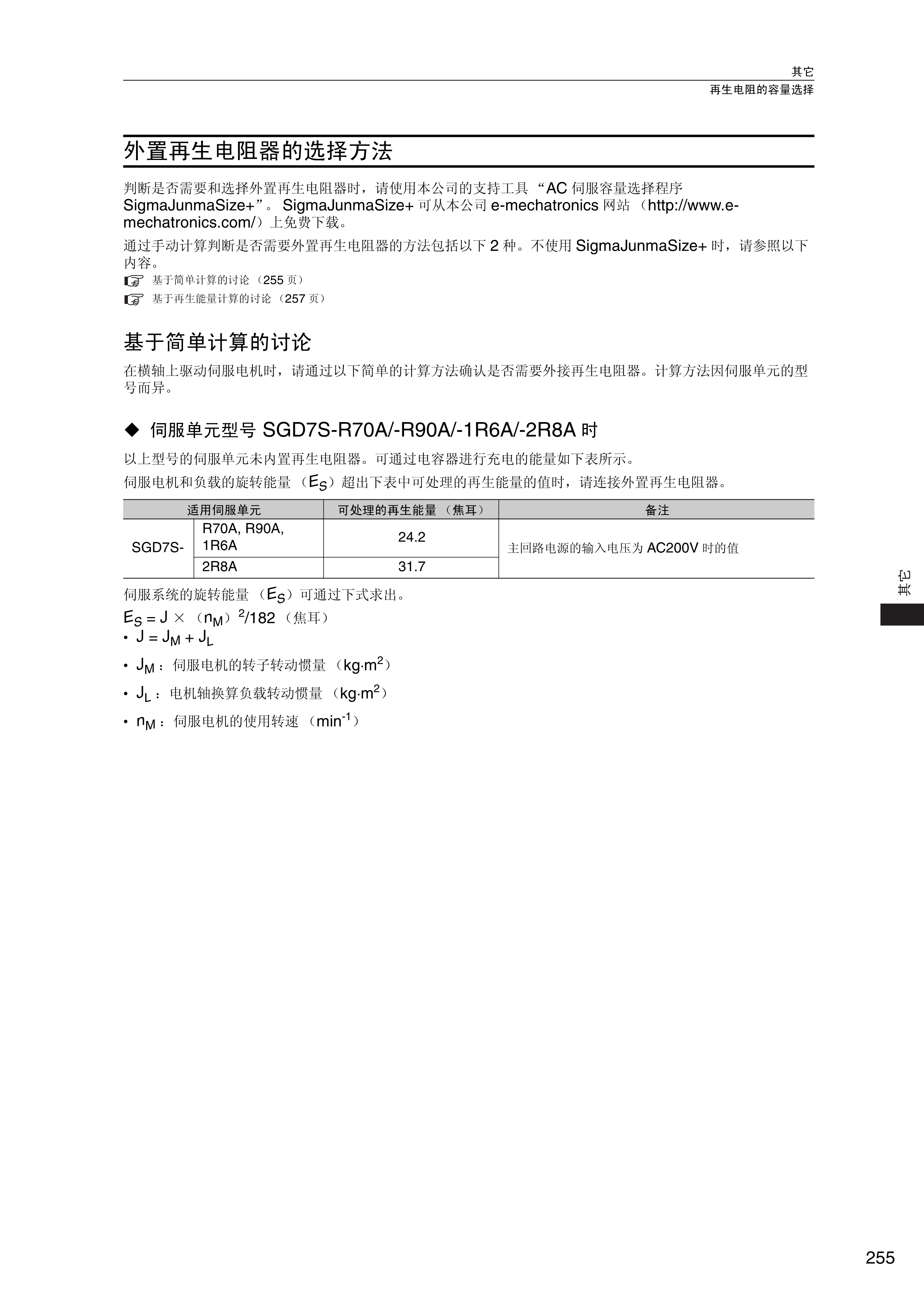 FX安川伺服电机 外置再生电阻器的选择方法,基于简单计算的讨论伺服单元型号